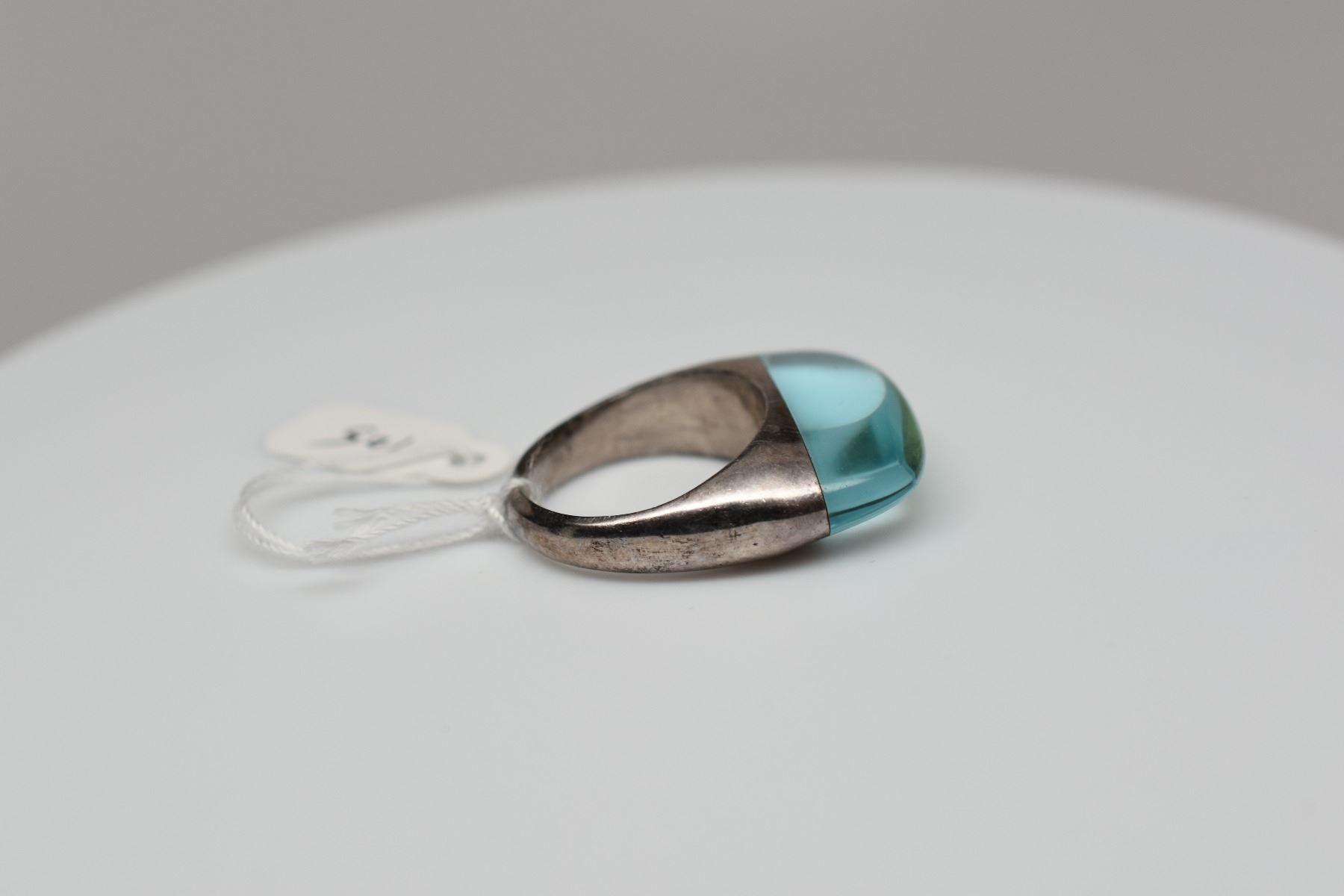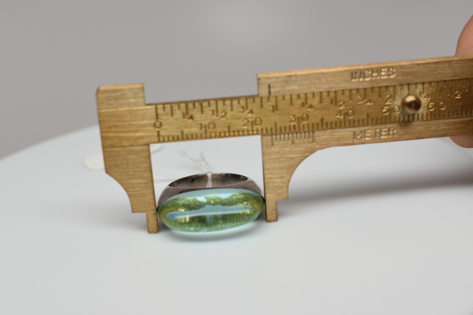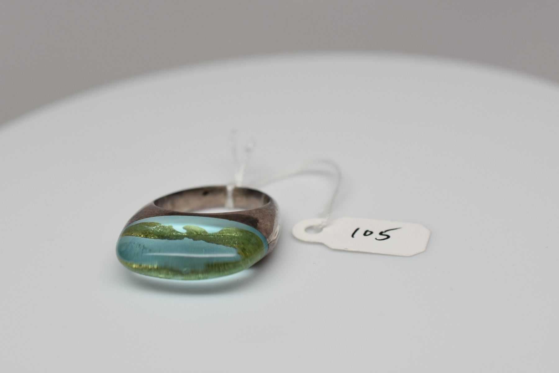 Domed Blue Green Crystal Ring 8.5 x 24mm Rectangle, Unmarked Silver, 12 g