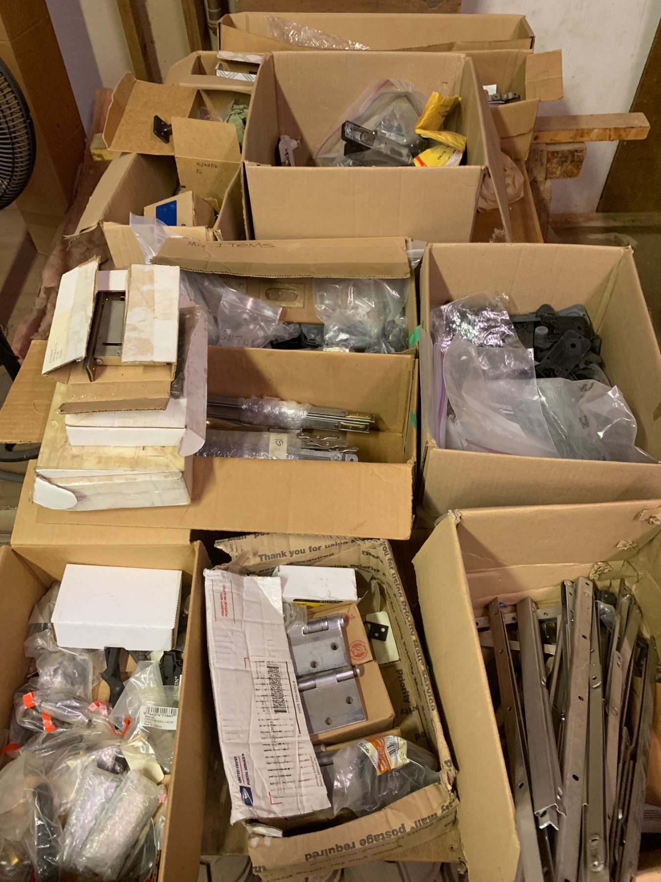Door and Window Hardware: Hinges, locksets,operators, flush bolts, guides. Most are new old stock