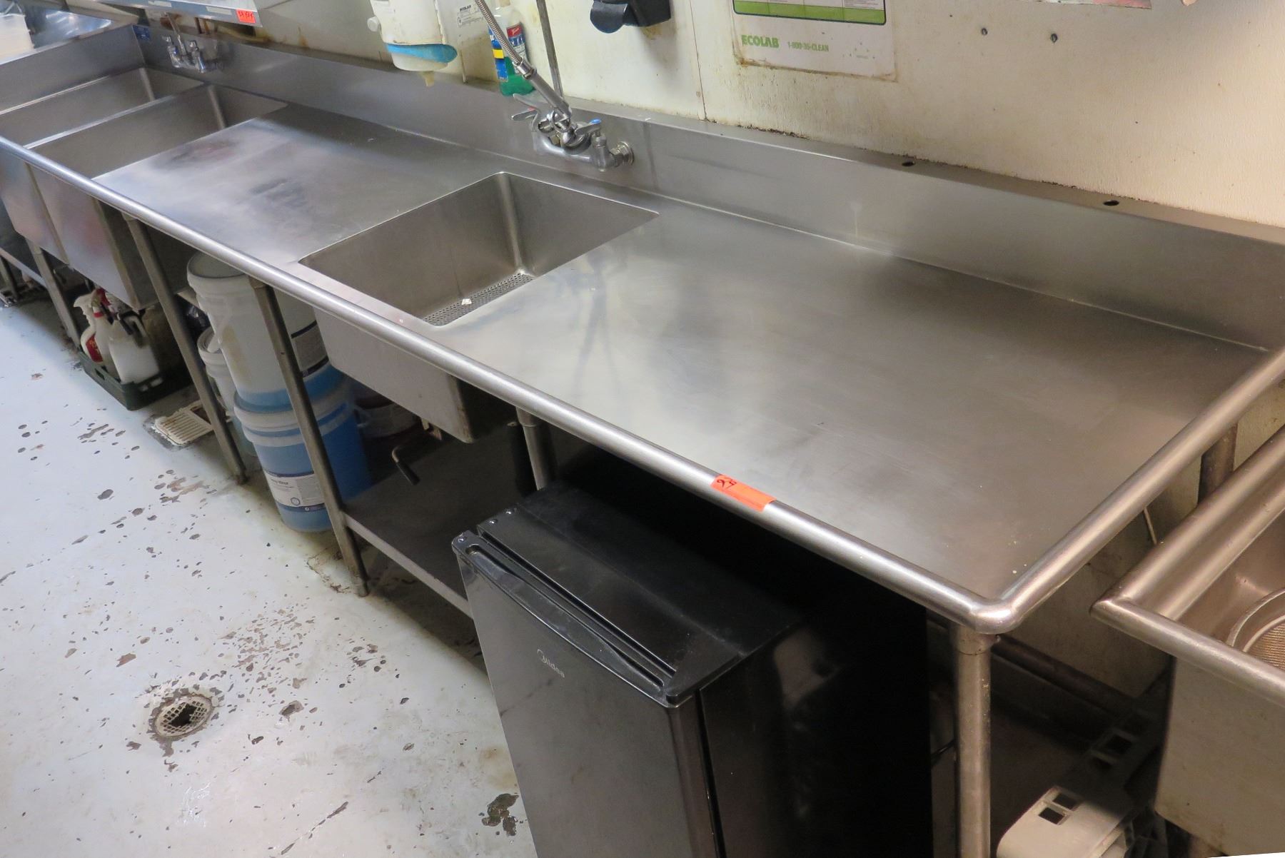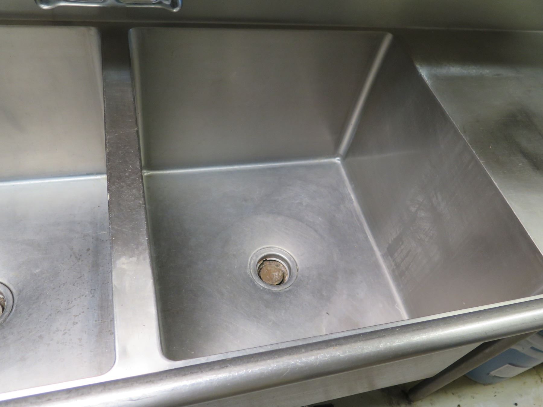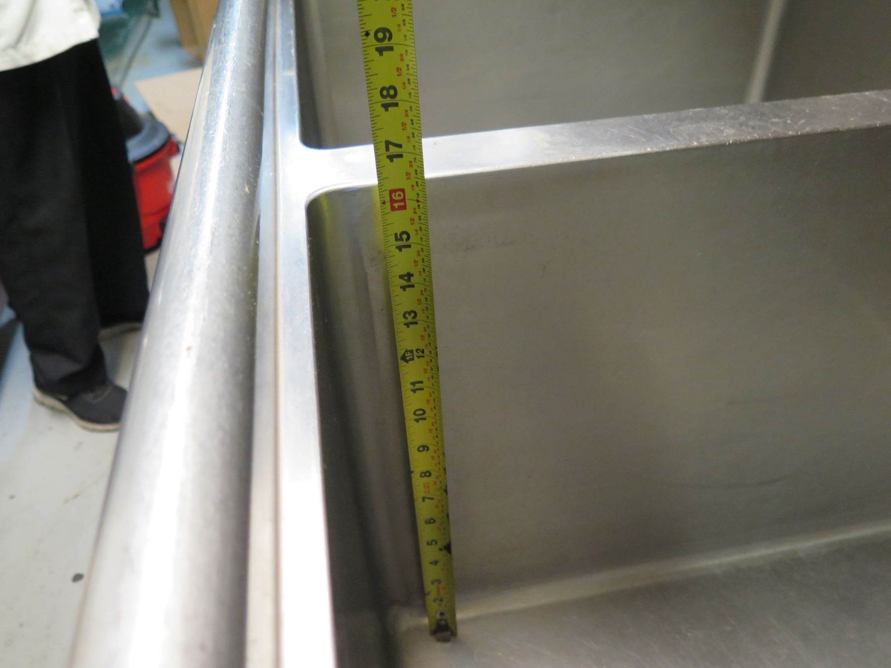 Lambertson Industries Metal Double-Basin Commercial Sink w/ Drainboard & Undershelf 160" x 30" (contents not included).