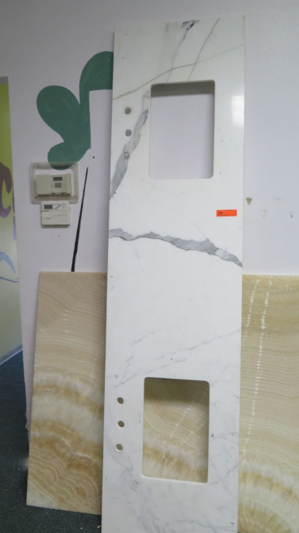 Double-Sink White Marble Countertop Slab, Approx. 89.5" x 23"
