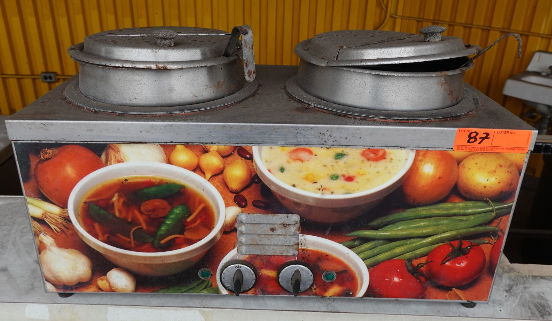 Double Well Soup Warmer w/ Tureens & Lids.