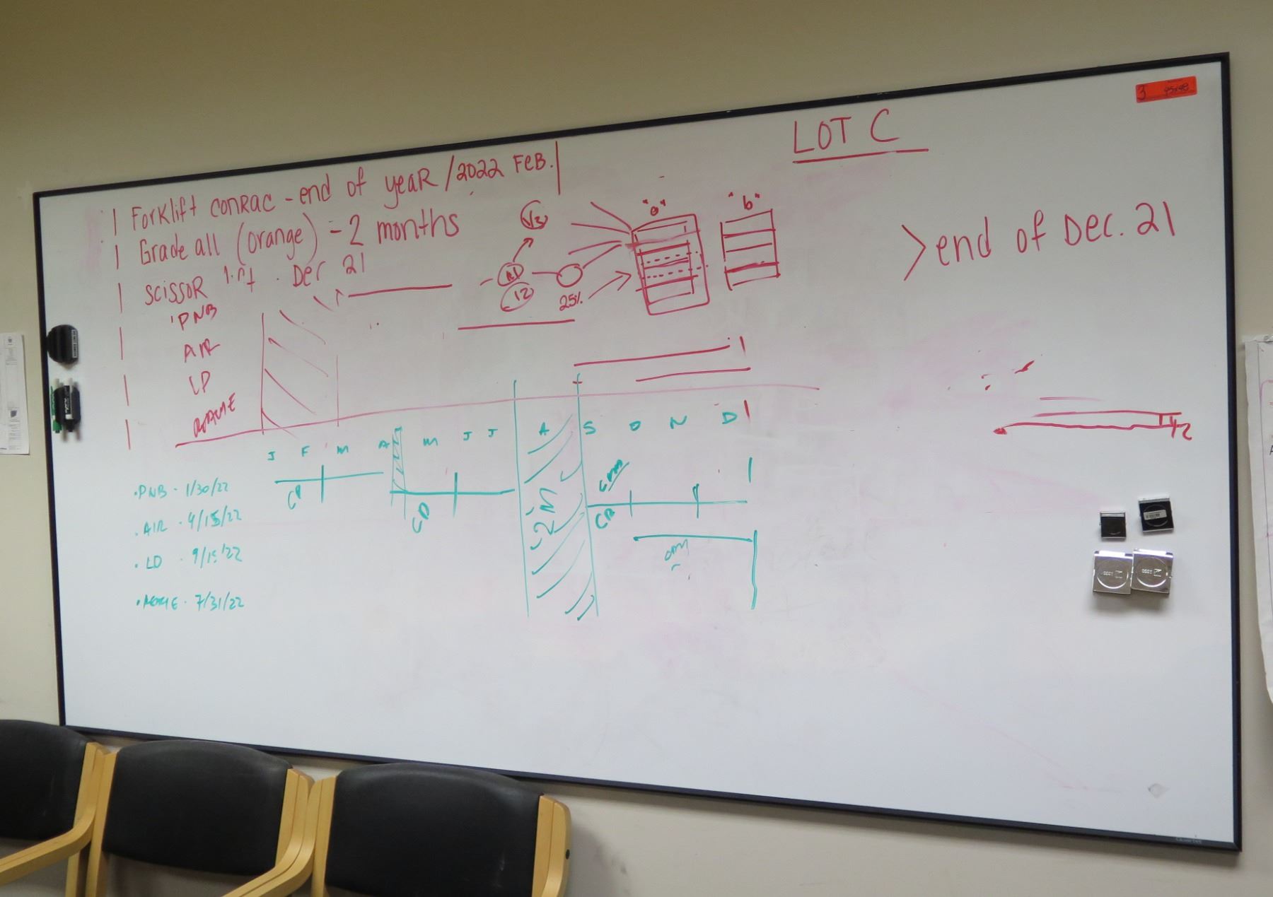 Dry Erase White Board Wall Mounted w/ Clips & Pens 95"x48"