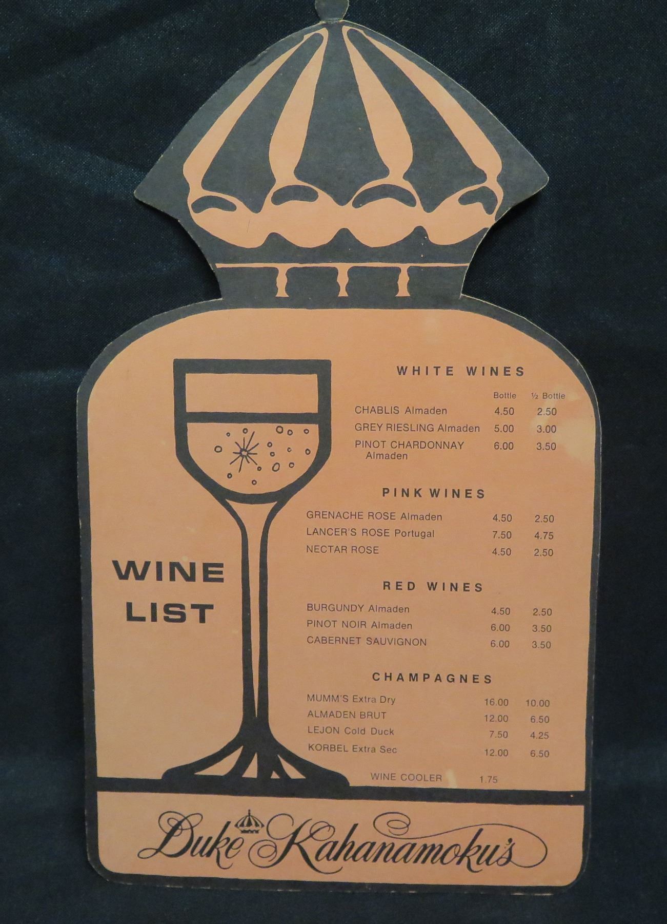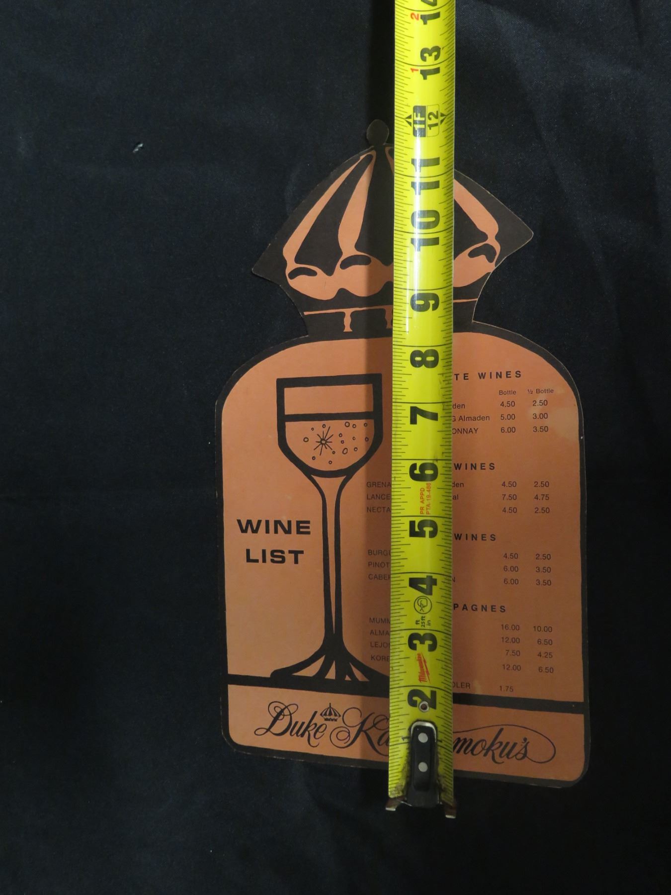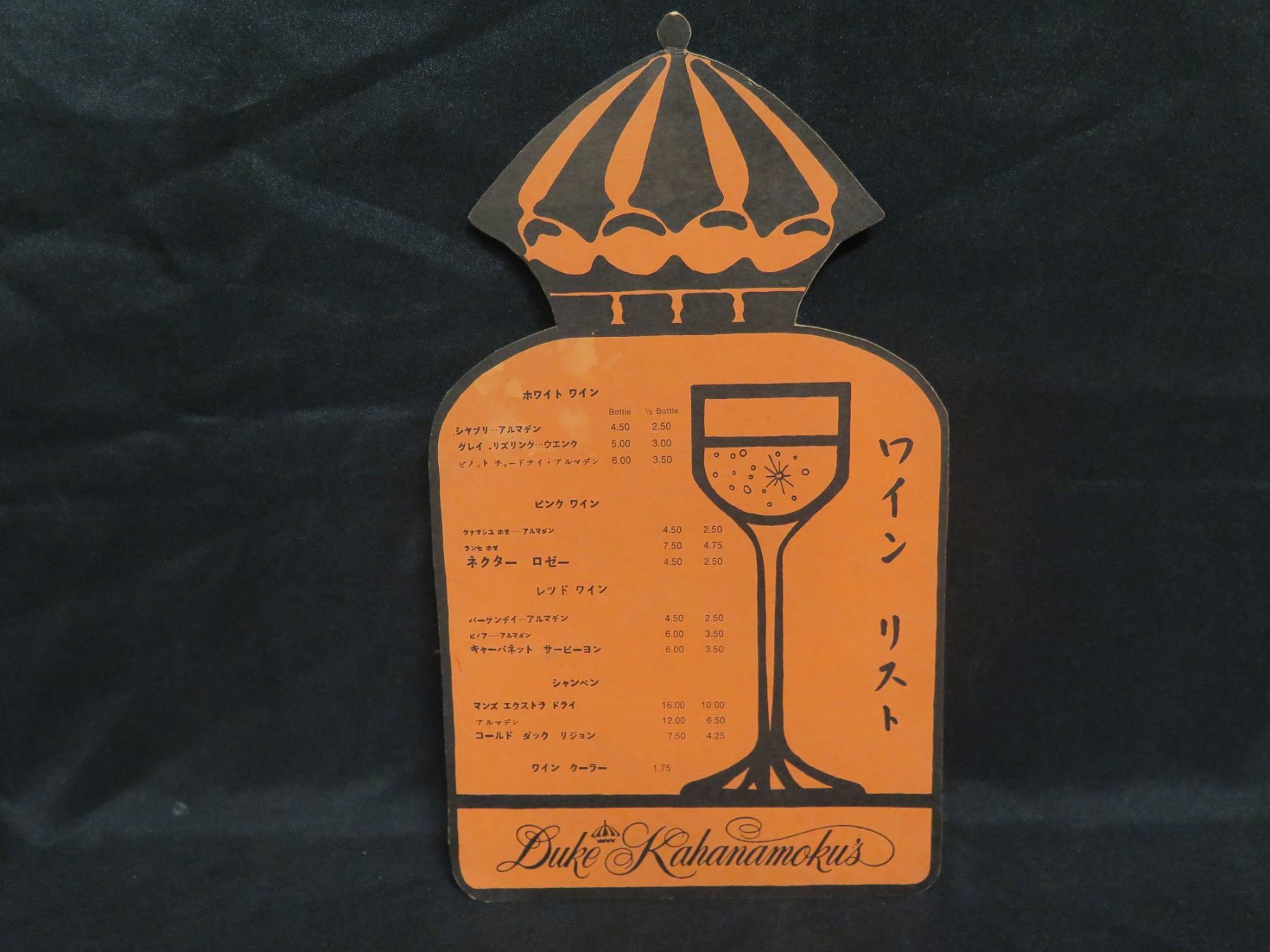 Duke Kahanamoku's Waikiki Wine List English & Japanese, Bottle Shaped 8"x11"