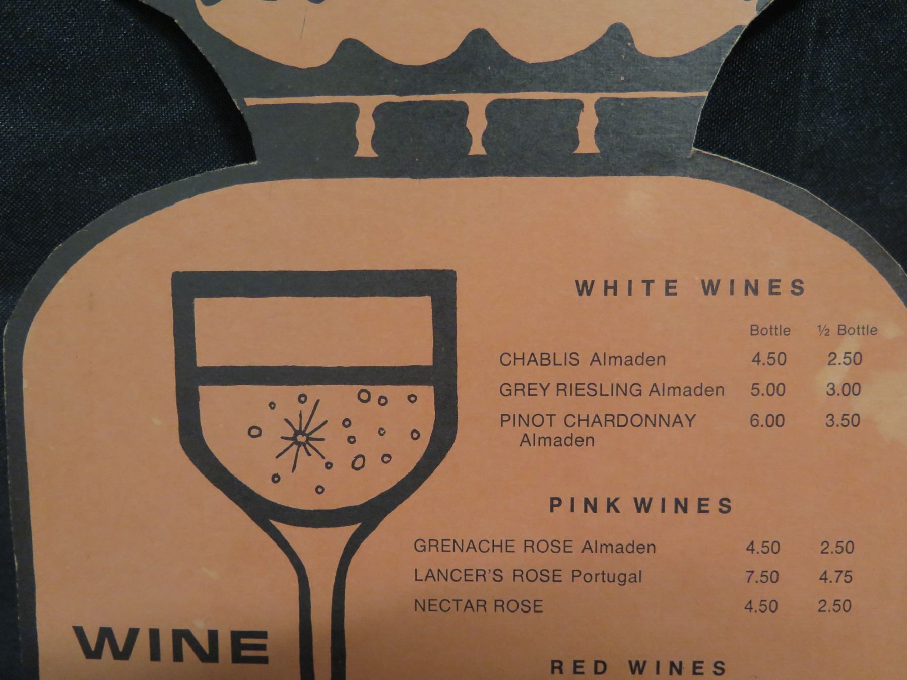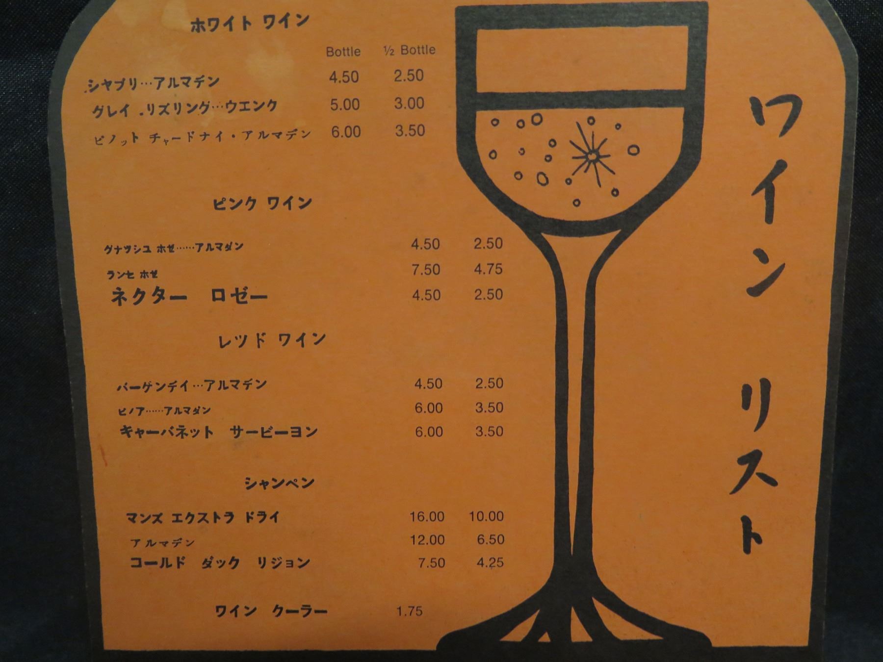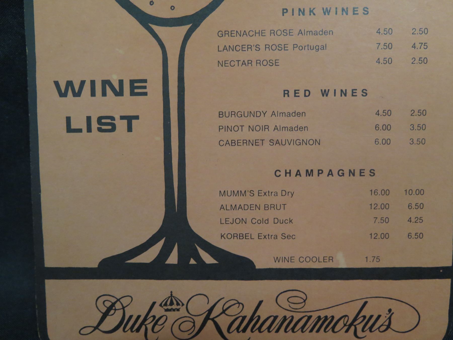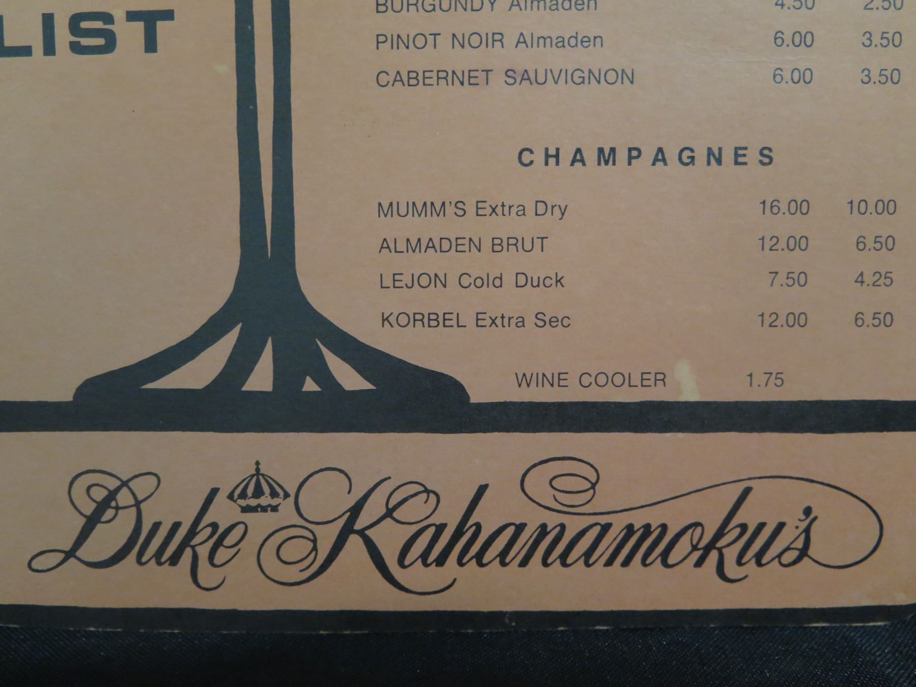 Duke Kahanamoku's Waikiki Wine List English & Japanese, Bottle Shaped 8"x11"