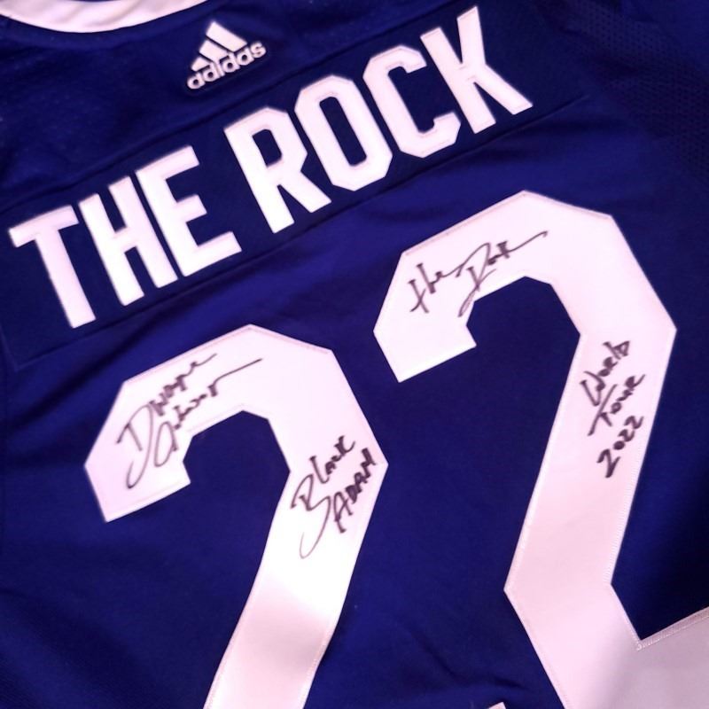 NHL Toronto Maple Leafs "The Rock" Hockey Jersey Signed by Dwayne "The Rock" Johnson while on Tour Promoting Black Adam 2022