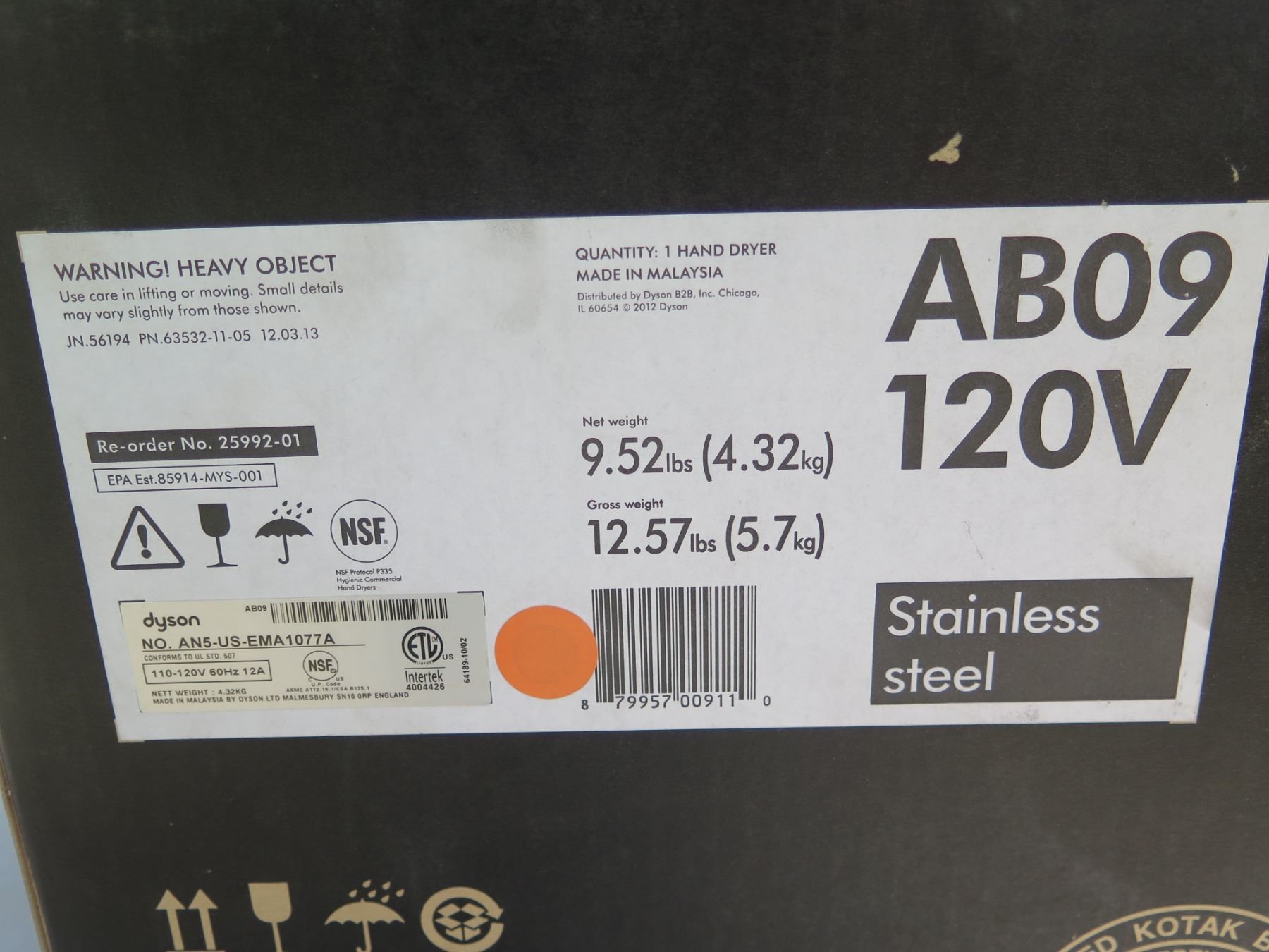 Dyson AB09 Air Blade Wash + Dry Bathroom Sink Hand Dryer (Retail New $1899)