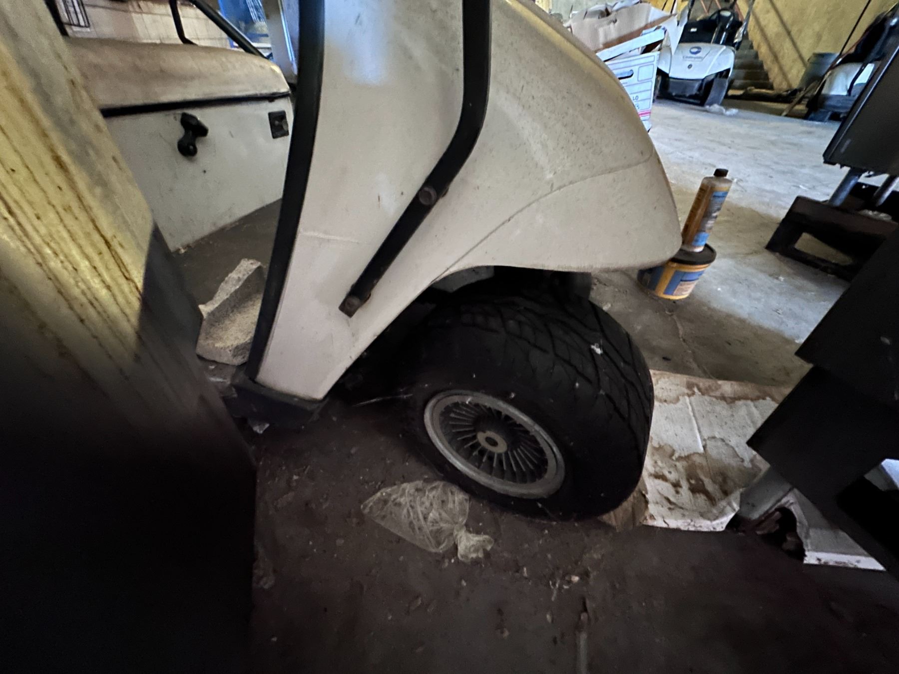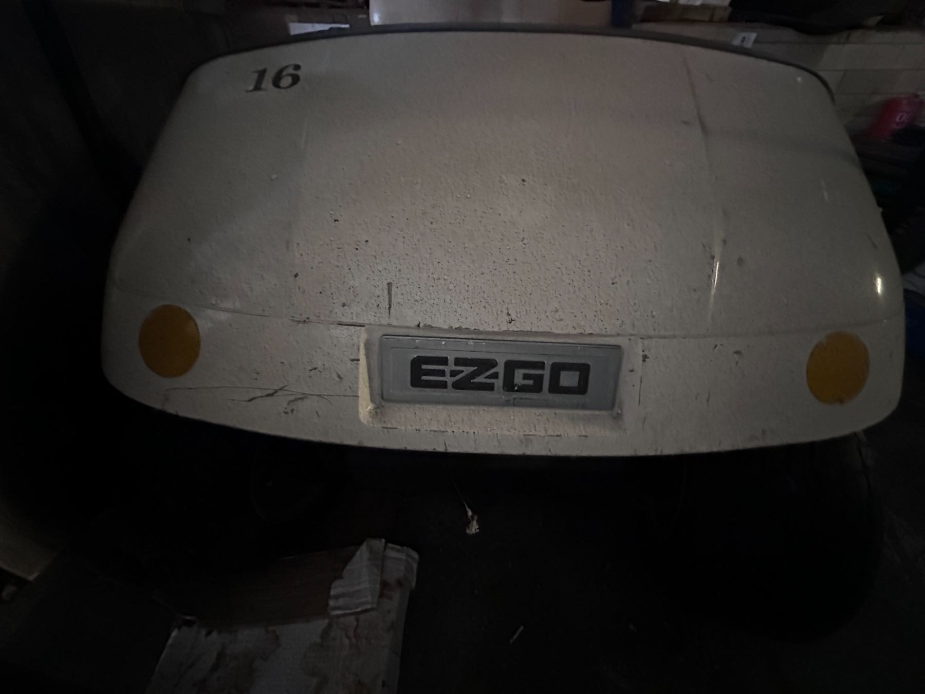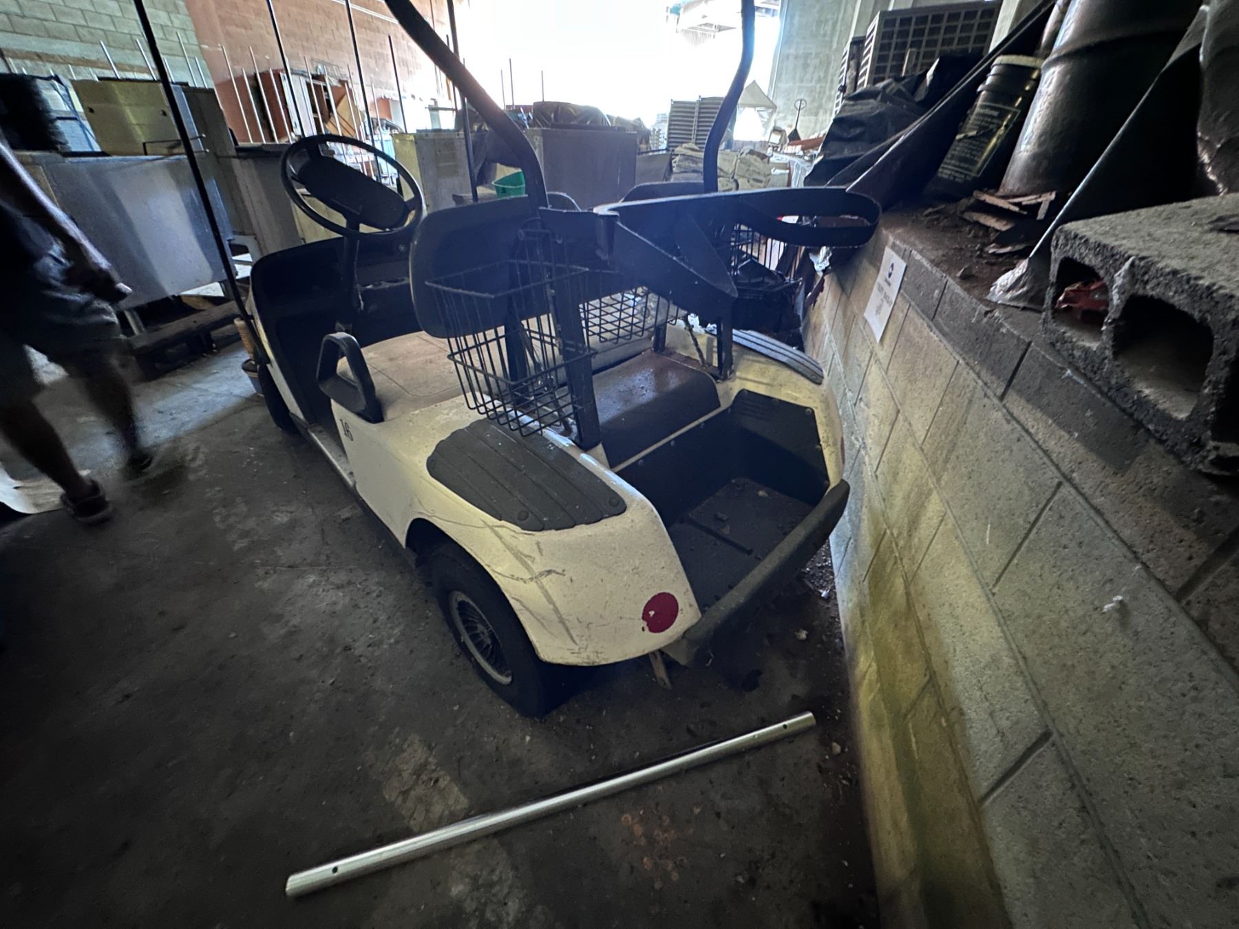 Pick-up by appointment. E-Z-GO White 2-Seater Golf Cart w/ Rear Seat/Storage (does not run, needs repair)
