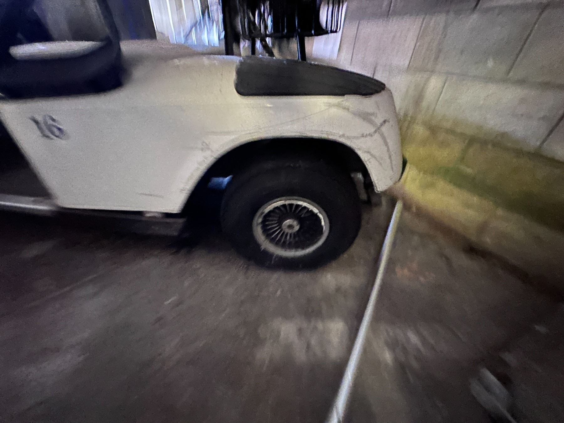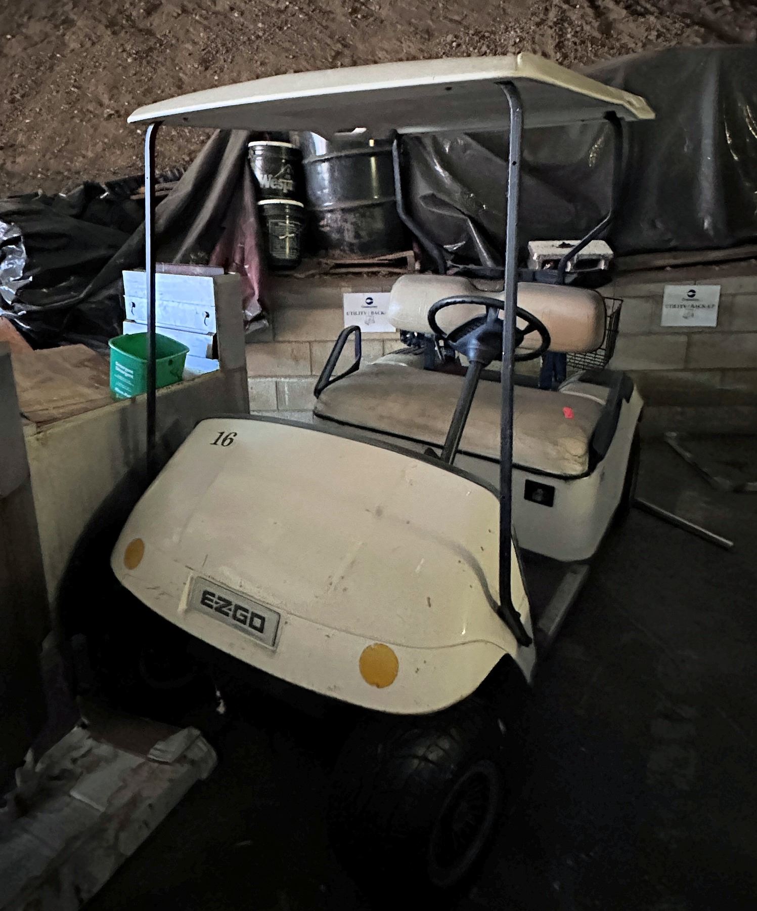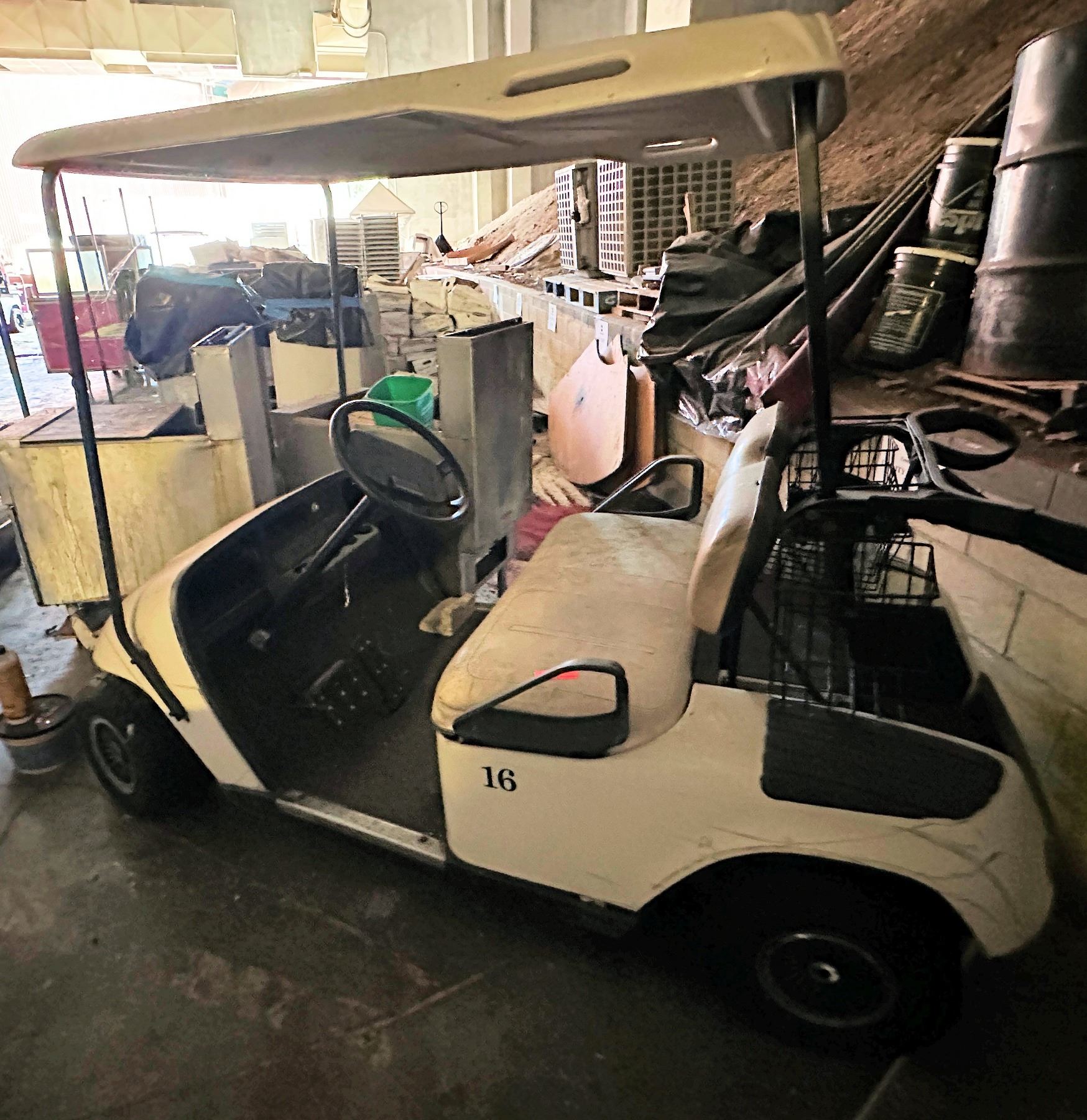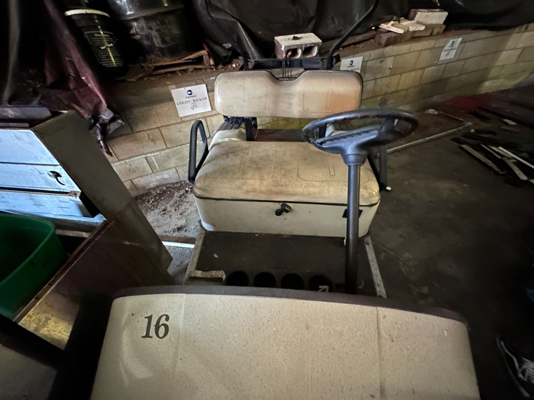 Pick-up by appointment. E-Z-GO White 2-Seater Golf Cart w/ Rear Seat/Storage (does not run, needs repair)