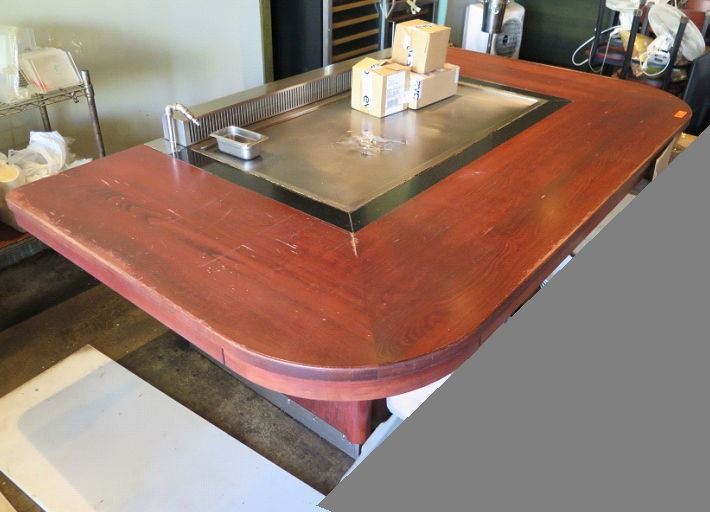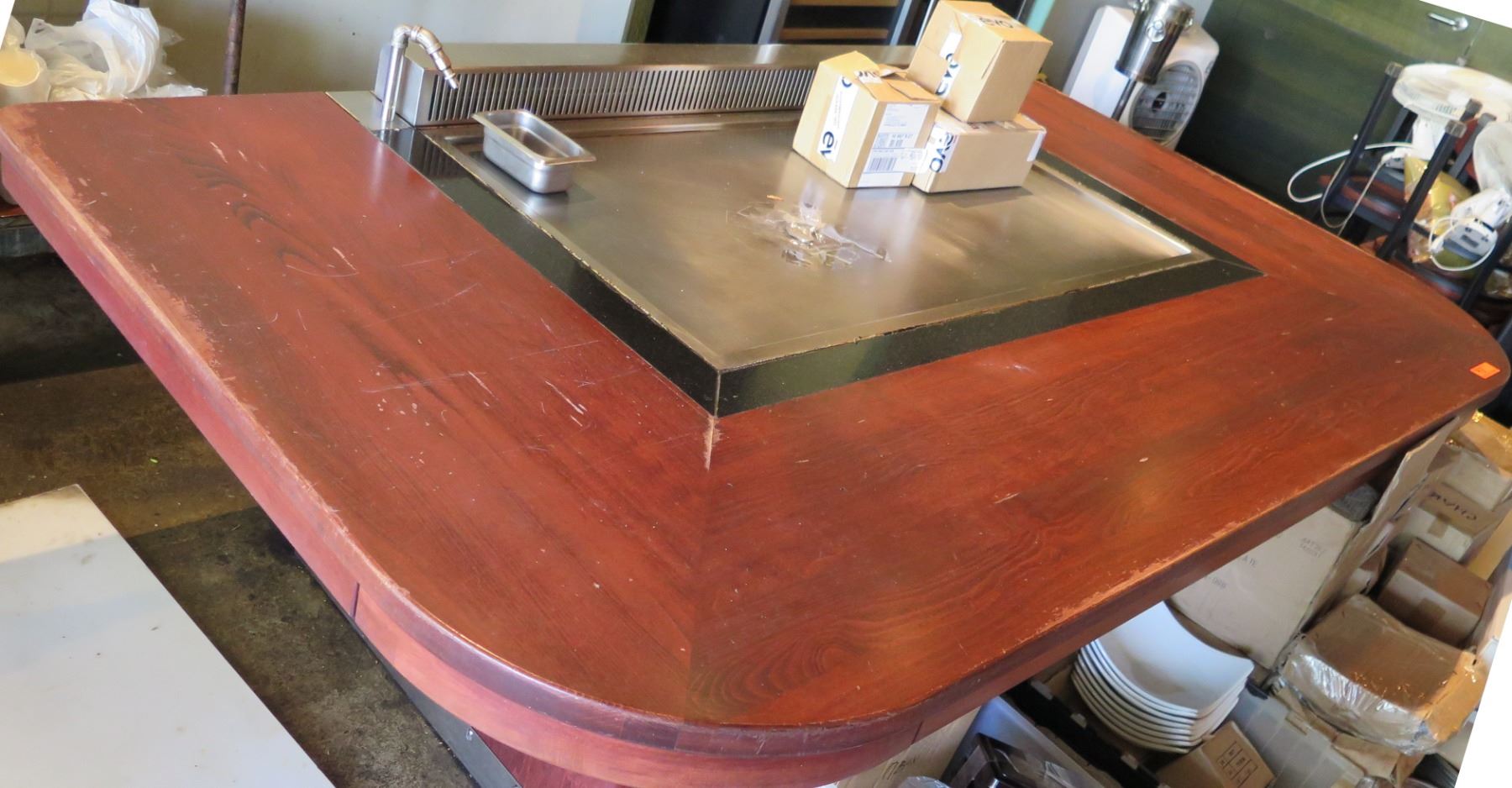 EVO Model 10-0148-EVT Teppanyaki Cooking Station with self-contained ventilation! Four independent heating elements. Two are not working. Includes the parts to repair the two non-working heating elements. The owner of the restaurant was not able to find a technician to install these parts prior to the closure of the restaurant.