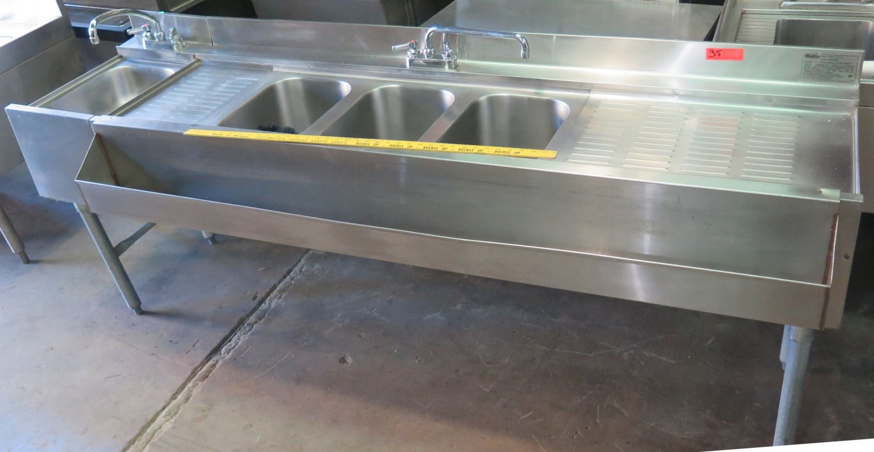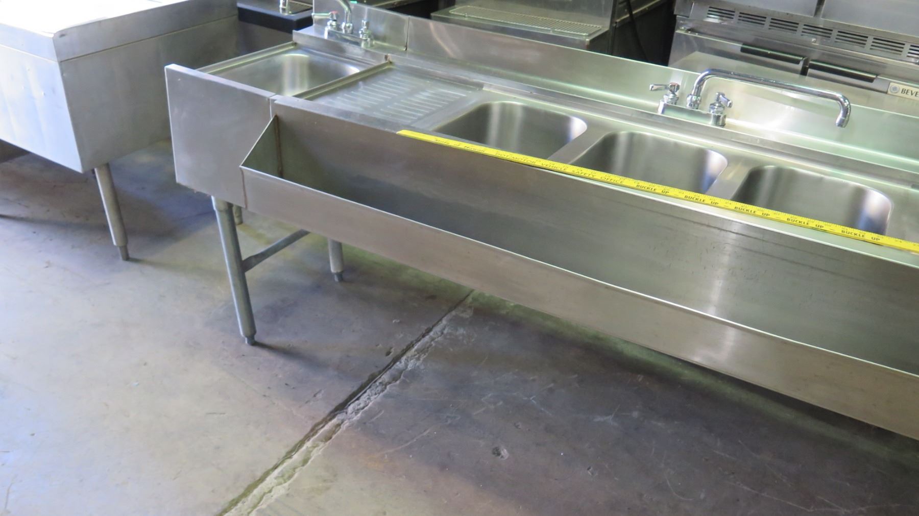 Eagle Group 4-Basin Dish Washing Sink, Model YBAR-0108-00, Approx. 7'W x 27.5"D x 33"H
