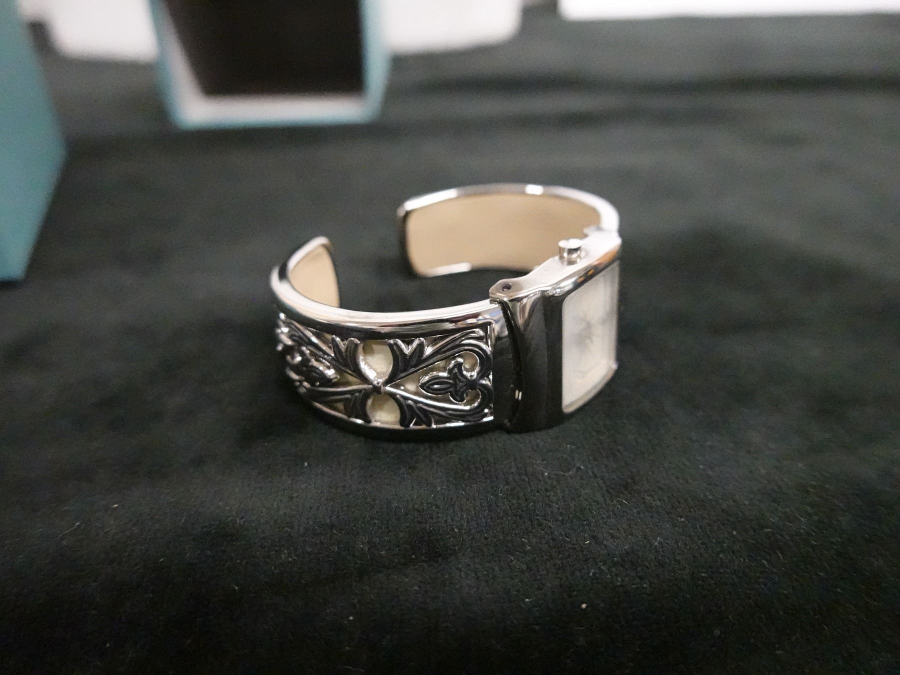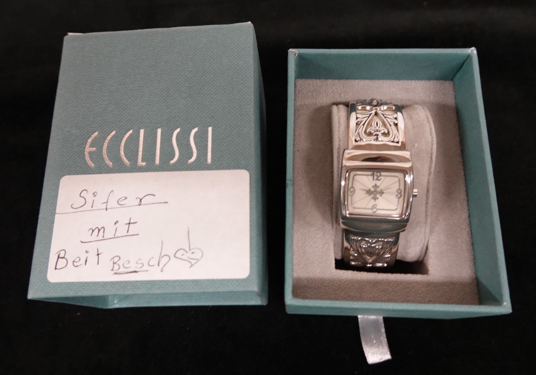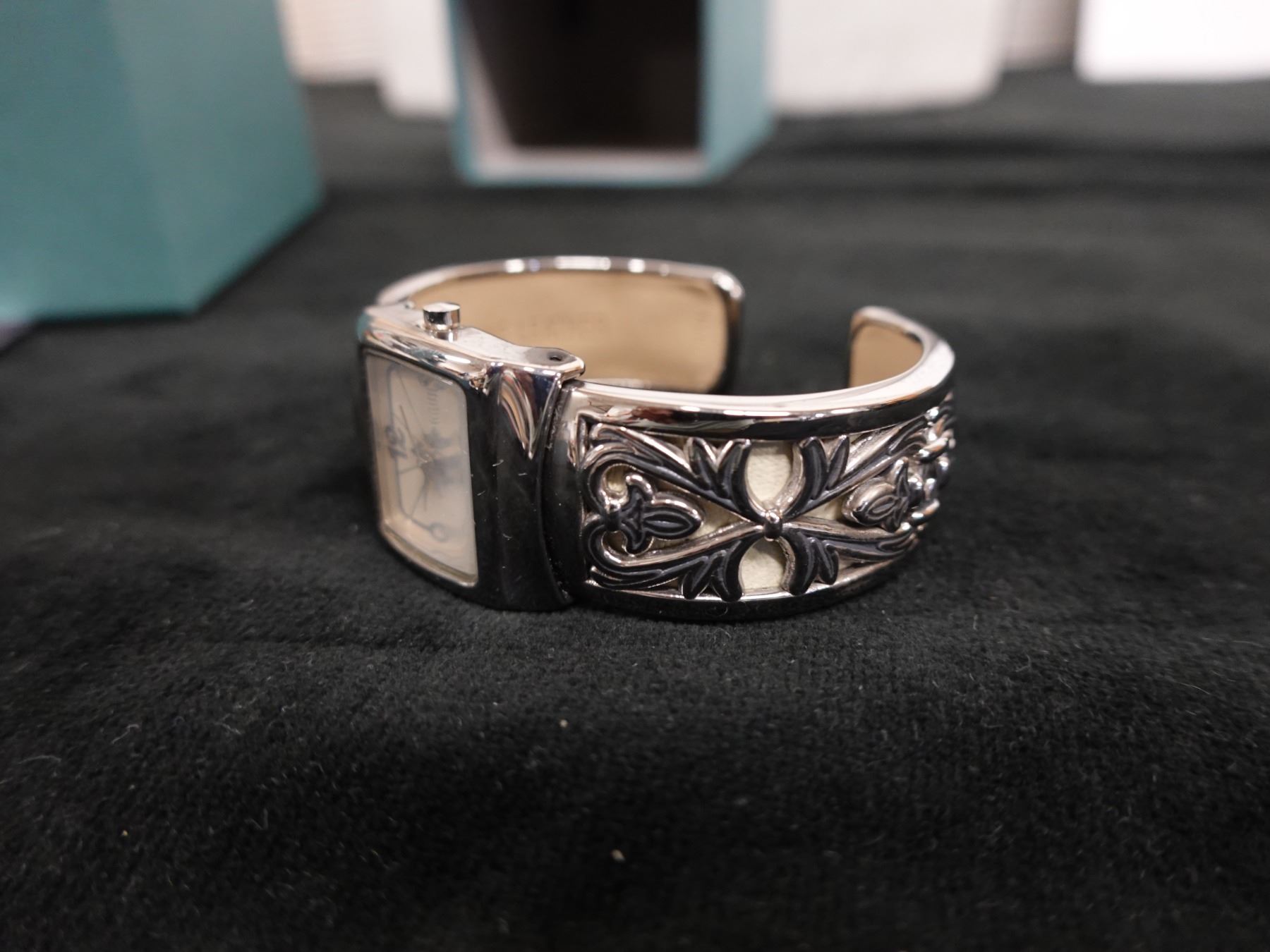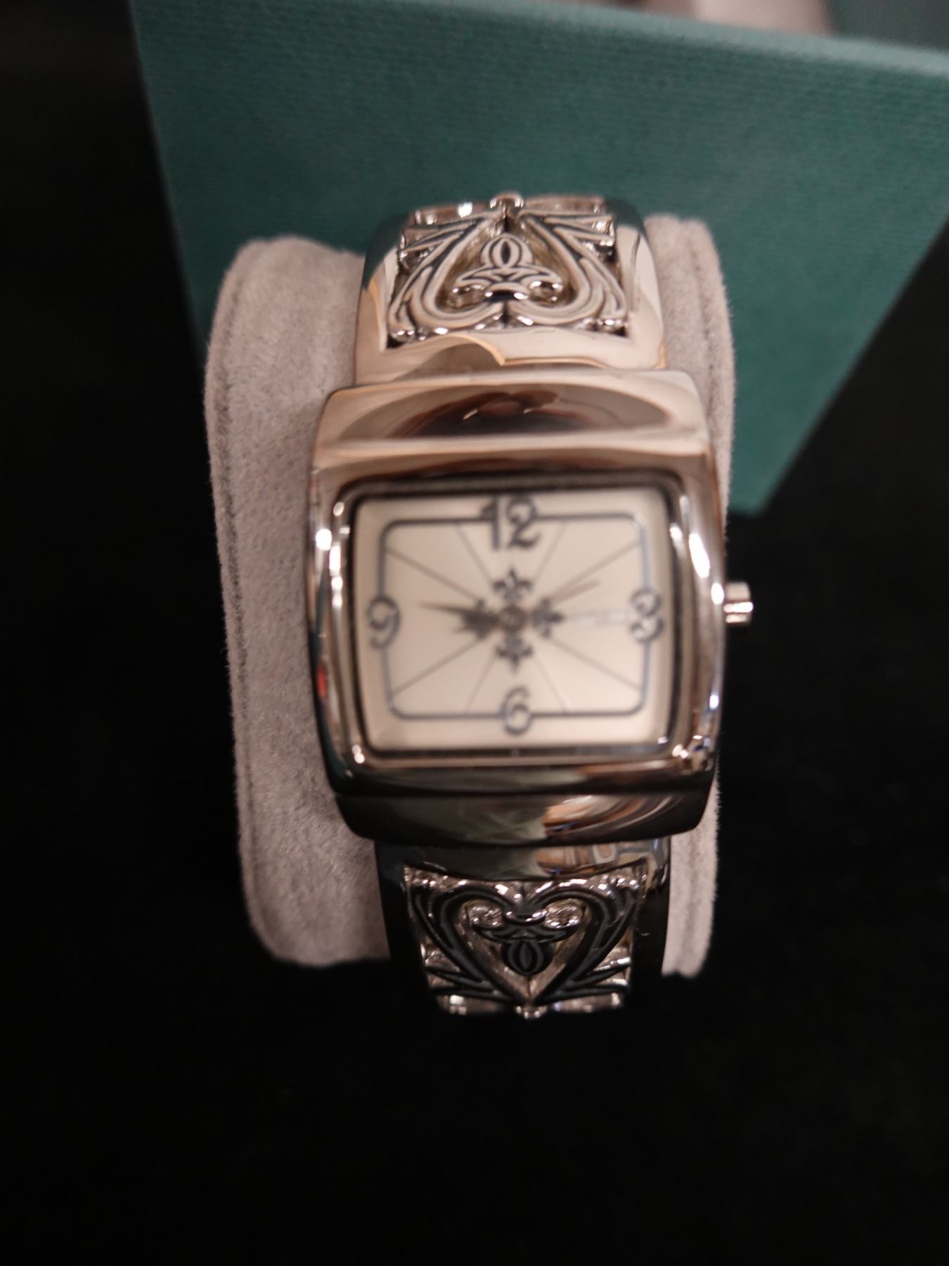 Ecclissi Sterling Silver Hinged Cuff Watch w/ Fleur-de-Lis Design
