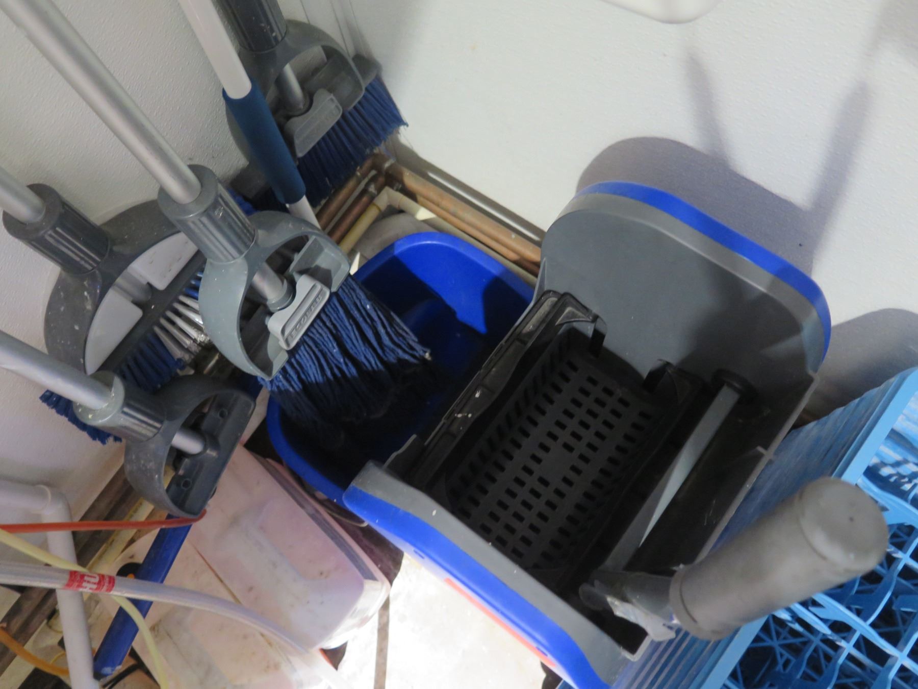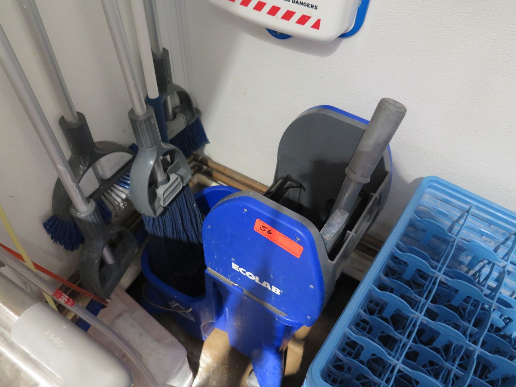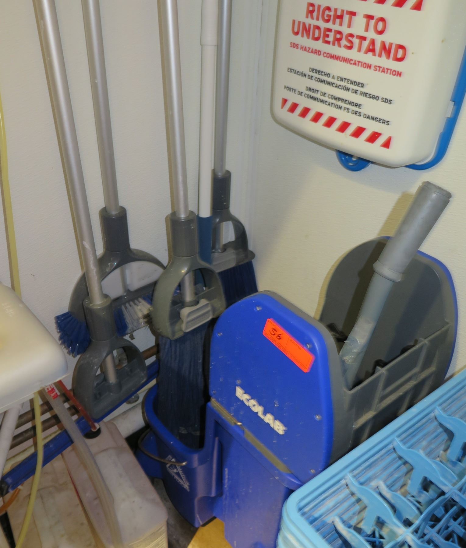 EcoLab Press Wringer Mop Bucket Set w/ Surface Cleaner & Misc Mops, Brooms, etc