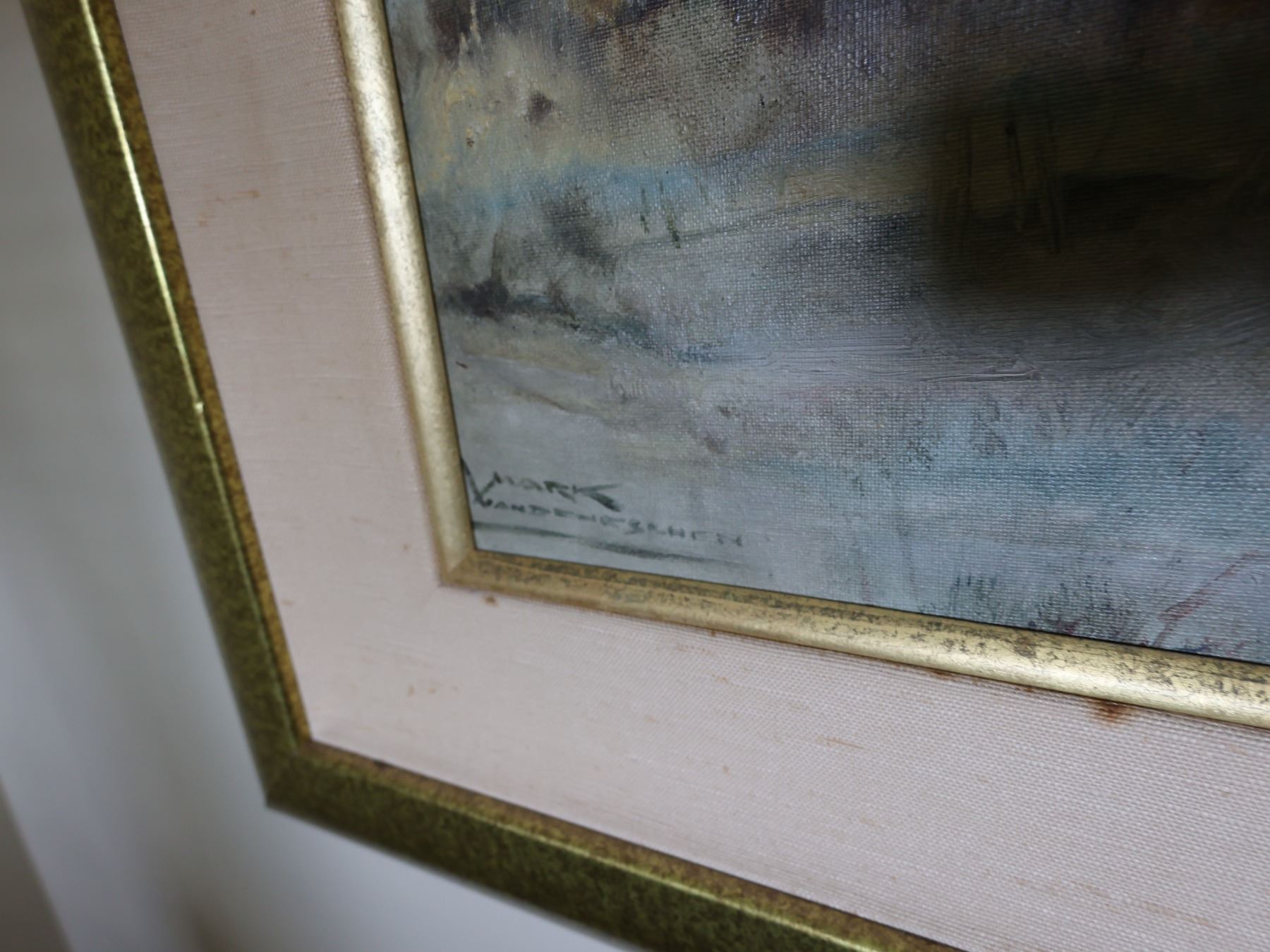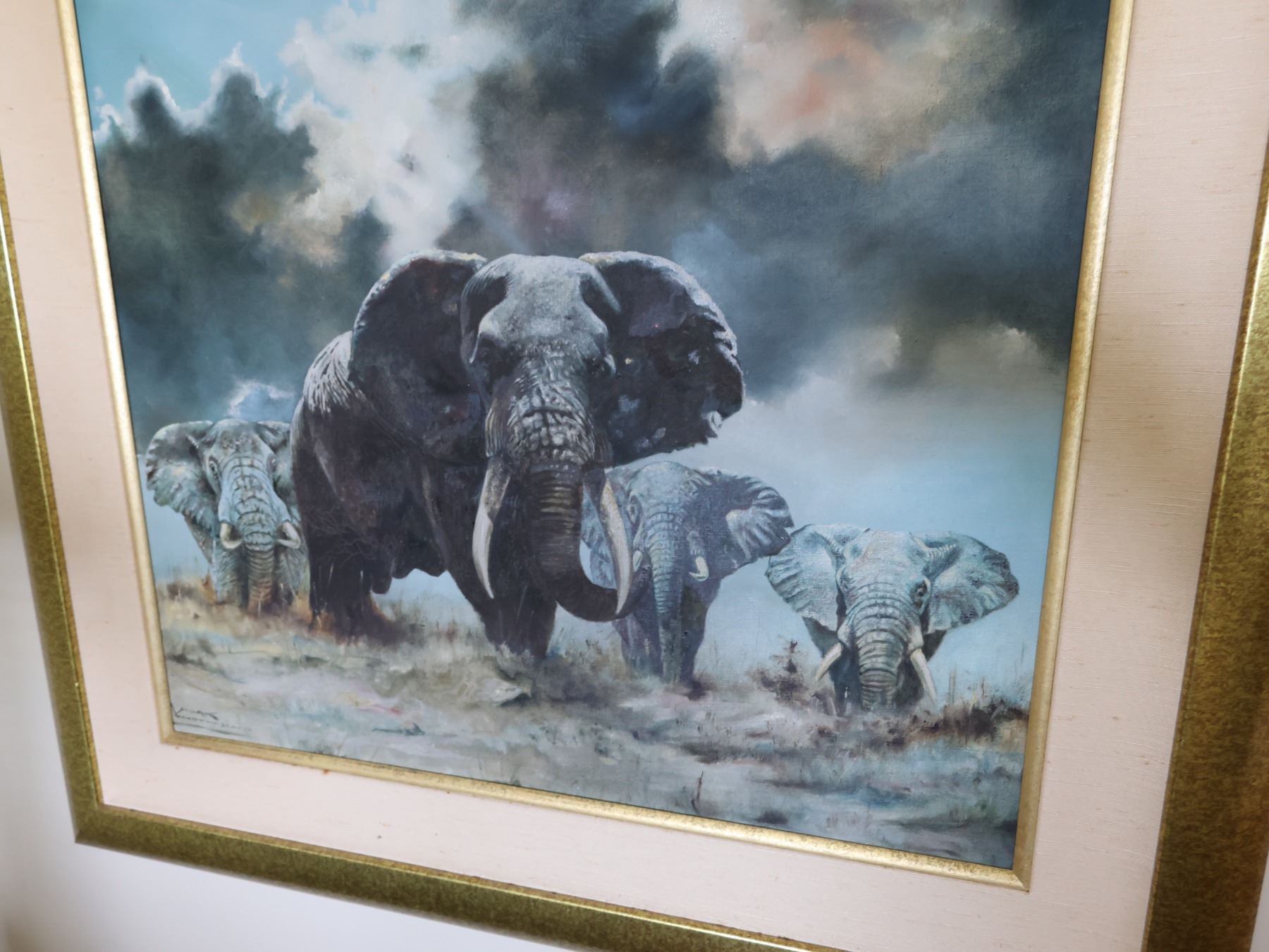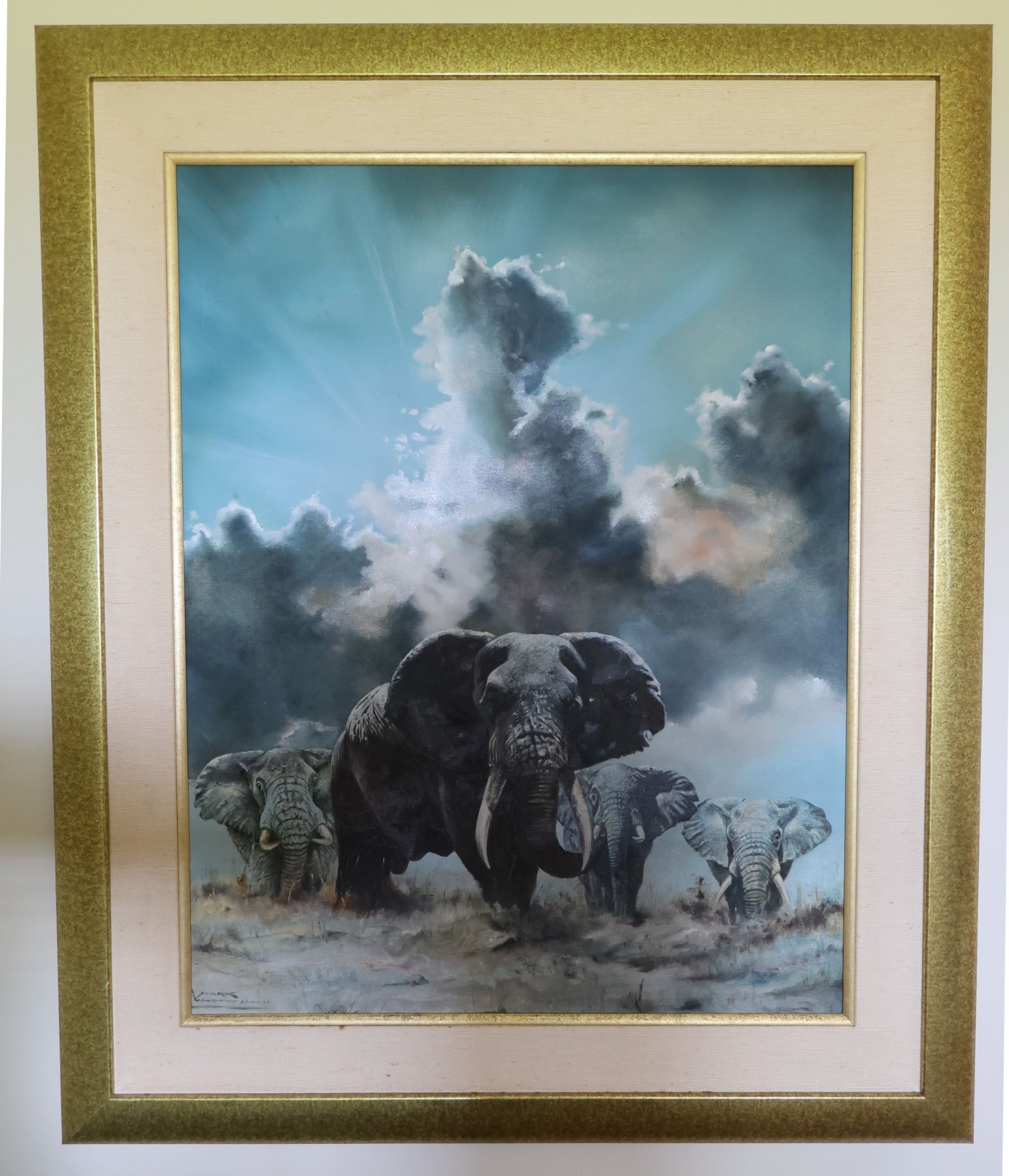Elephants Dutch Oil Painting on Canvas by Mark Van Den Eschen, Framed 28" x 36"
