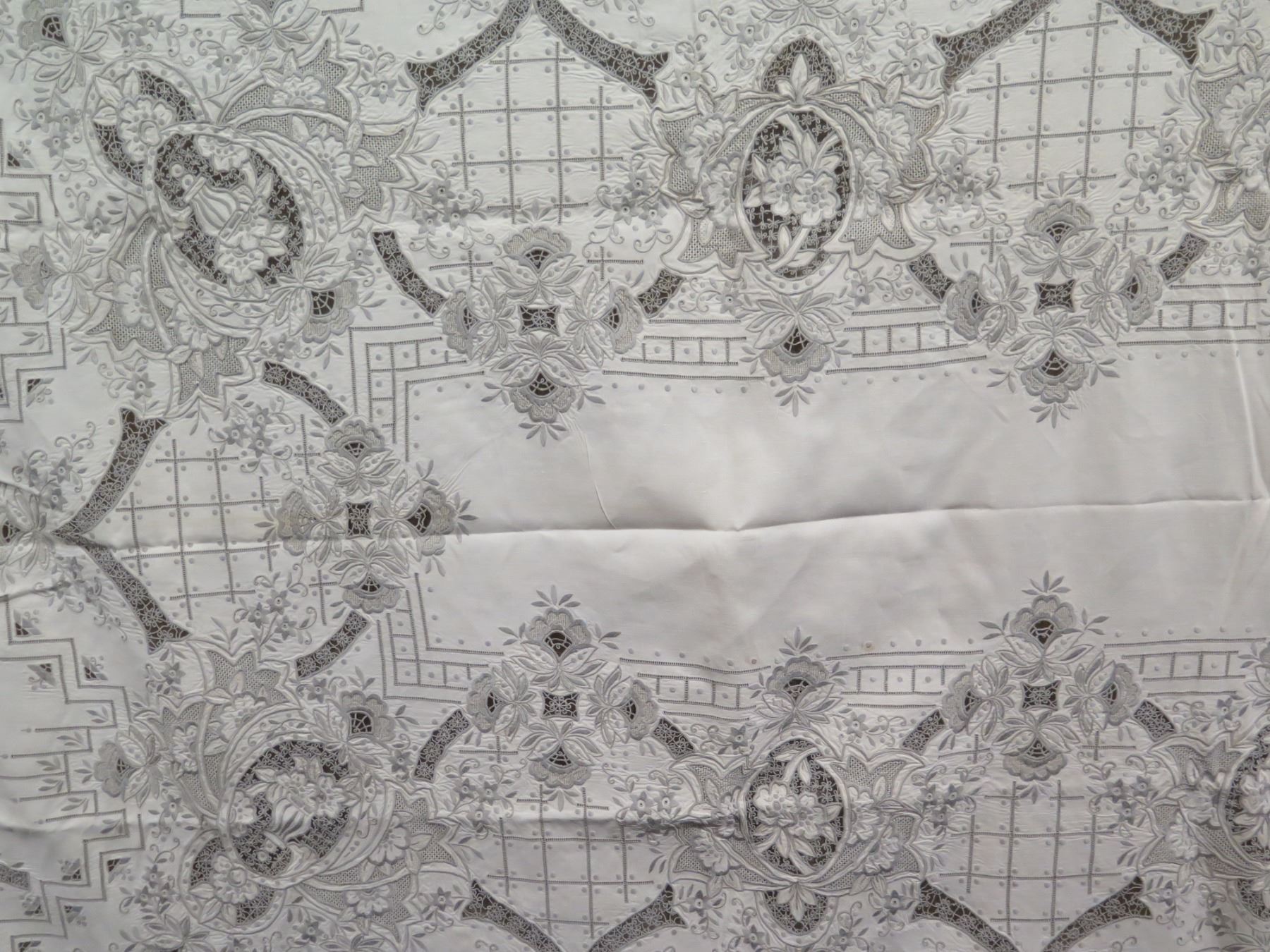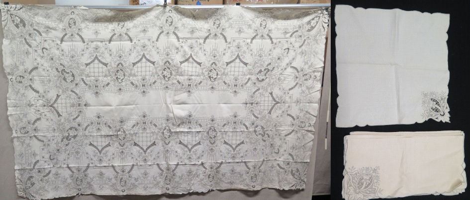 Embroidered Linen Tablecloth 107" x 64" w/ 12 Matching Placemats 18" x 18"