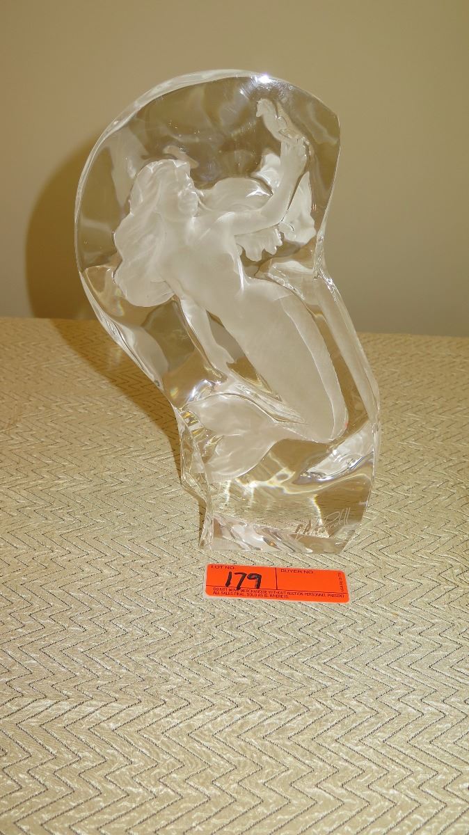Etched Mermaid Lucite Block - C.A. Pardell - Approx. 25" H