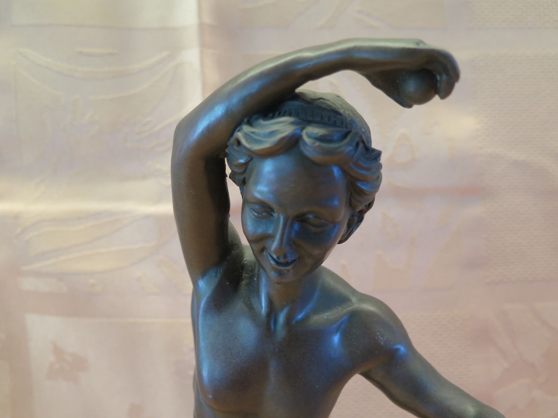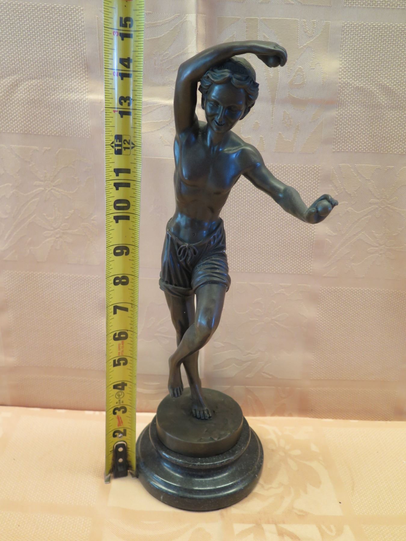 European Bronze Stamped Athlete Statue Signed "Duret" 15"H