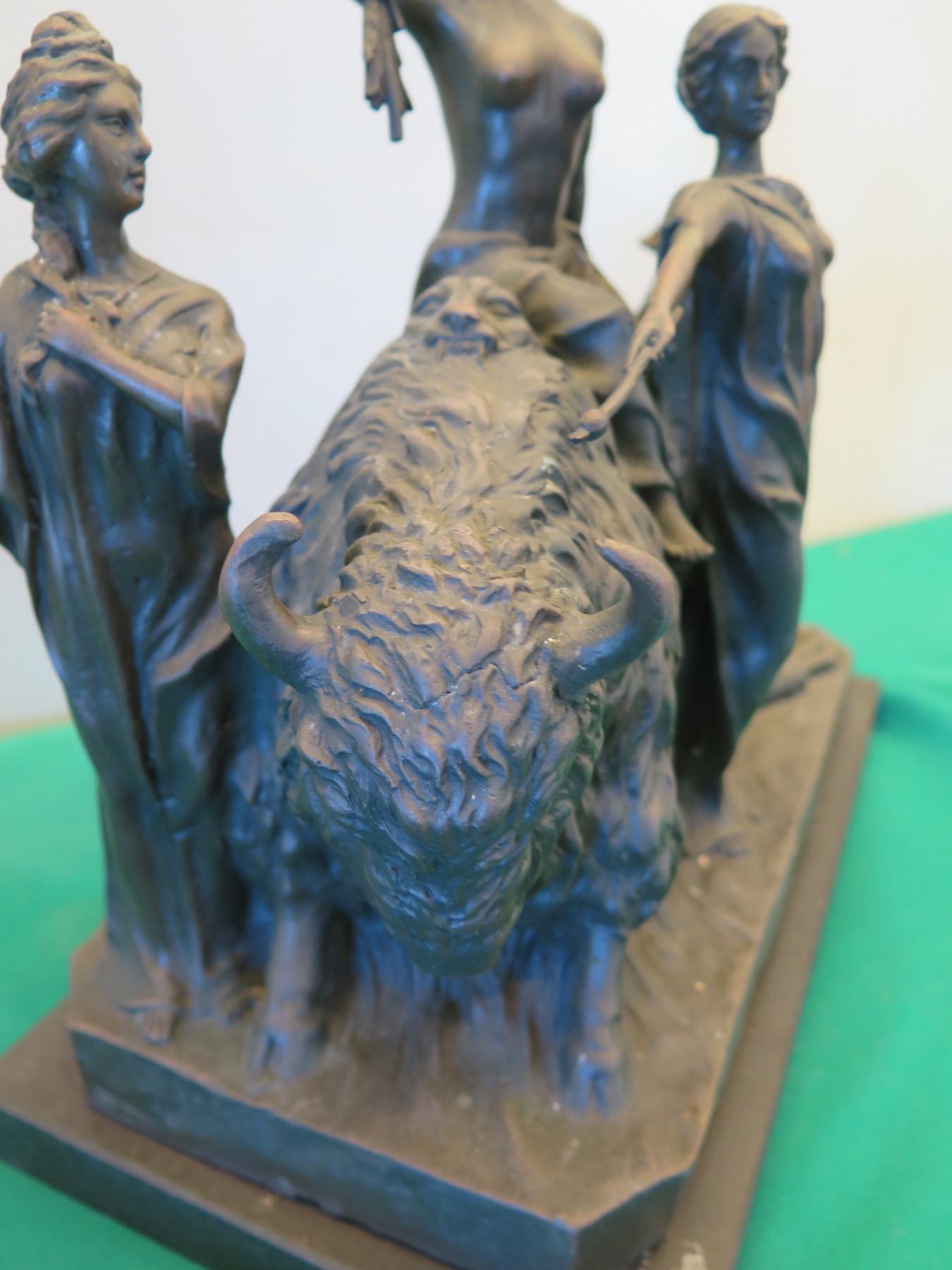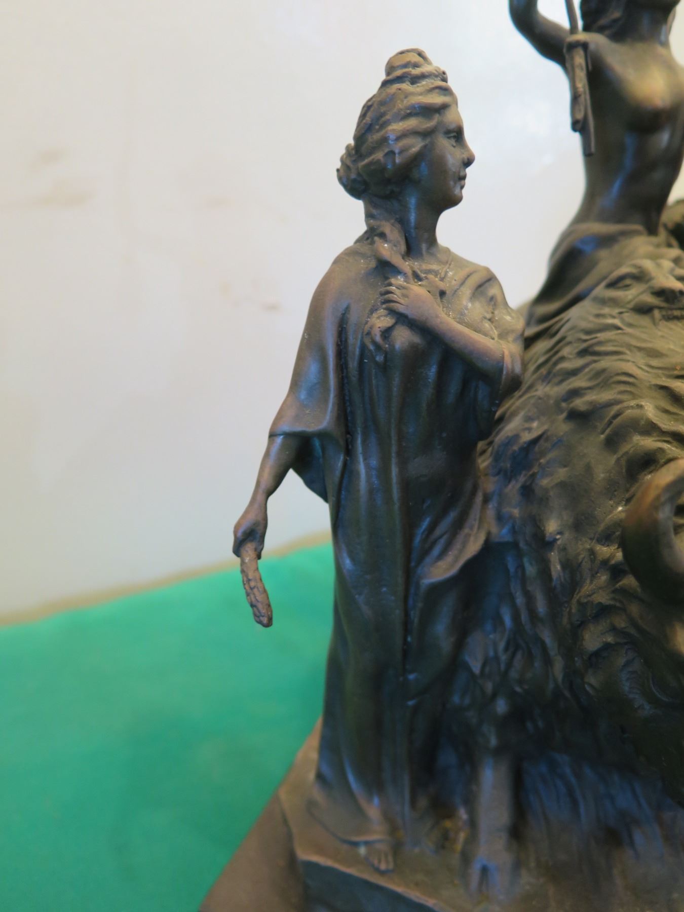 European Bronze Stamped Female Nude Warrior Statue Signed "Milo"