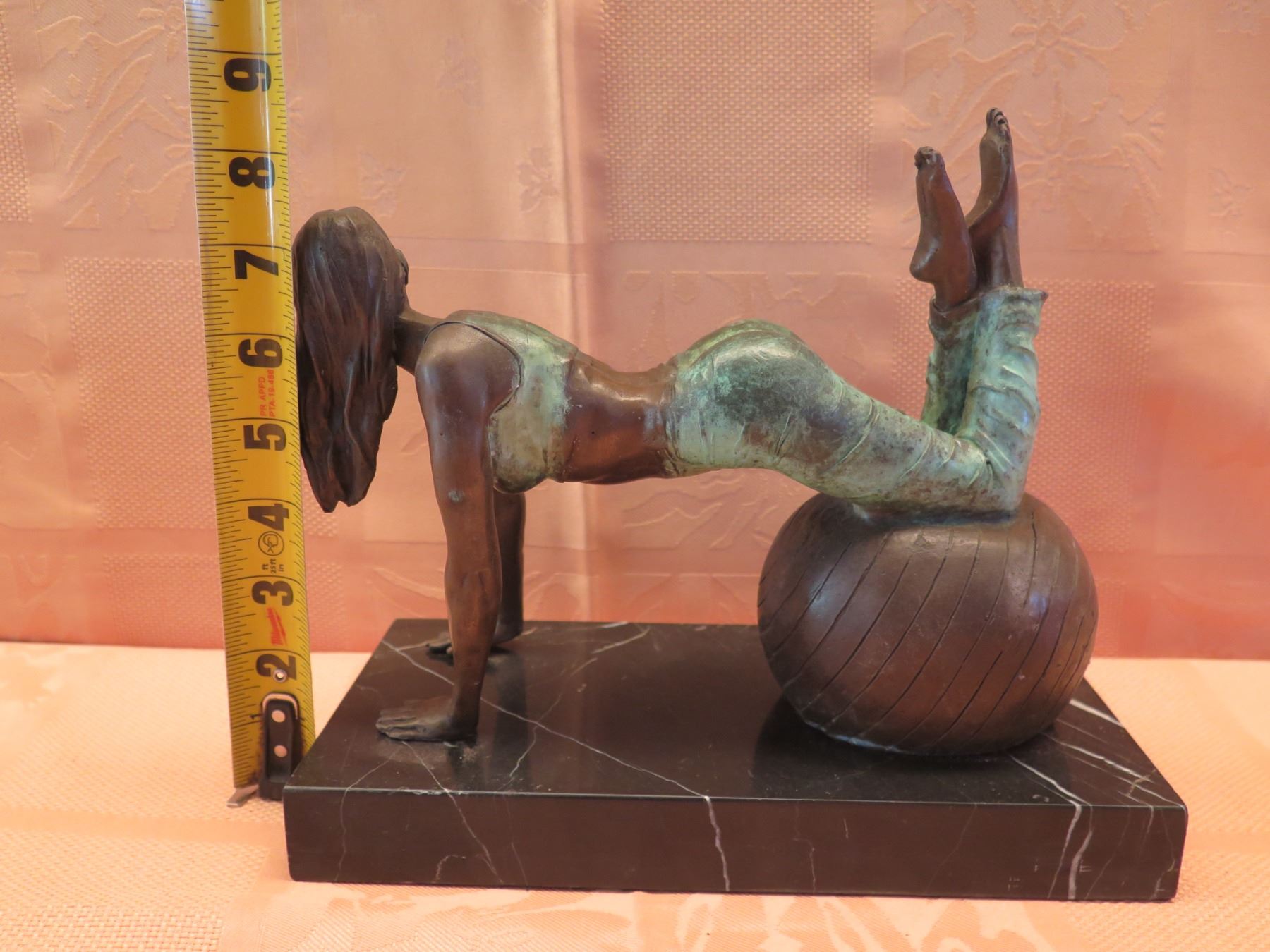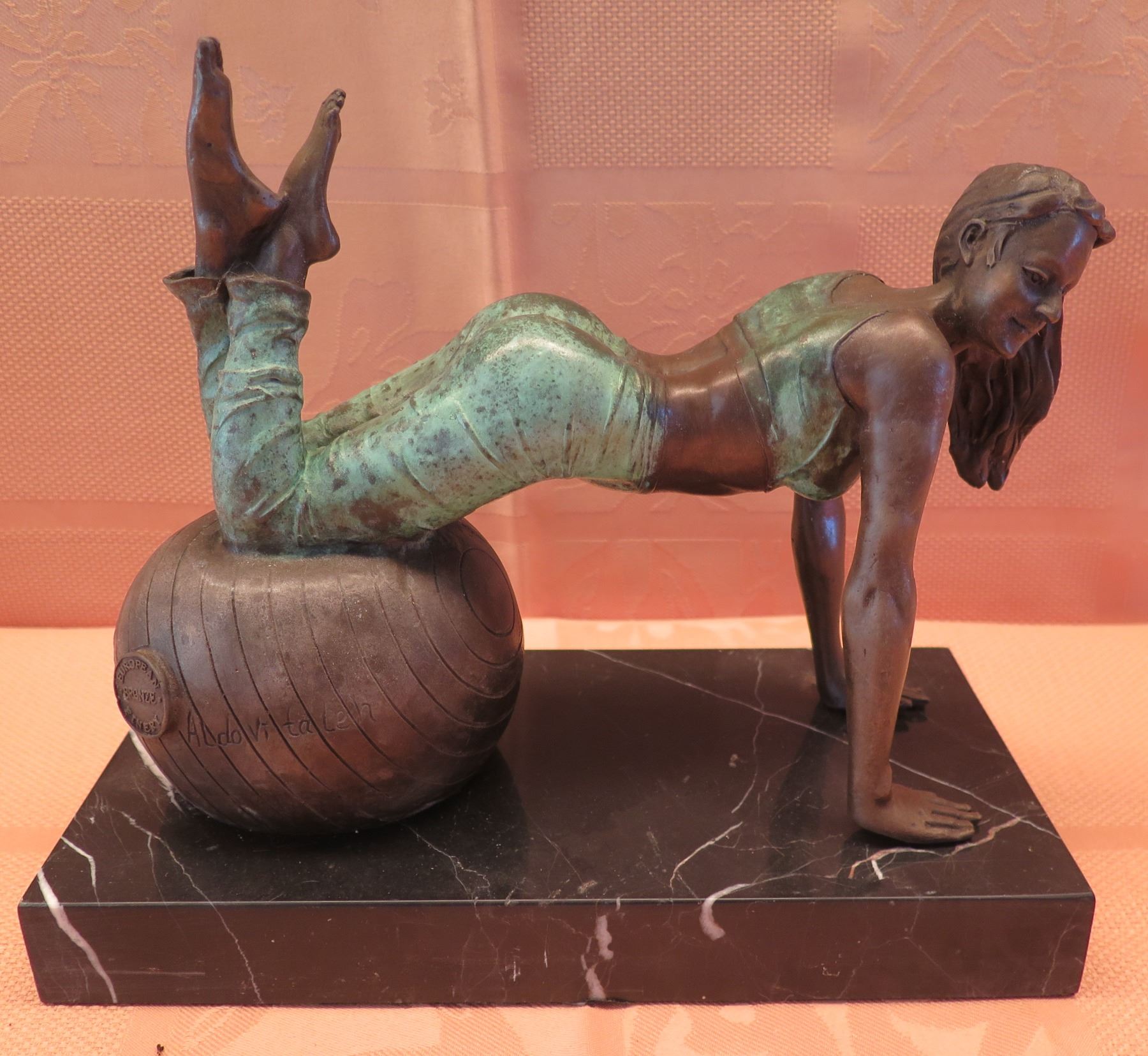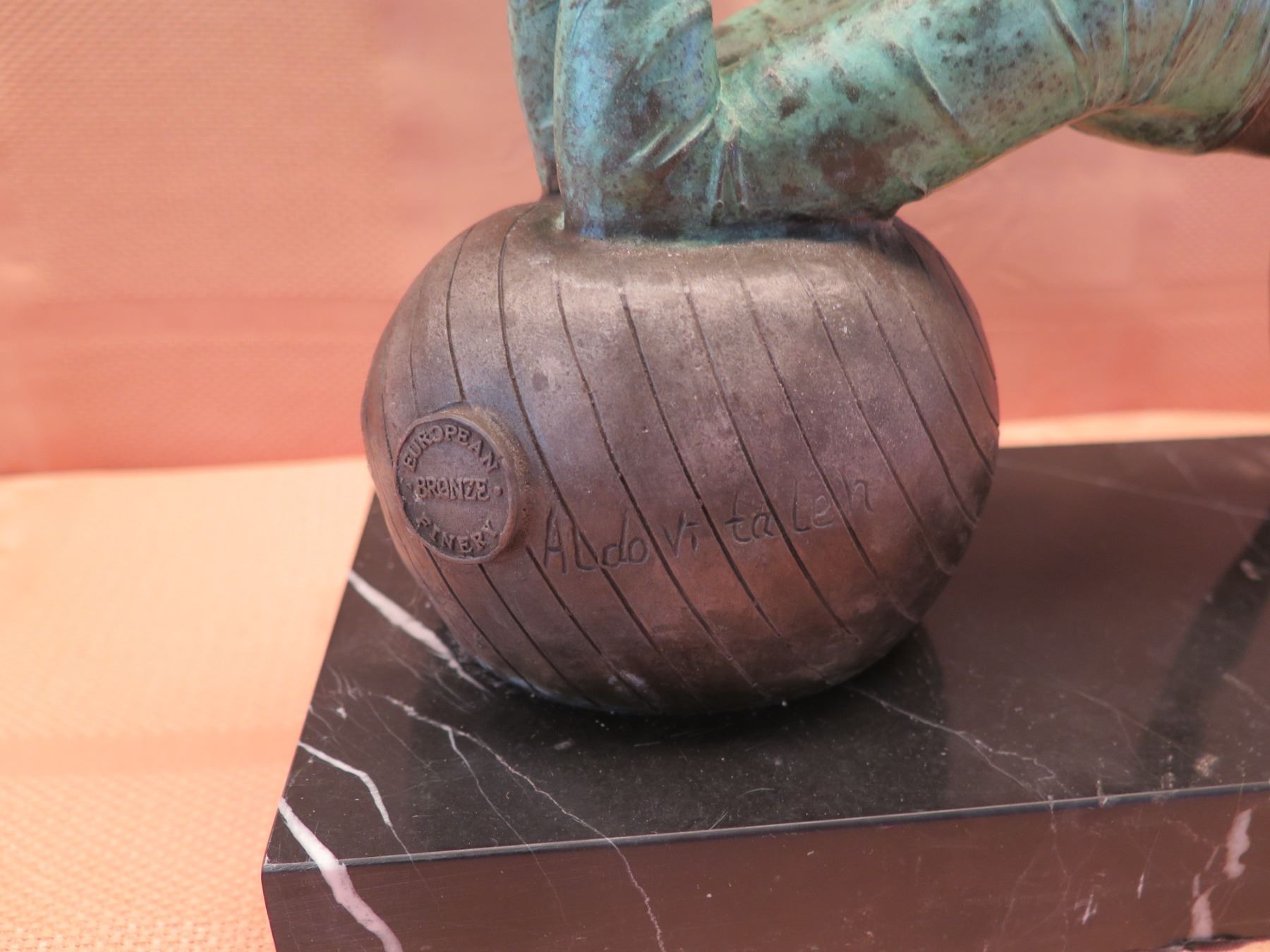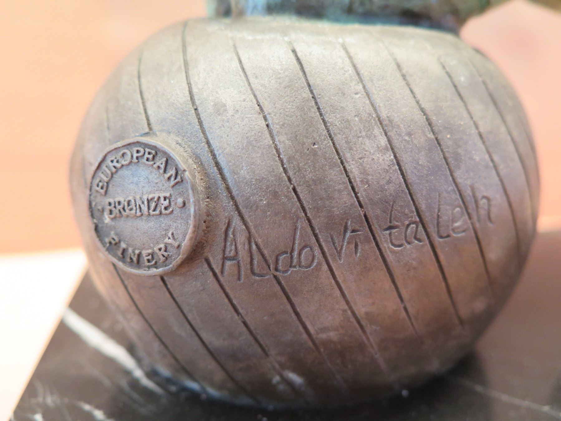 European Bronze Stamped Female Statue on Stone Base Signed "Aldo Vitaleh" 10"x8"H