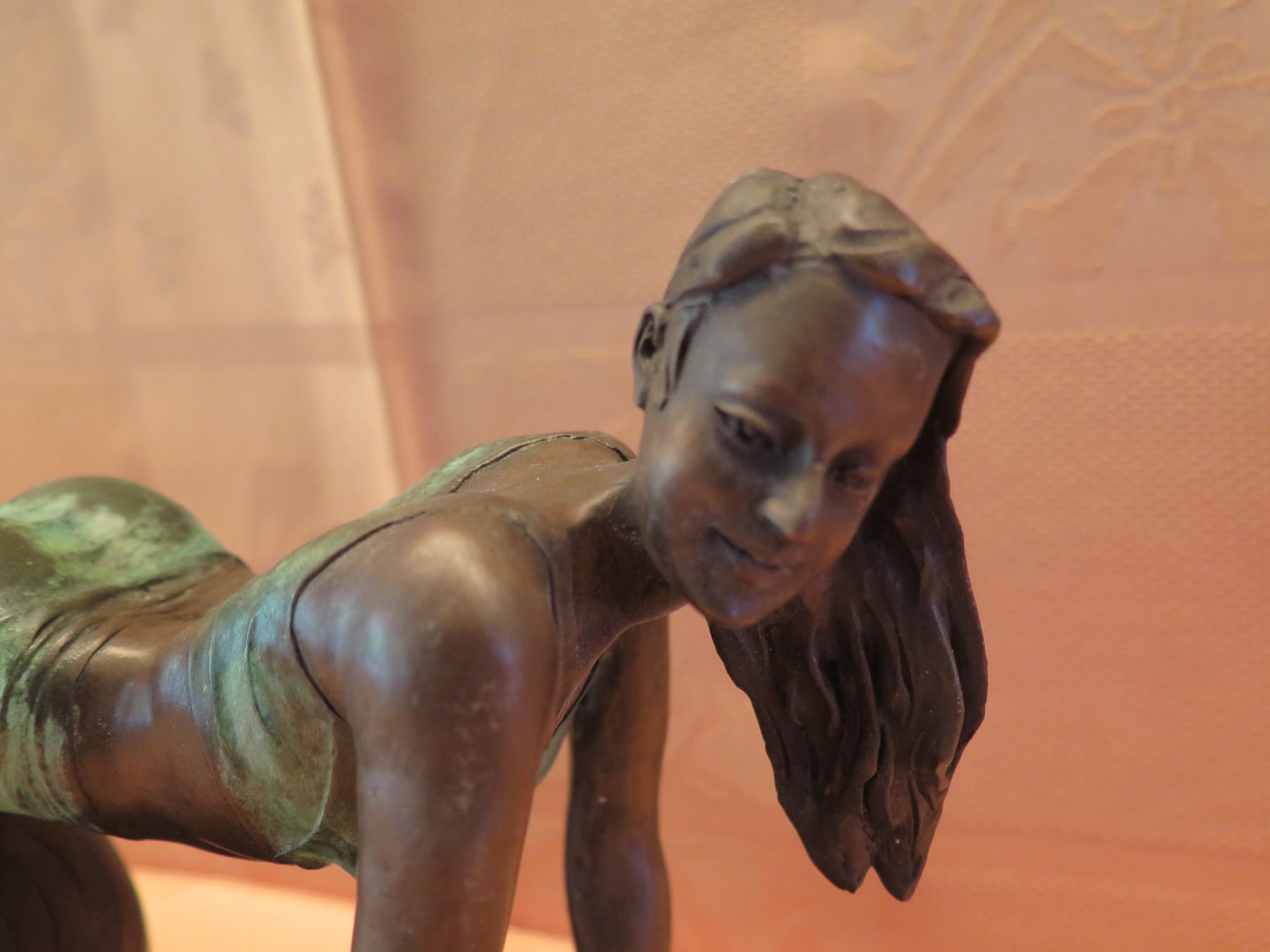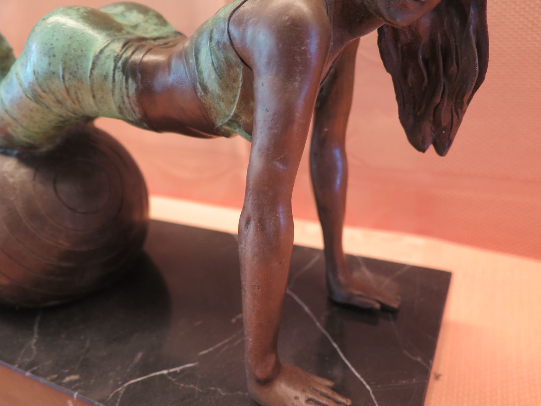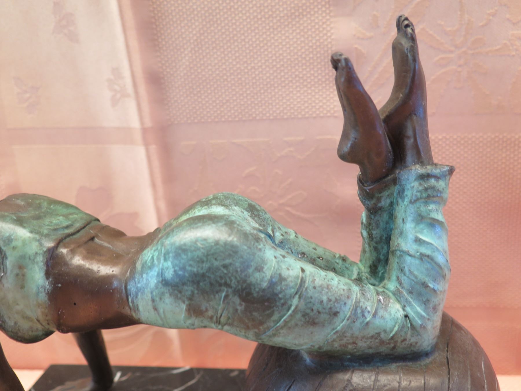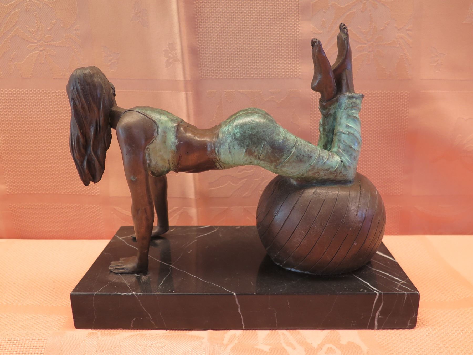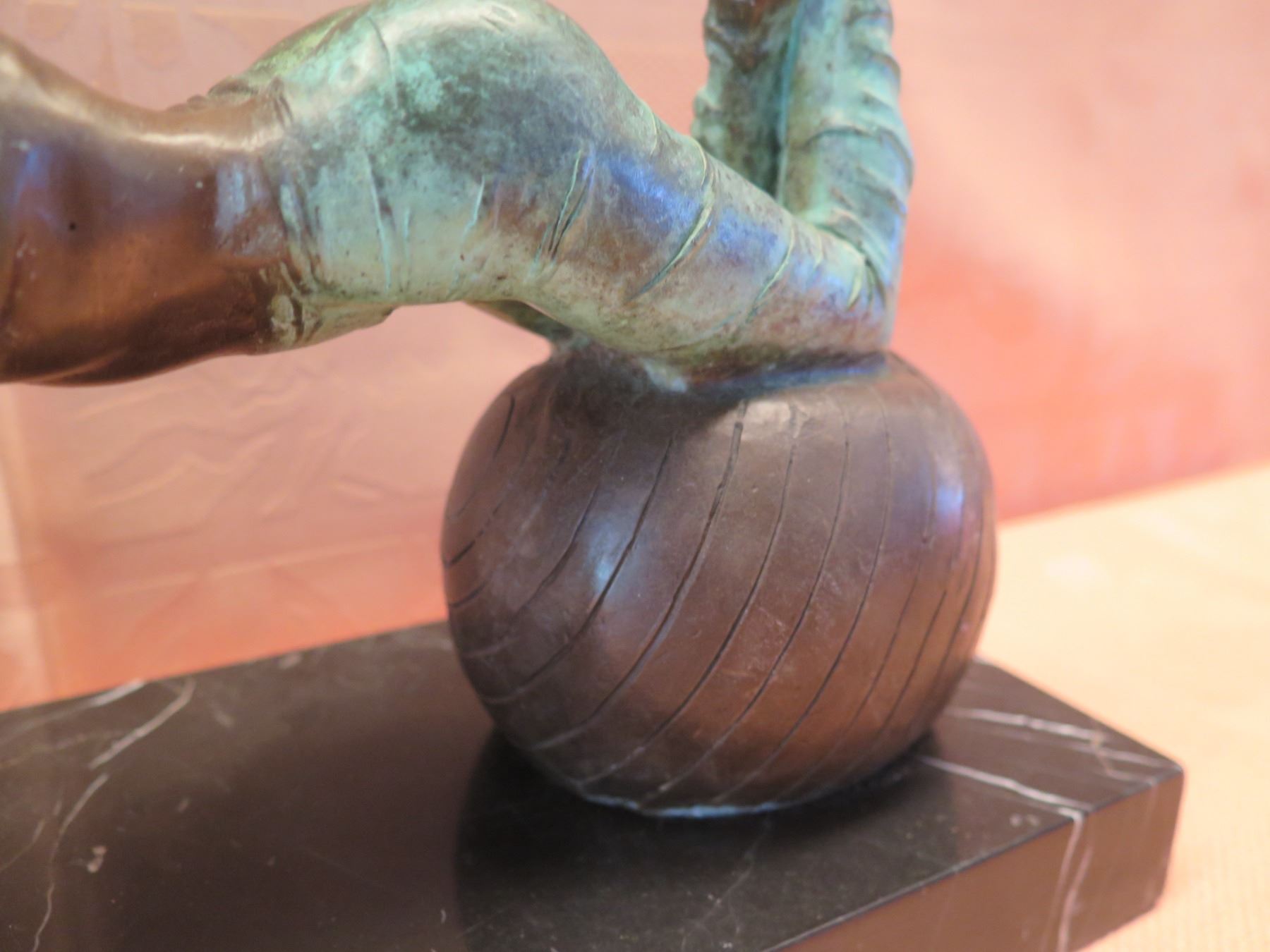 European Bronze Stamped Female Statue on Stone Base Signed "Aldo Vitaleh" 10"x8"H