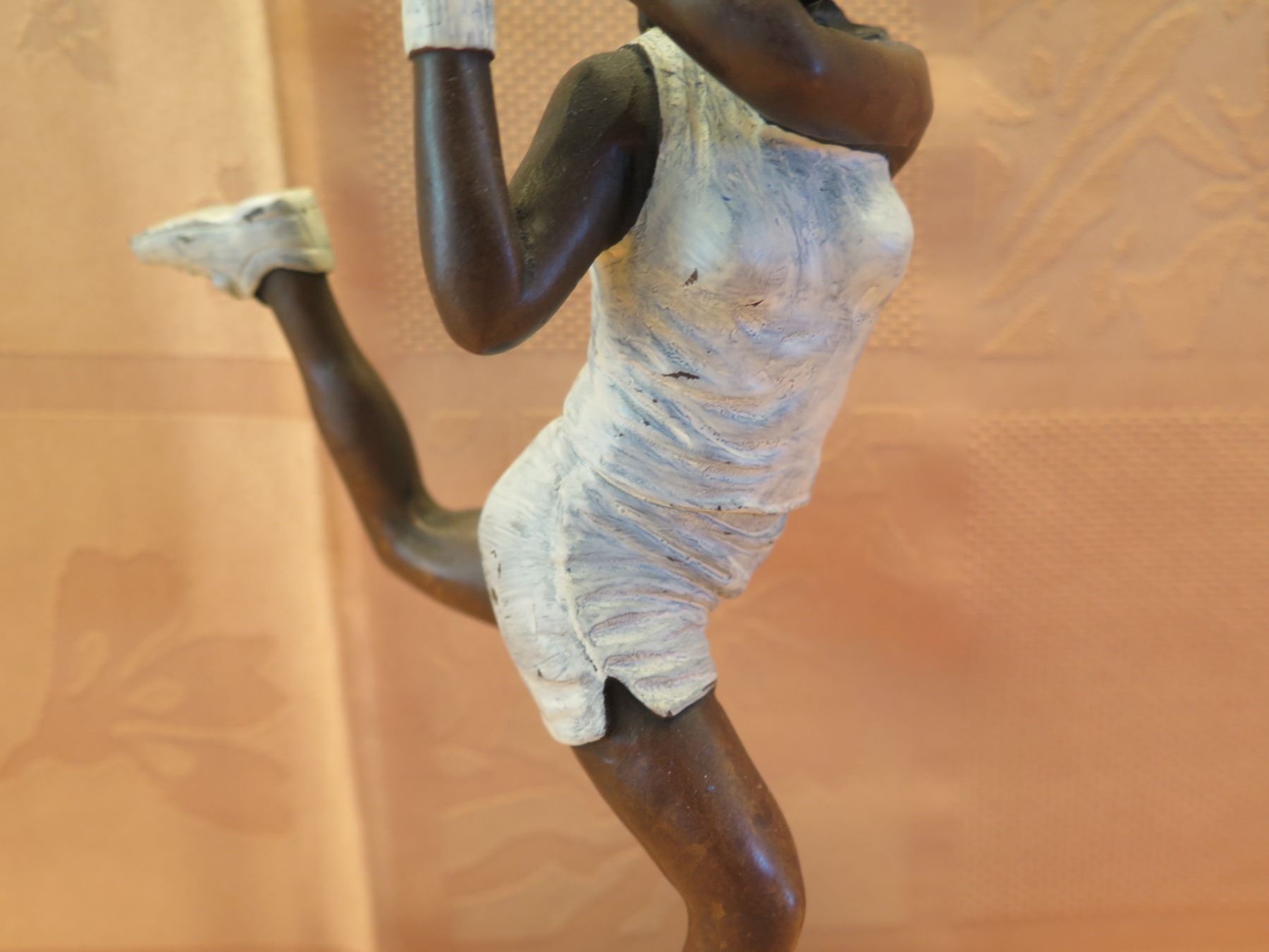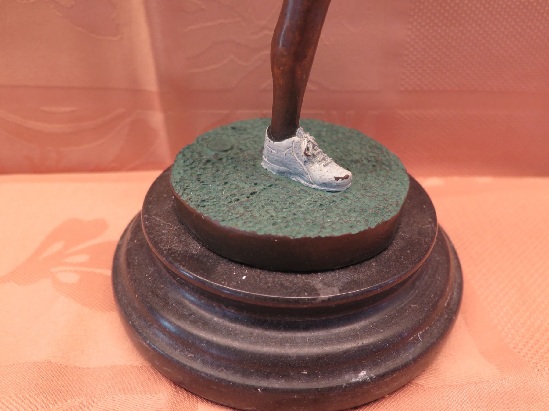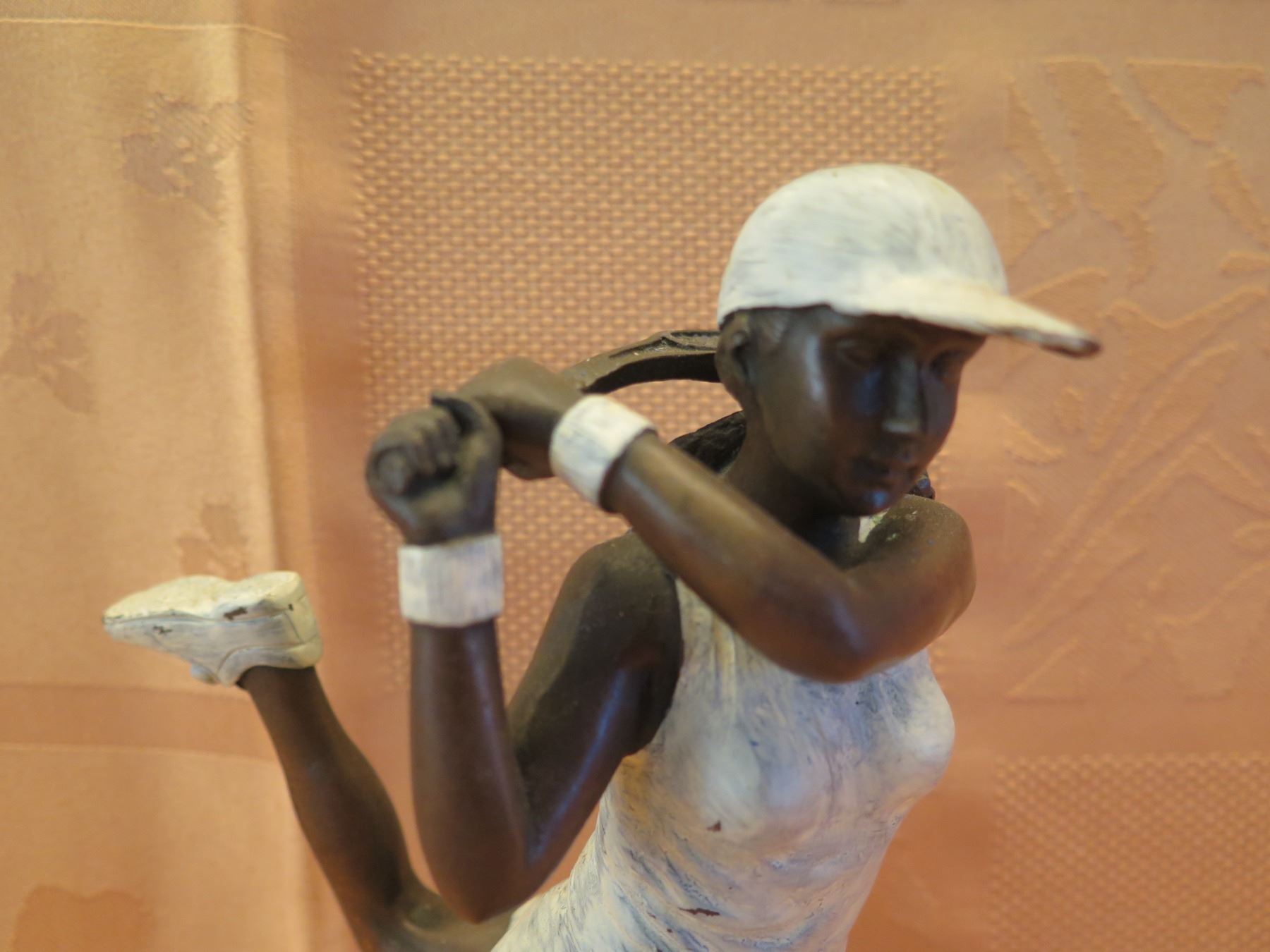 European Bronze Stamped Female Tennis Statue on Round Base 10"H