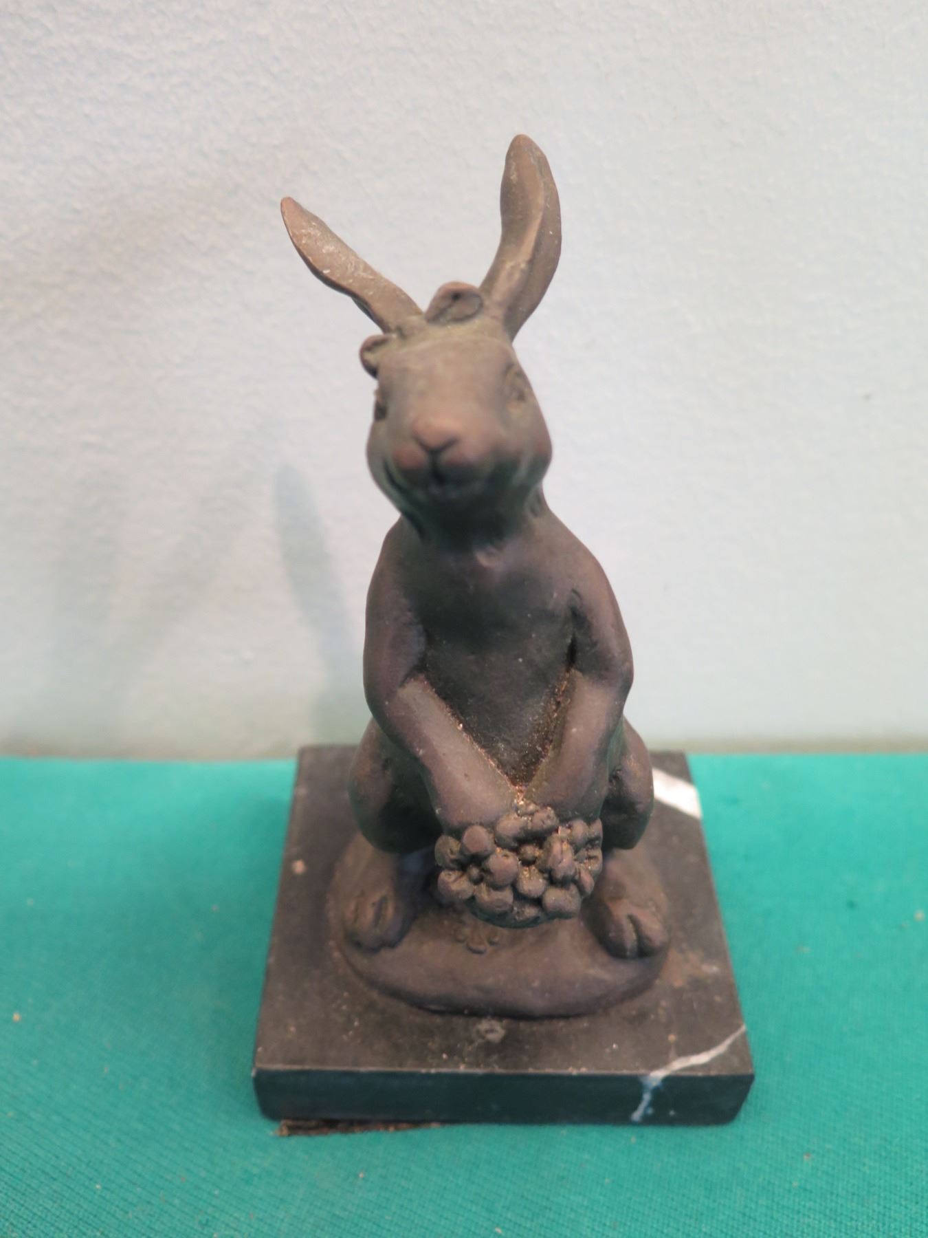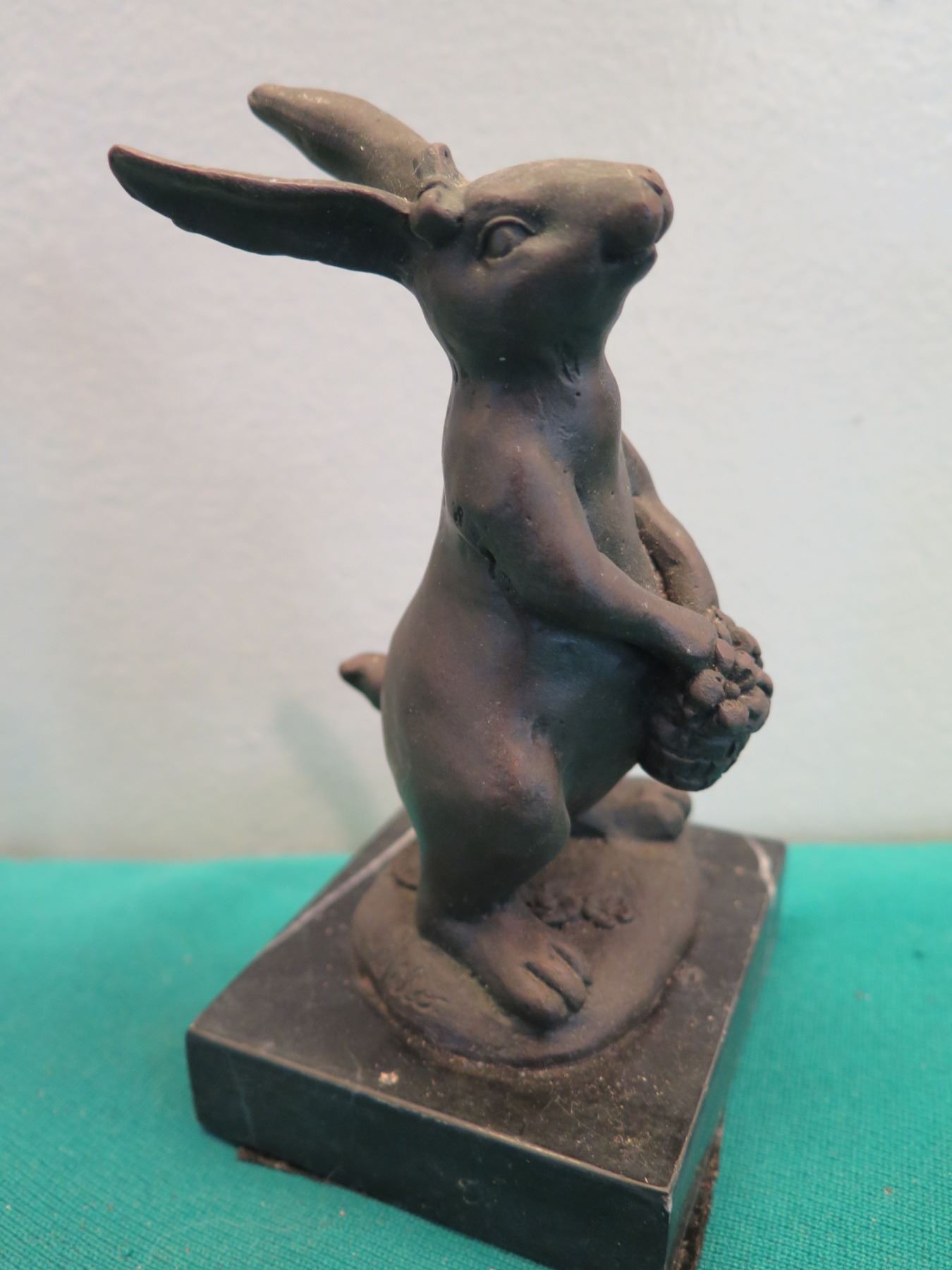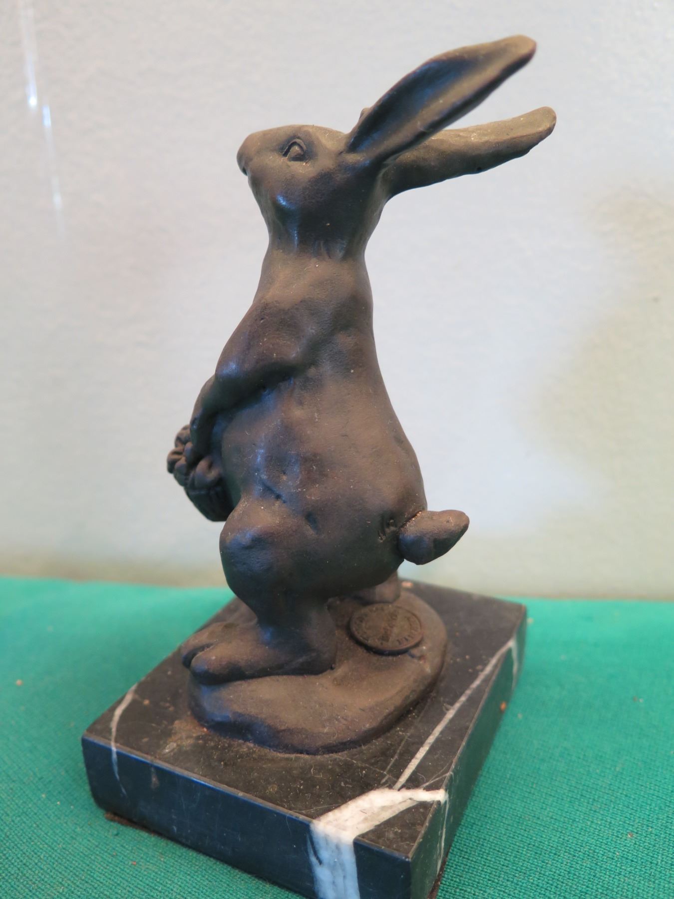 European Bronze Stamped Rabbit Statue Signed "Milo" on Stone Base 5.5"H