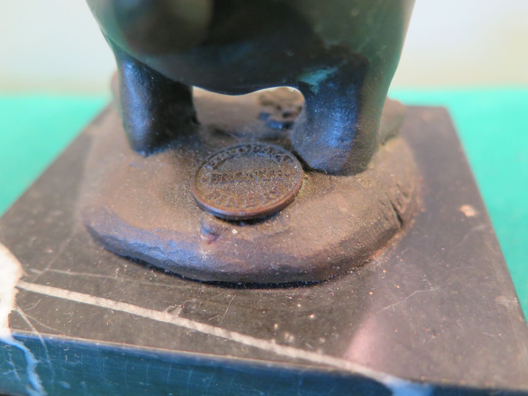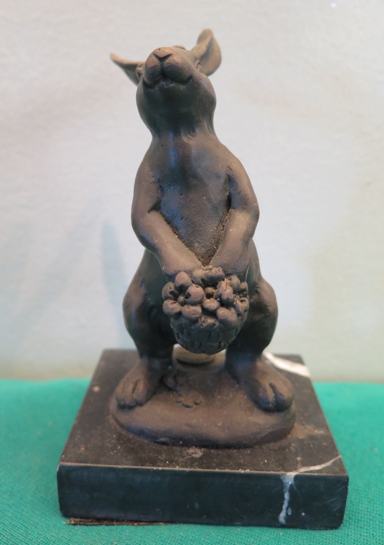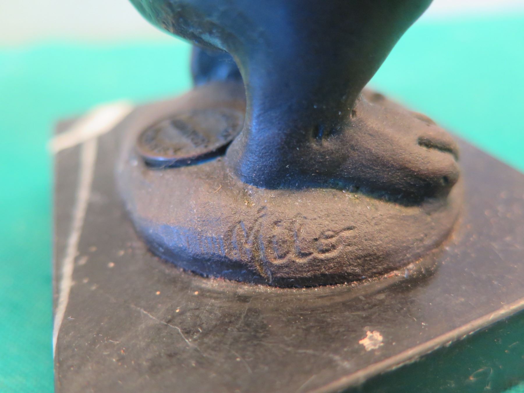 European Bronze Stamped Rabbit Statue Signed "Milo" on Stone Base 5.5"H