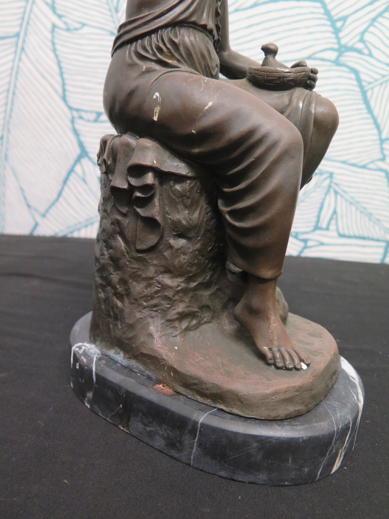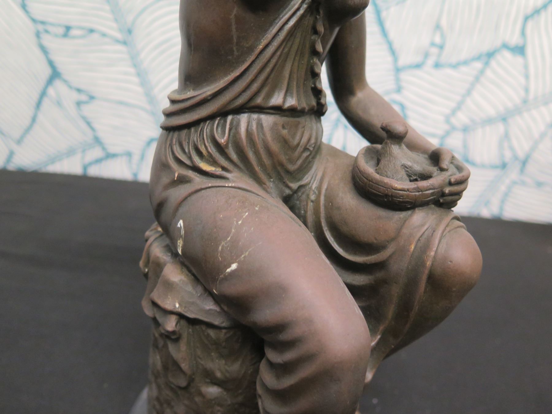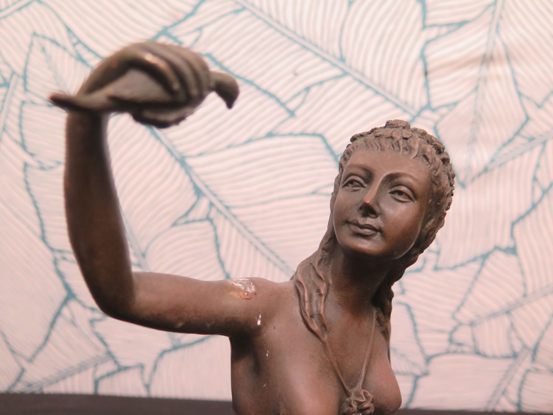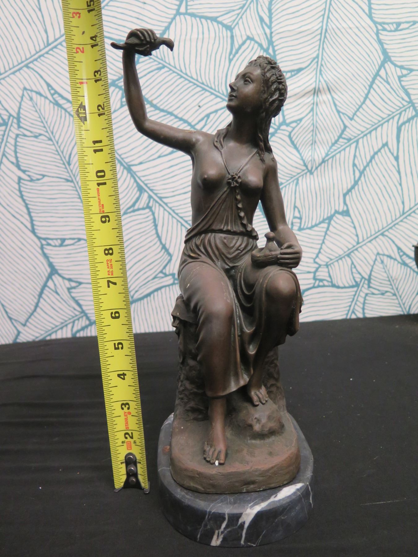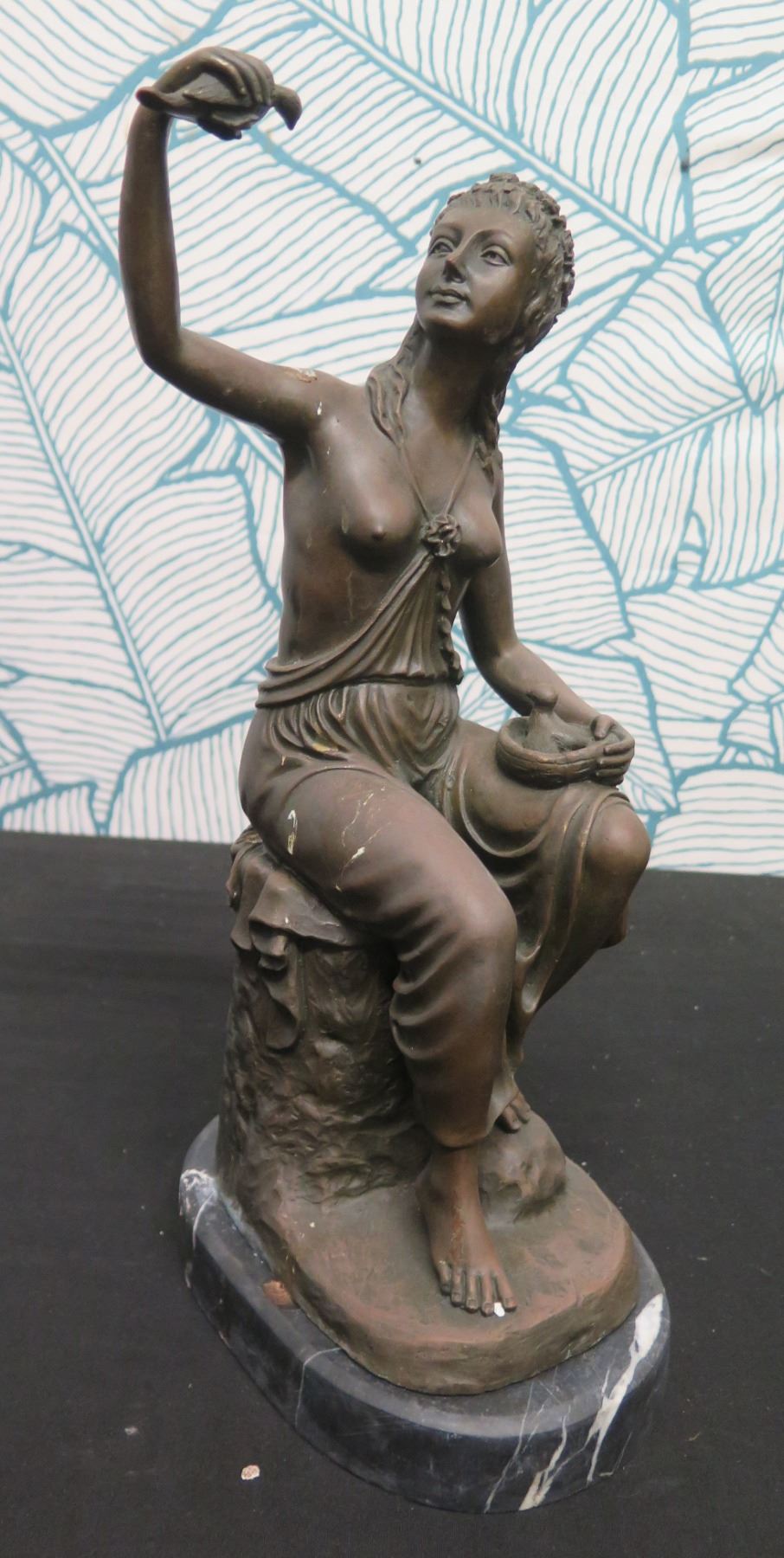 European Finest Bronze Nude Female w/ Bird Figure Signed by Artist 5"x7"x15"