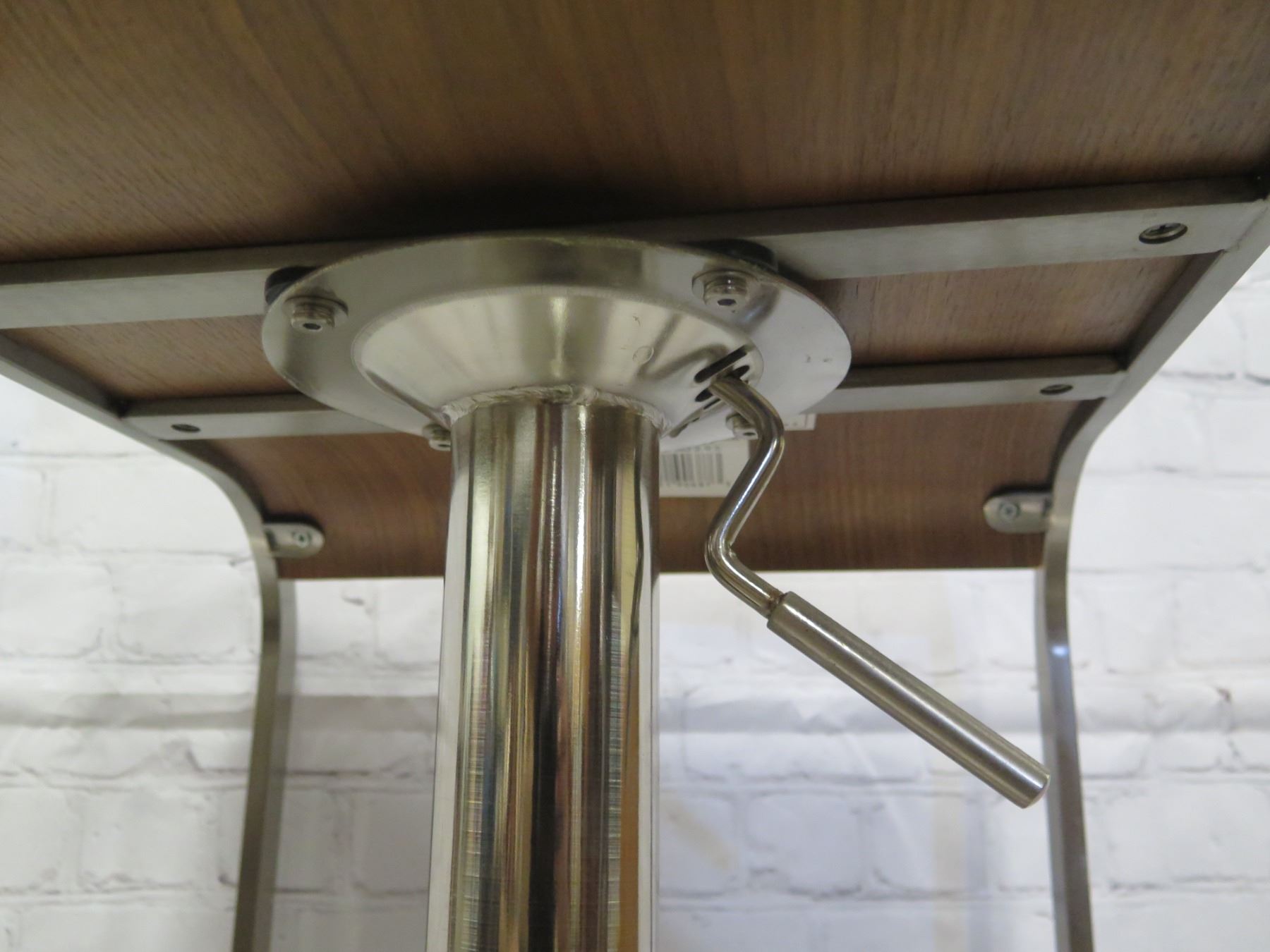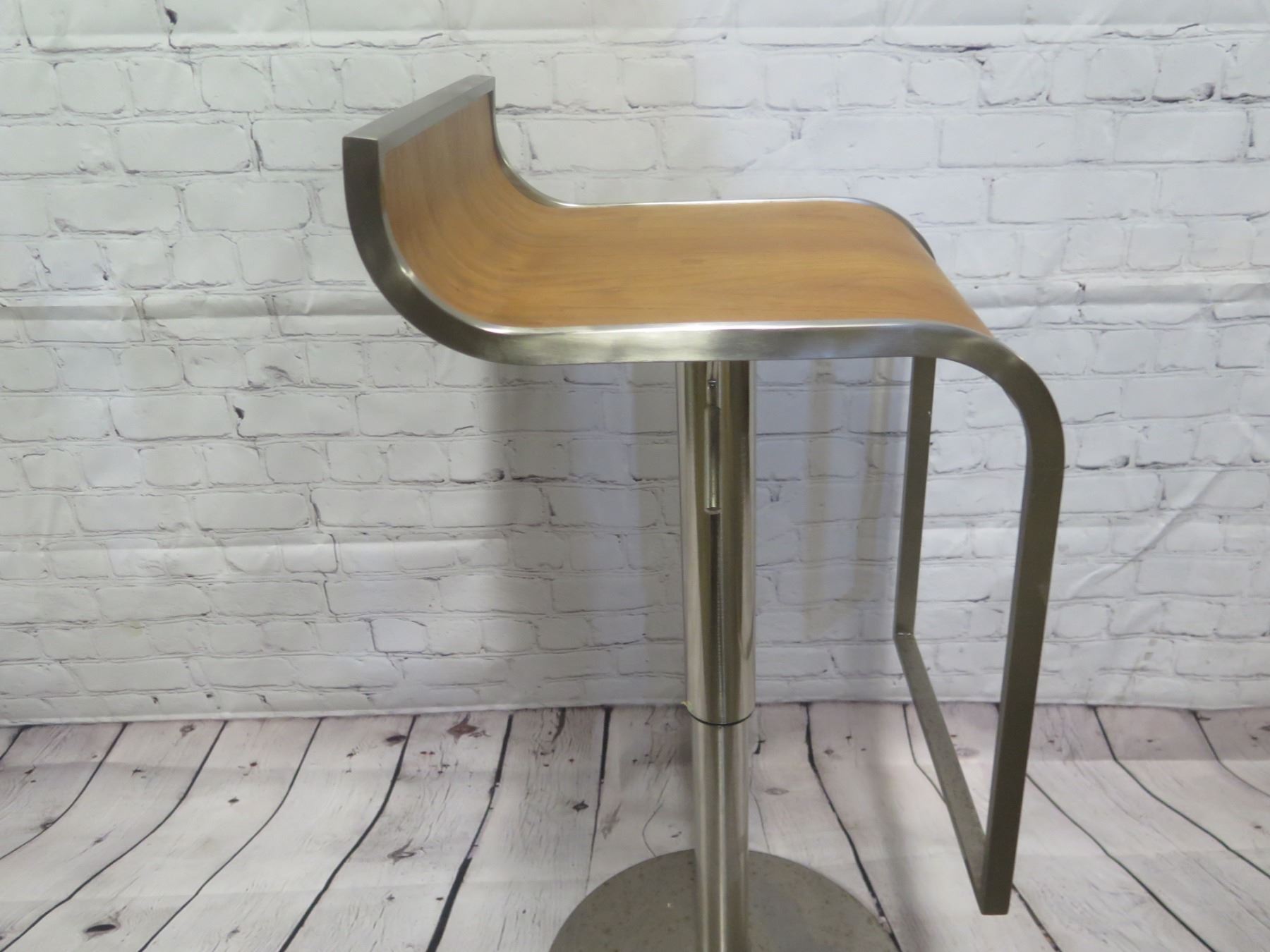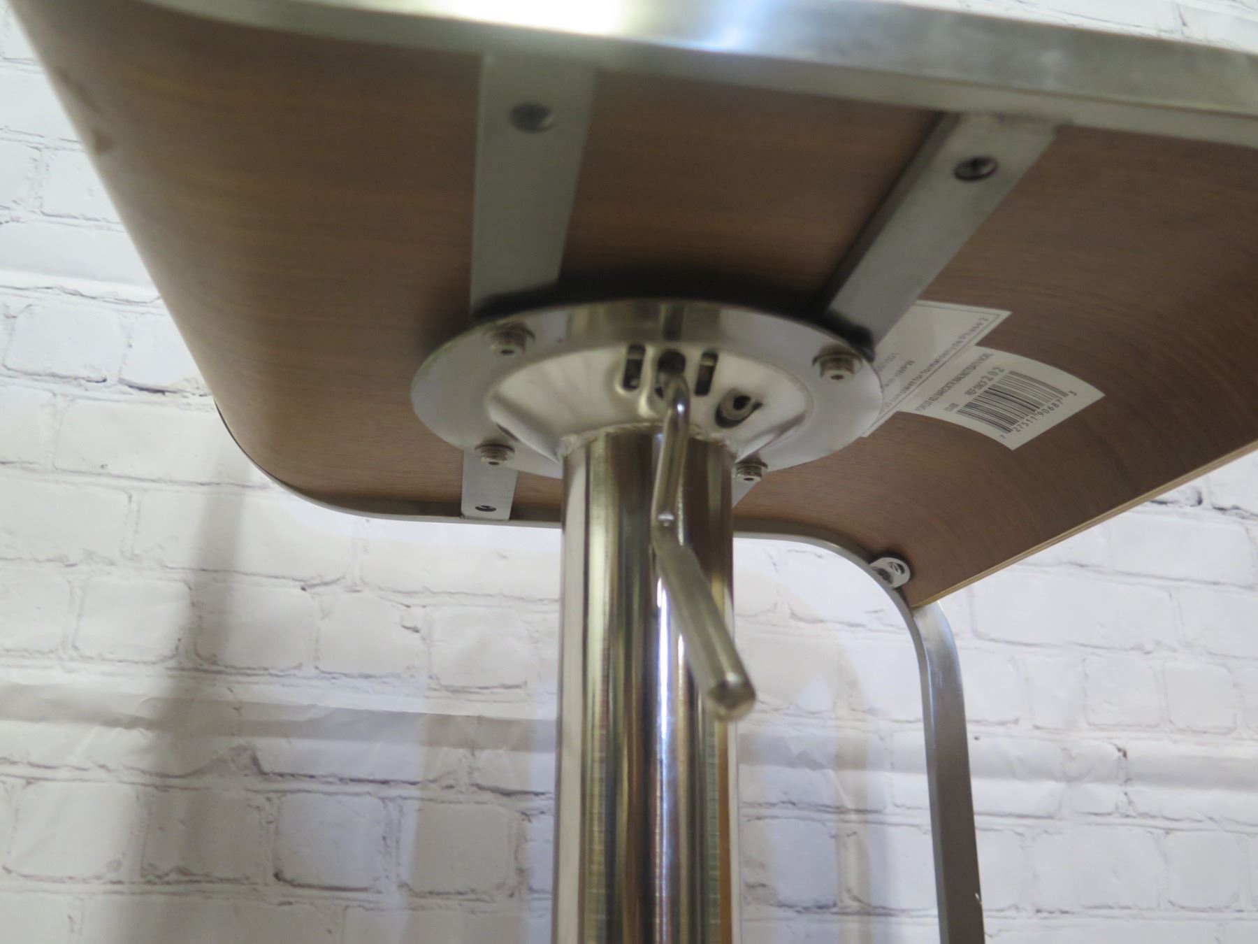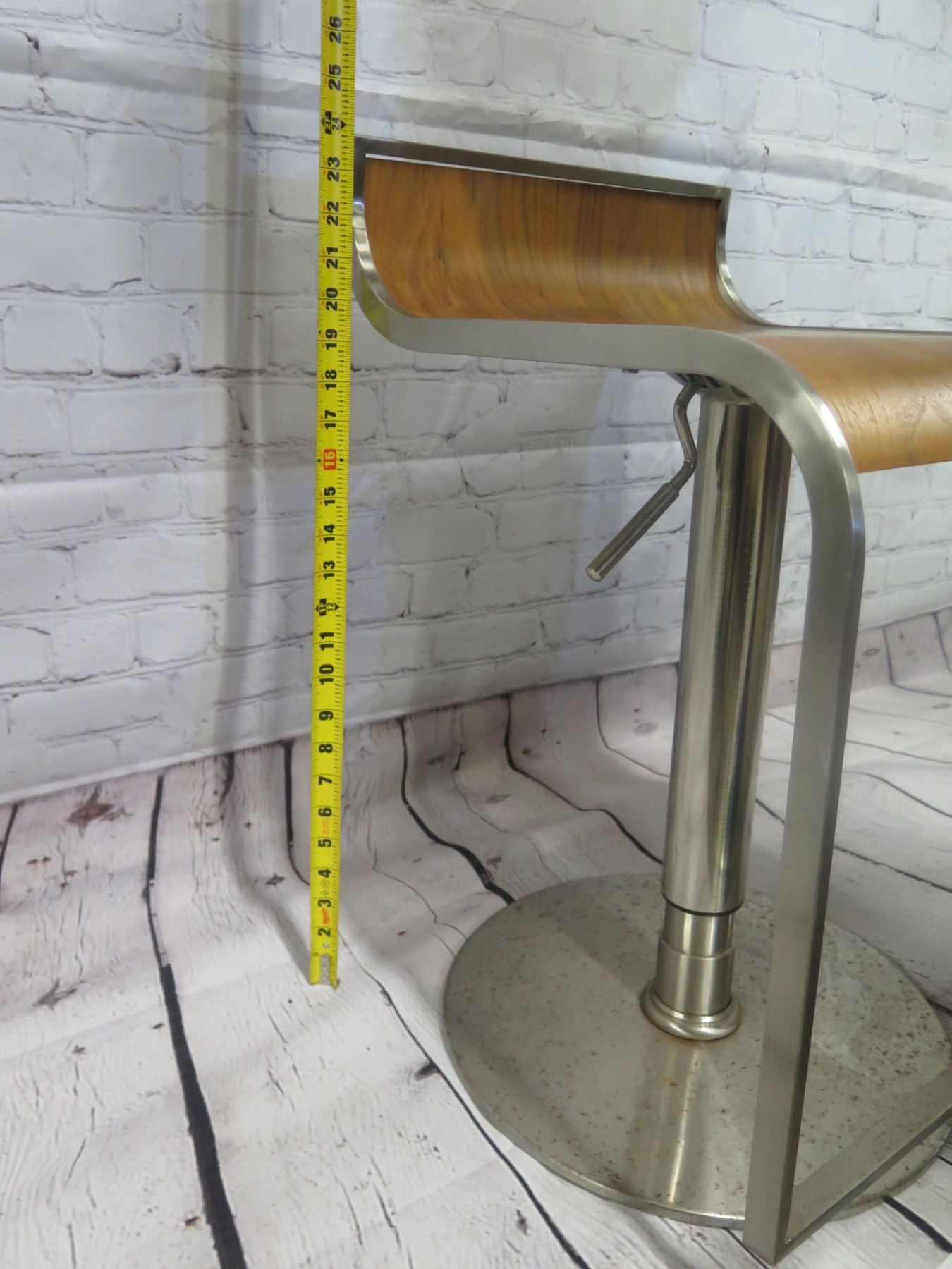 Eurostyle Metal Adjustable Swivel Barstool w/ Walnut Seat 14"x13"x24"H (Extends to 34"H). Retail $300