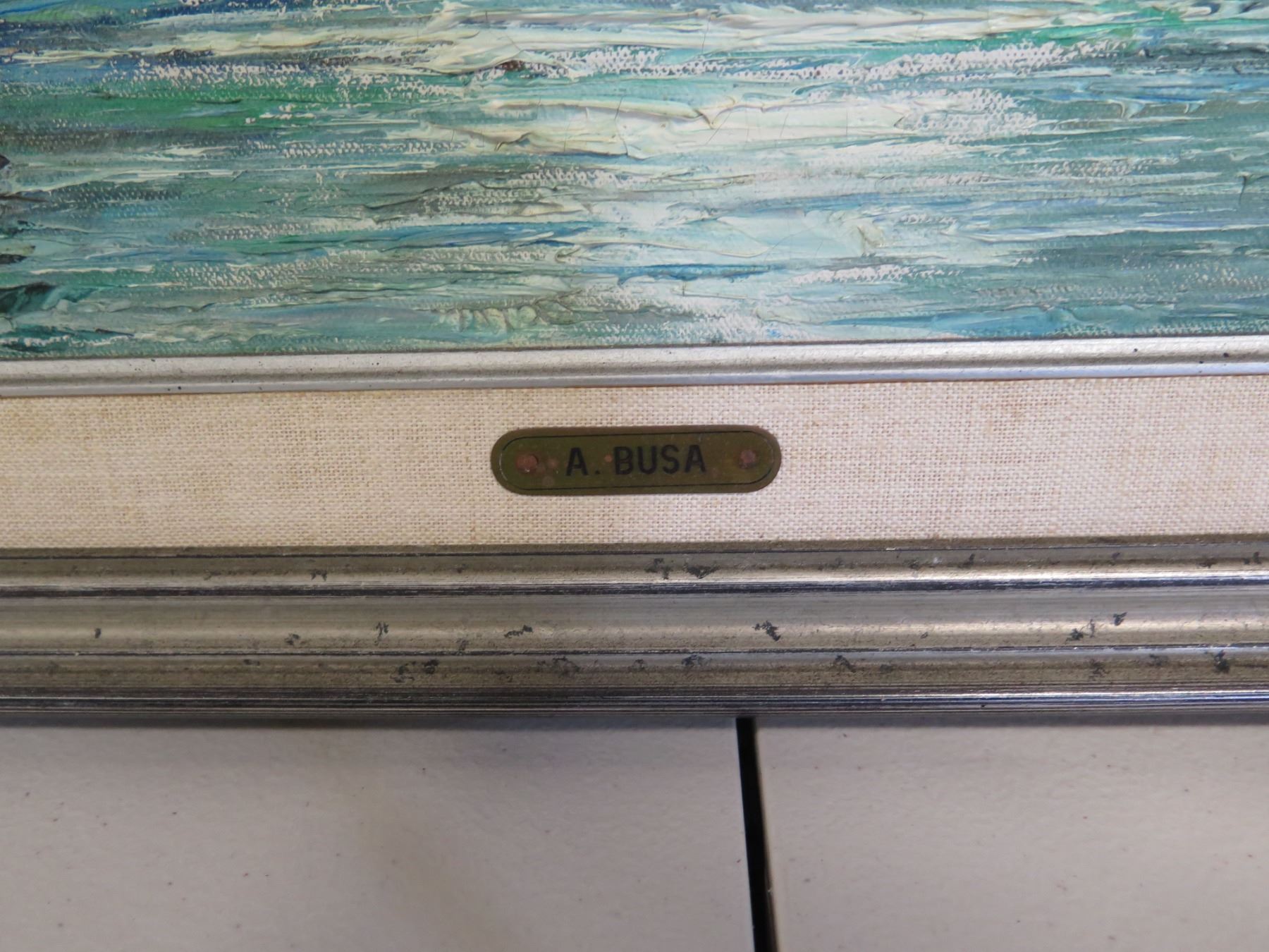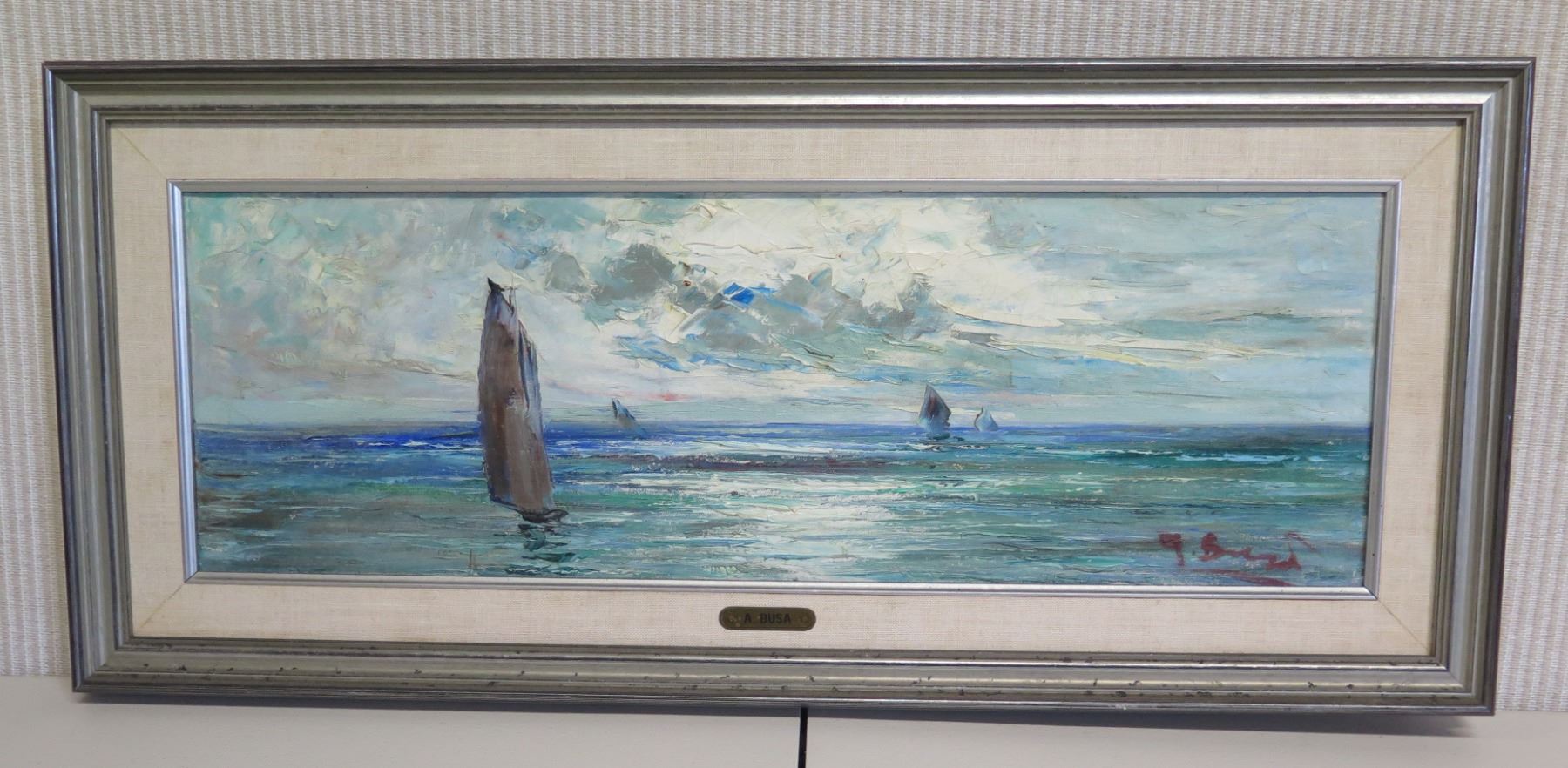 Evening Seascape Original Oil Painting, Signed A. Busa, Framed 28" x 13" (frame size)