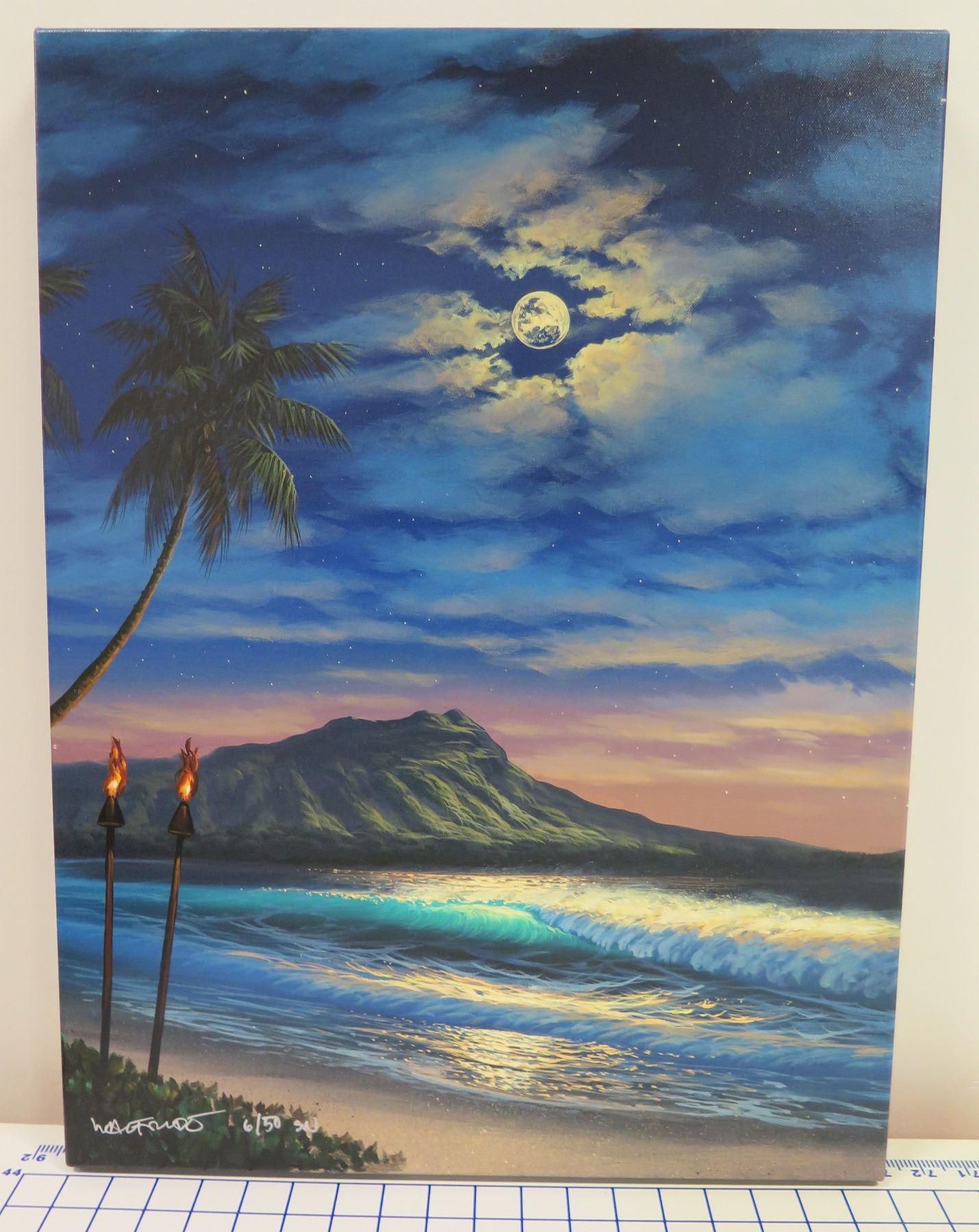 Evening of Peace, Diamond Head Limited Edition Canvas Giclee #6/50 by Walfrido Garcia 24" x 18" (retail $975). Has artist's original signature.