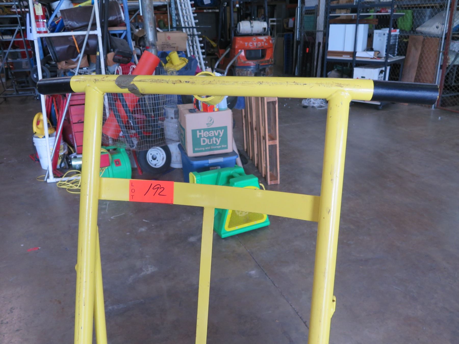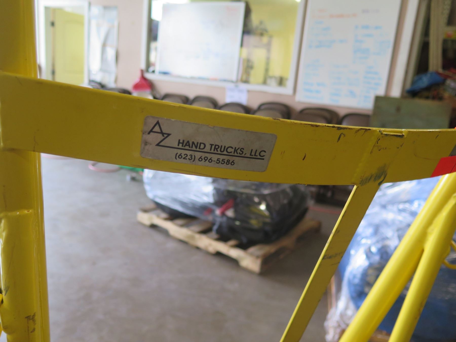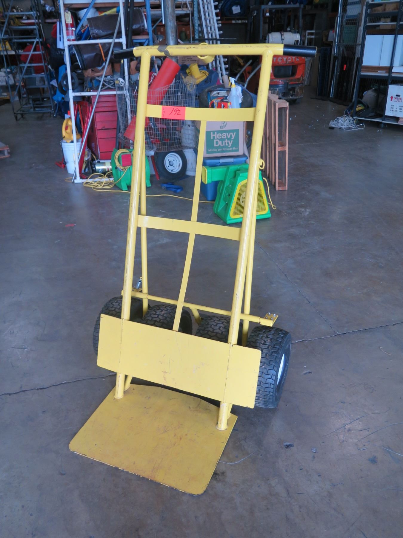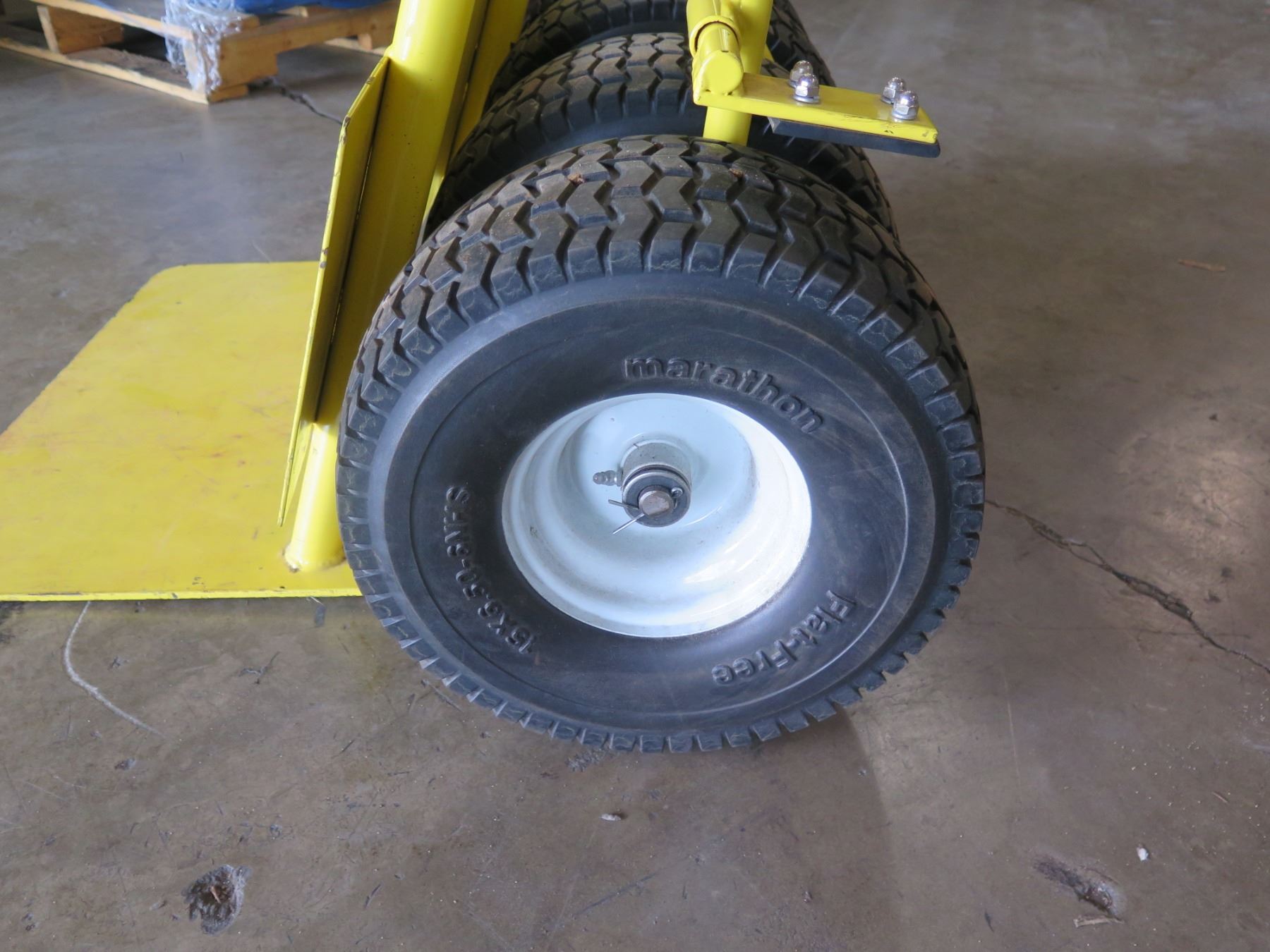 Extra large hand truck to haul big inflatables around. Made by AZ handtrucks. Four tires are solid. Foot pedal for break. Rings on each side to strap down inflatable.