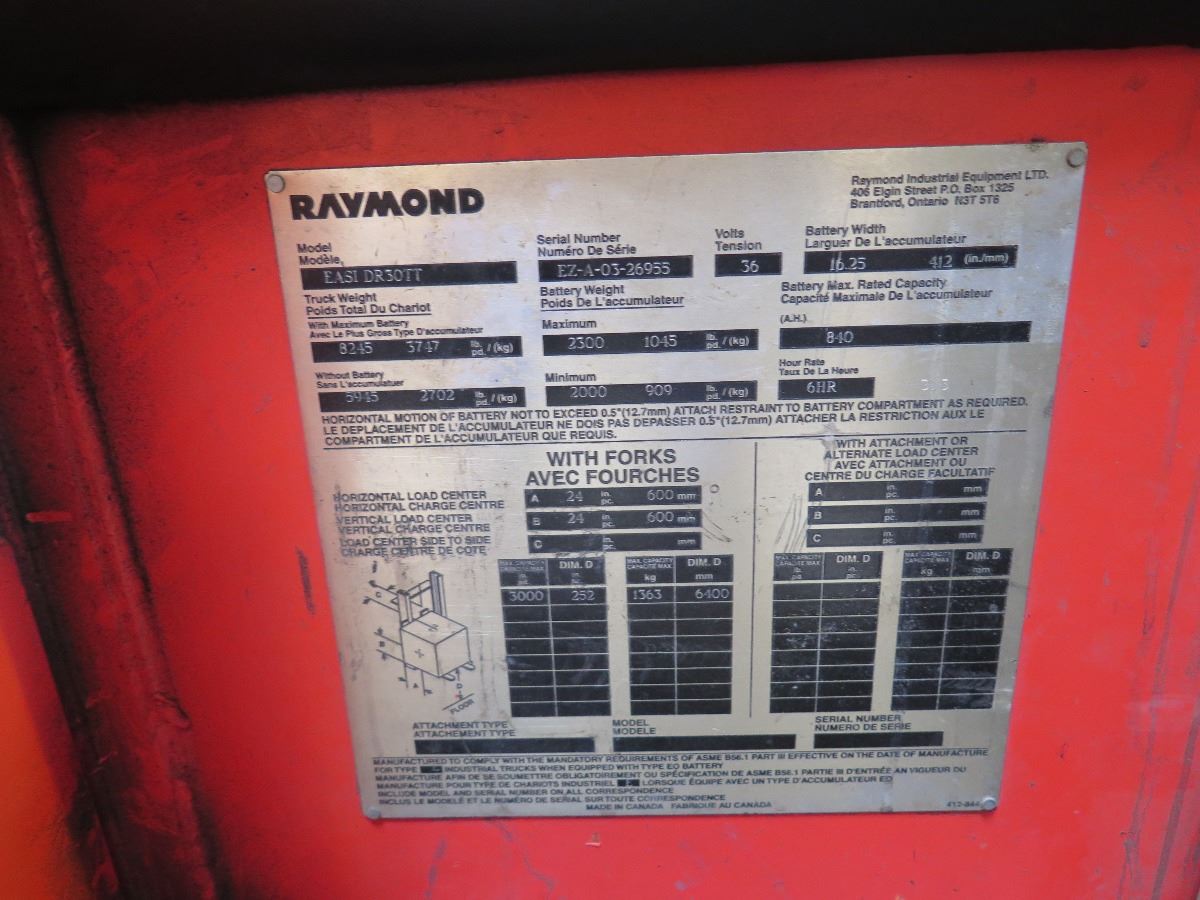 FORKLIFT: RAYMOND EASI DR30TT DEEP REACH NARROW AISLE ELECTRIC ORDER PICKER (SN EZ-A-03-26955) (INCLUDES CHARGER)