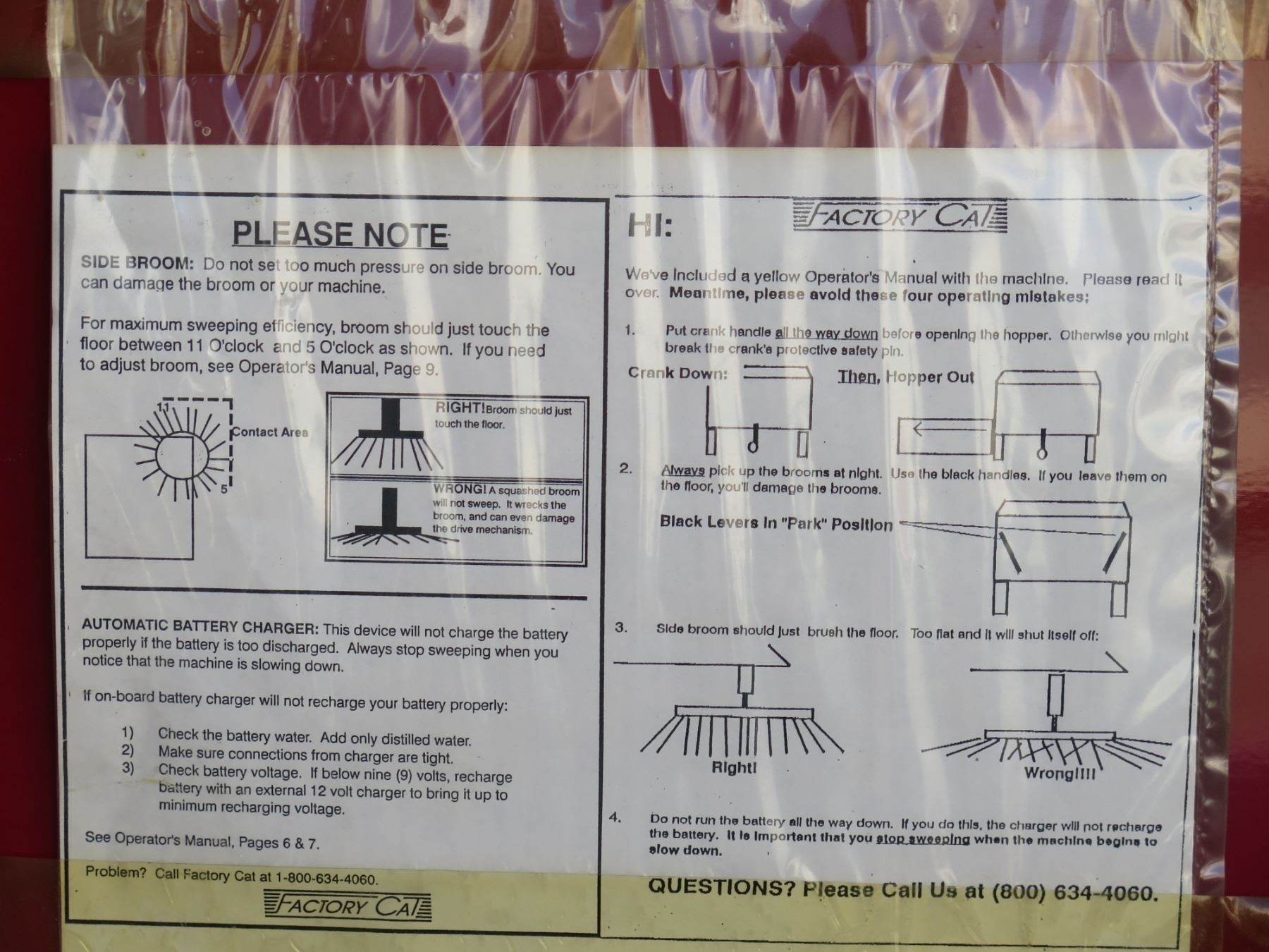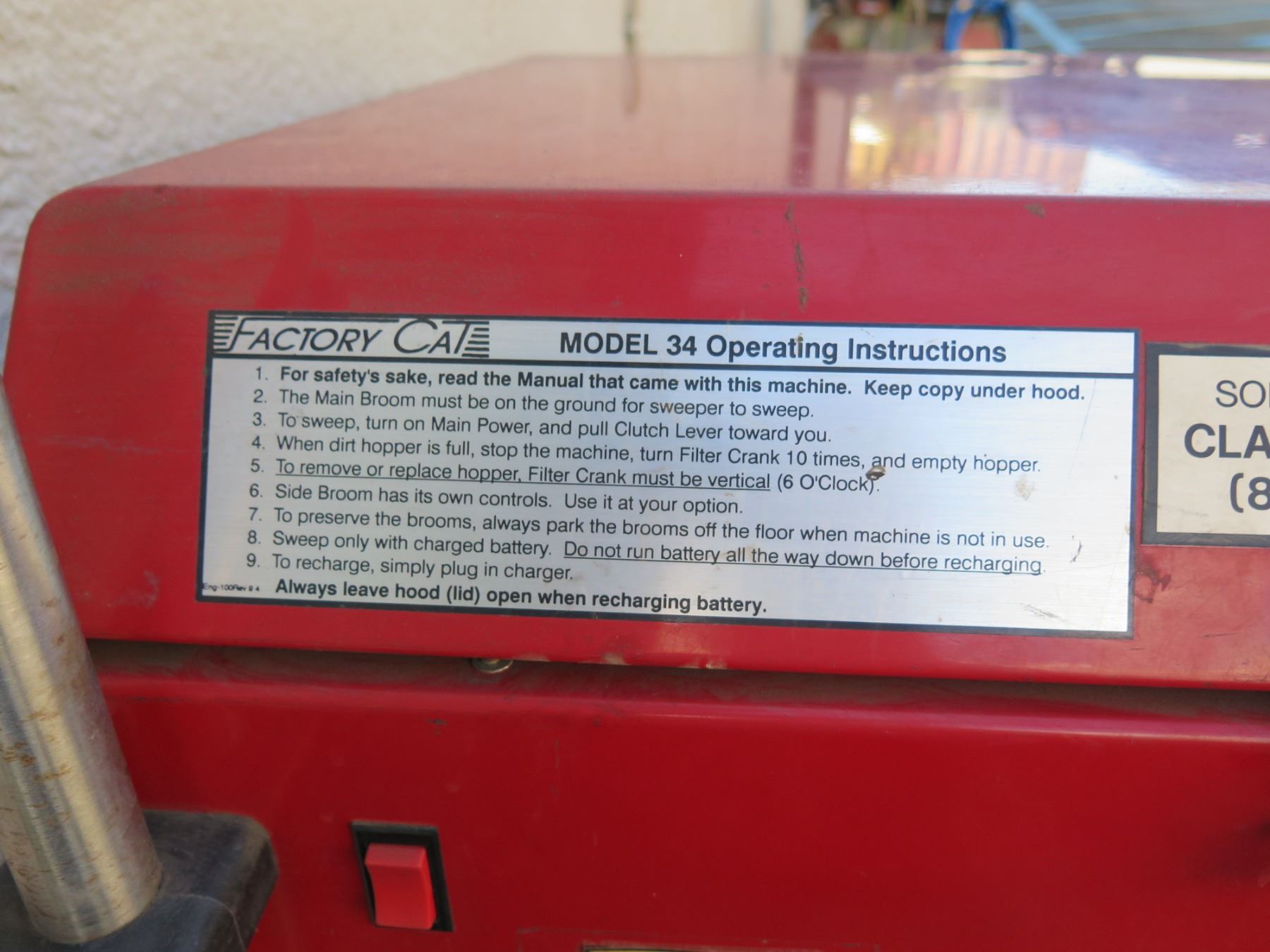 Factory Cat 34 Industrial Walk-Behind Sweeper 8382 hours (needs battery)