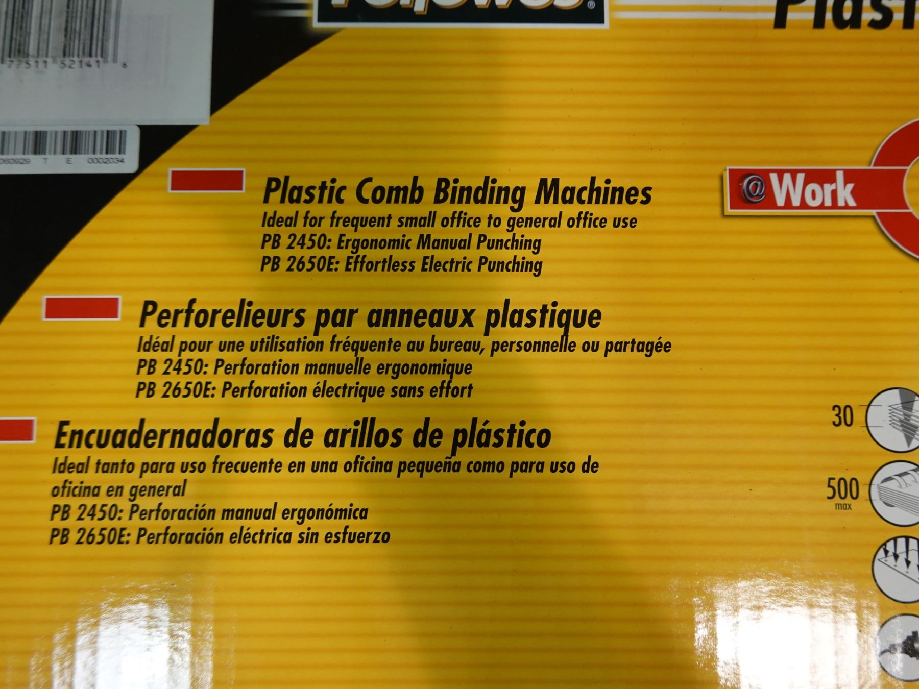 Fellowes PB2450 Plastic Comb Binding Machine New in Box