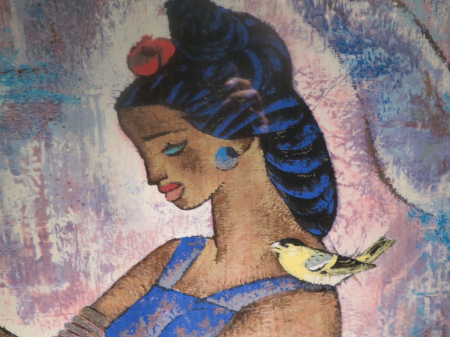 Female Artwork, Numbered 100/300, Signed by Artist, Wood Framed 39"x39" (water damage)