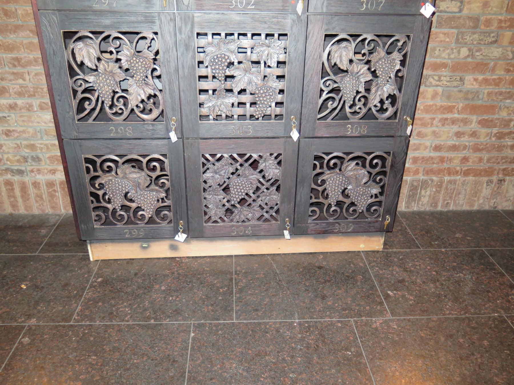 Fifteen-Compartment Wine Locker (Has 15 Individual Doors), 8Ft Tall, 56" Width, 18" Depth. Some keys are available