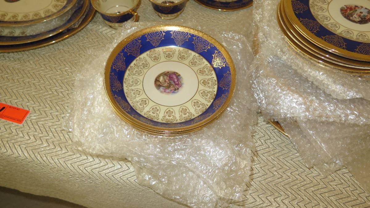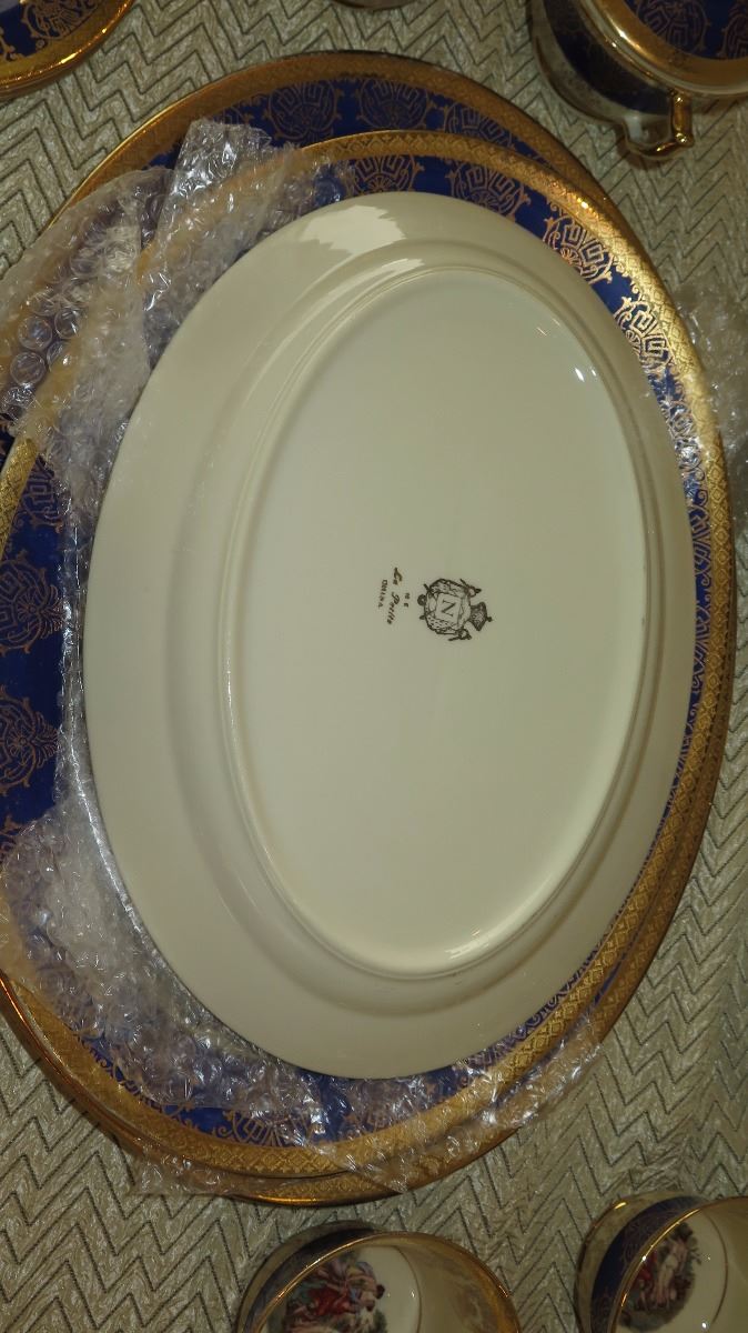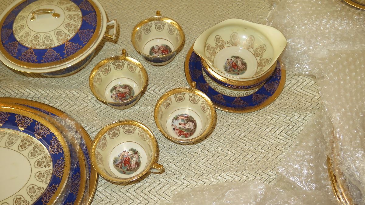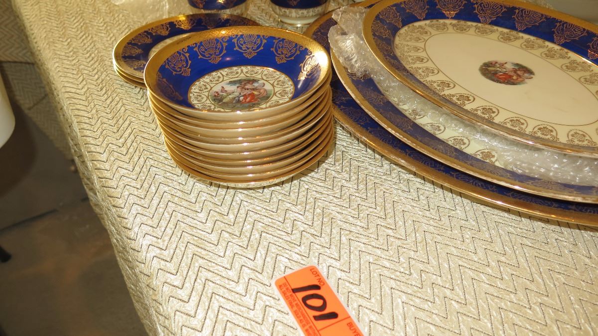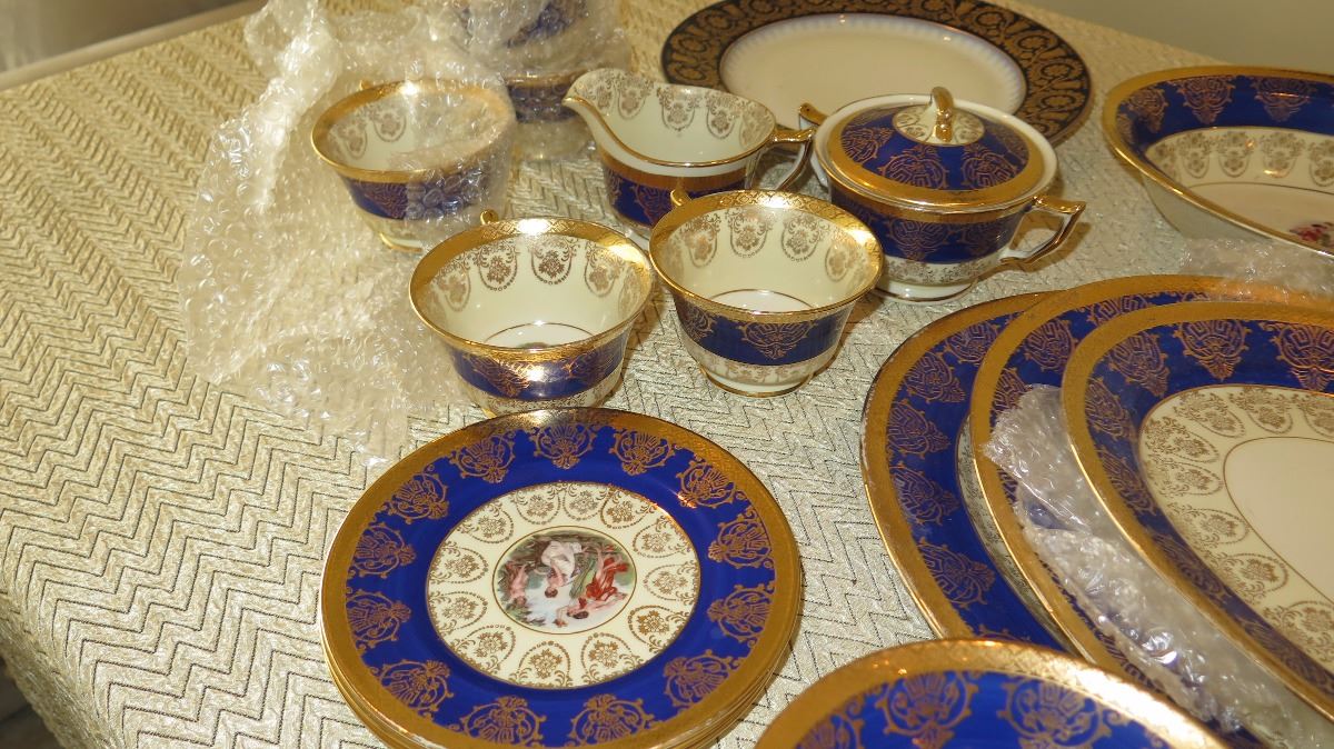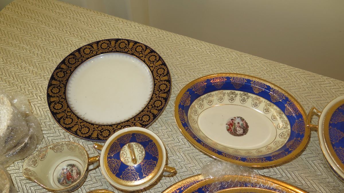 Fine China Set: Cobalt Blue w/Gilt Border - Plates, Bowls, Cups, Servers