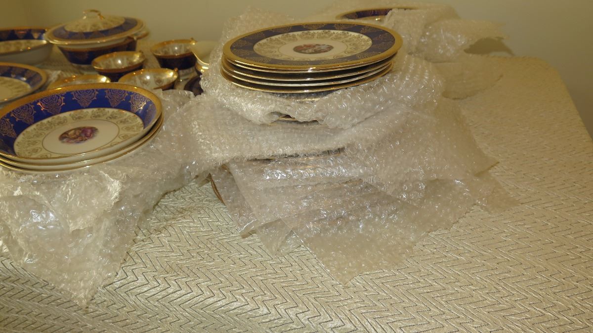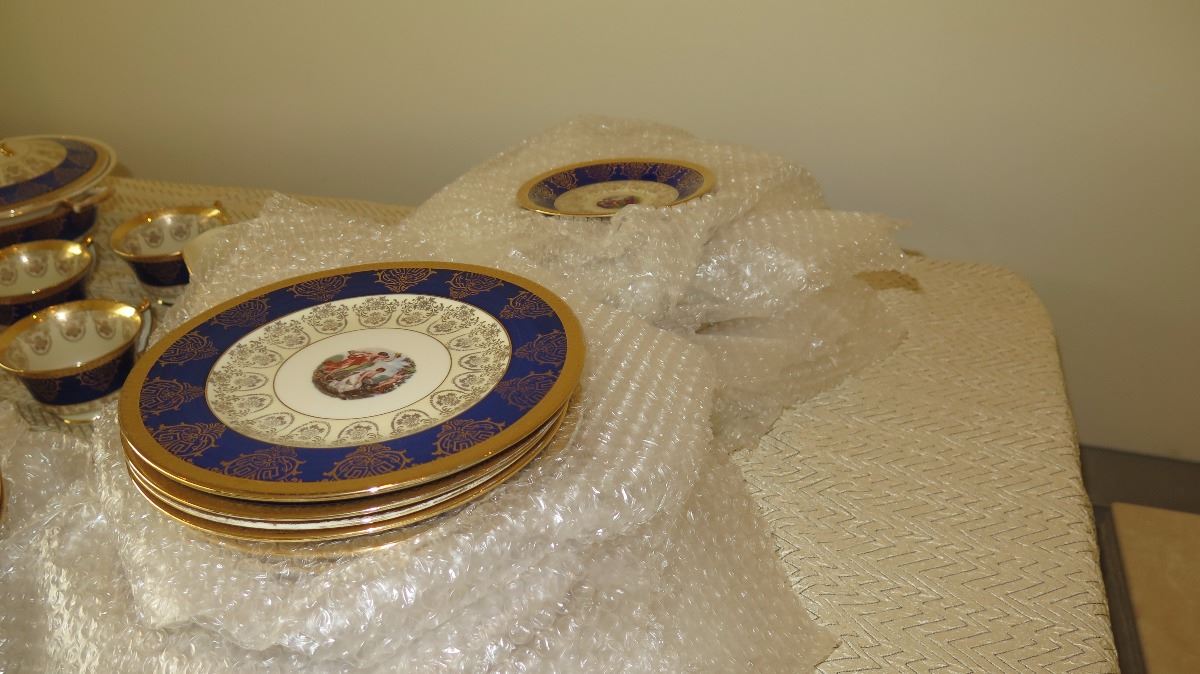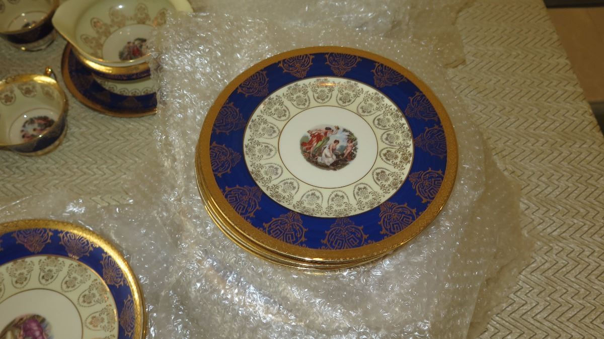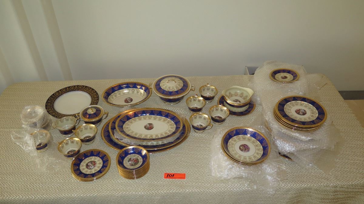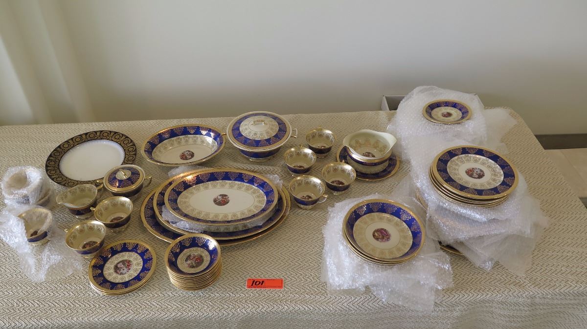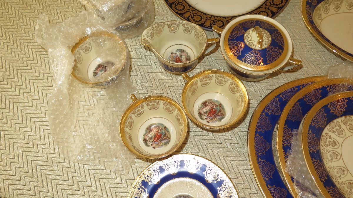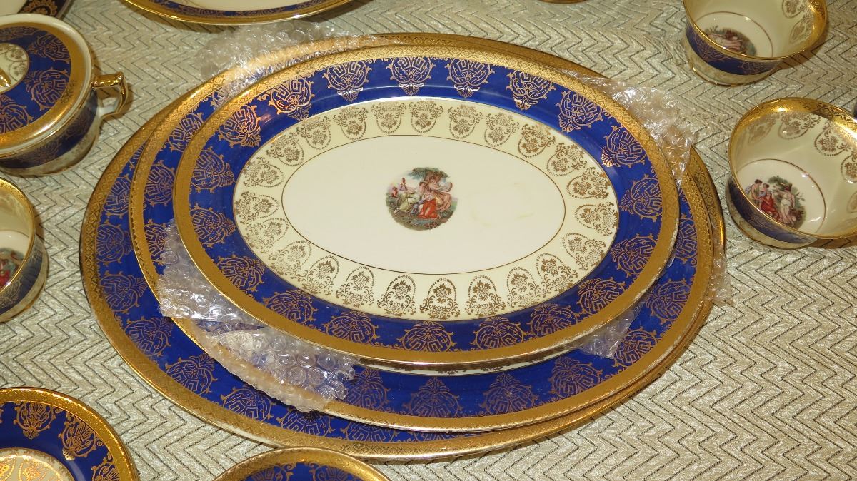 Fine China Set: Cobalt Blue w/Gilt Border - Plates, Bowls, Cups, Servers