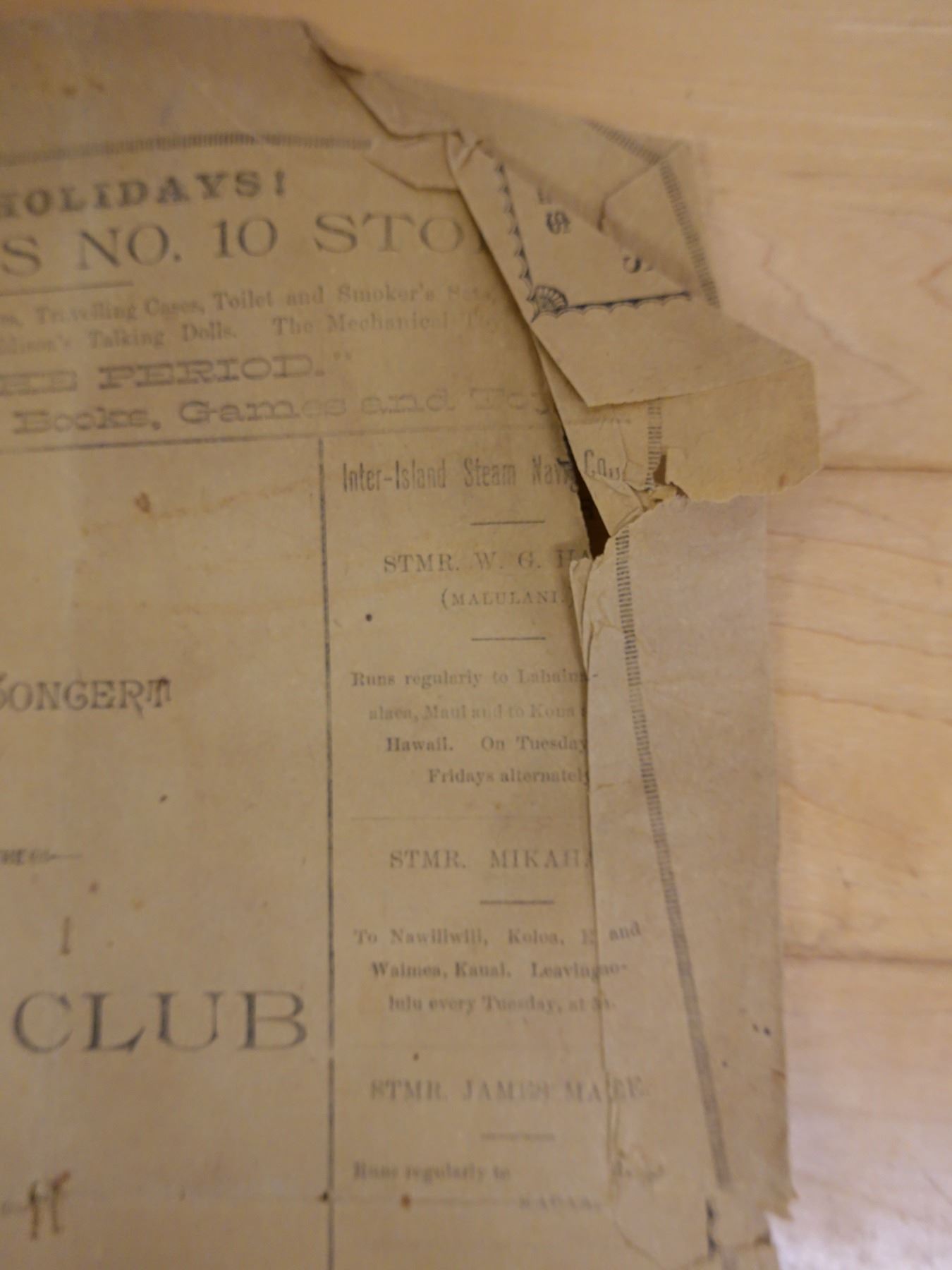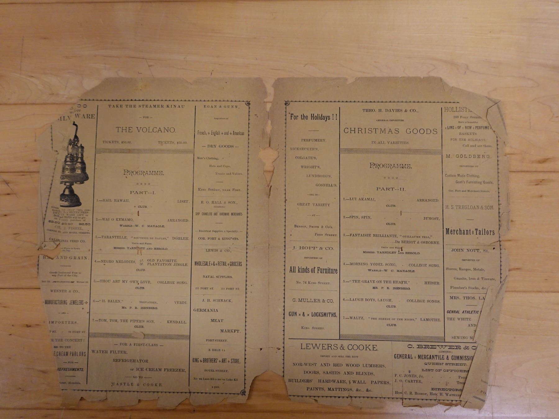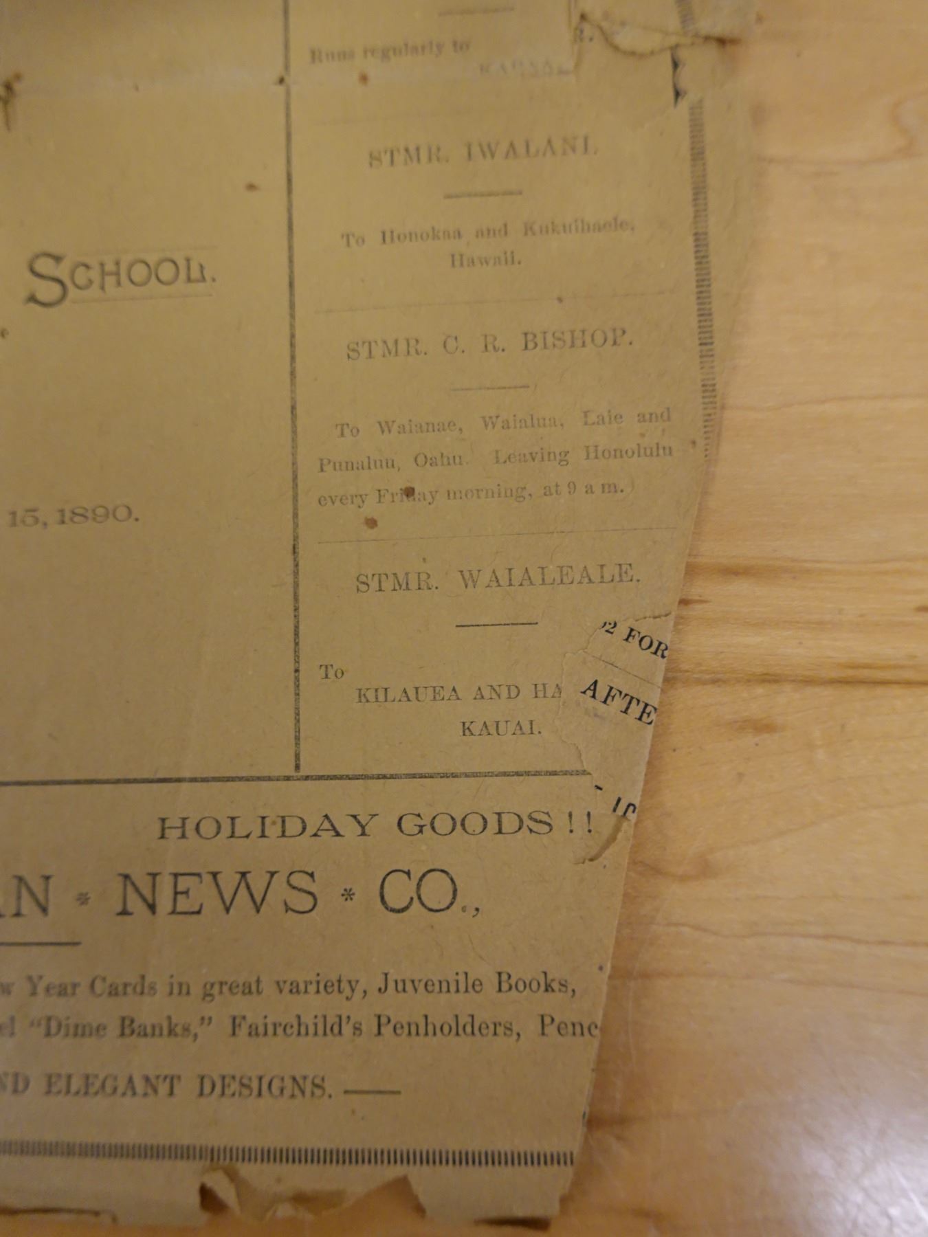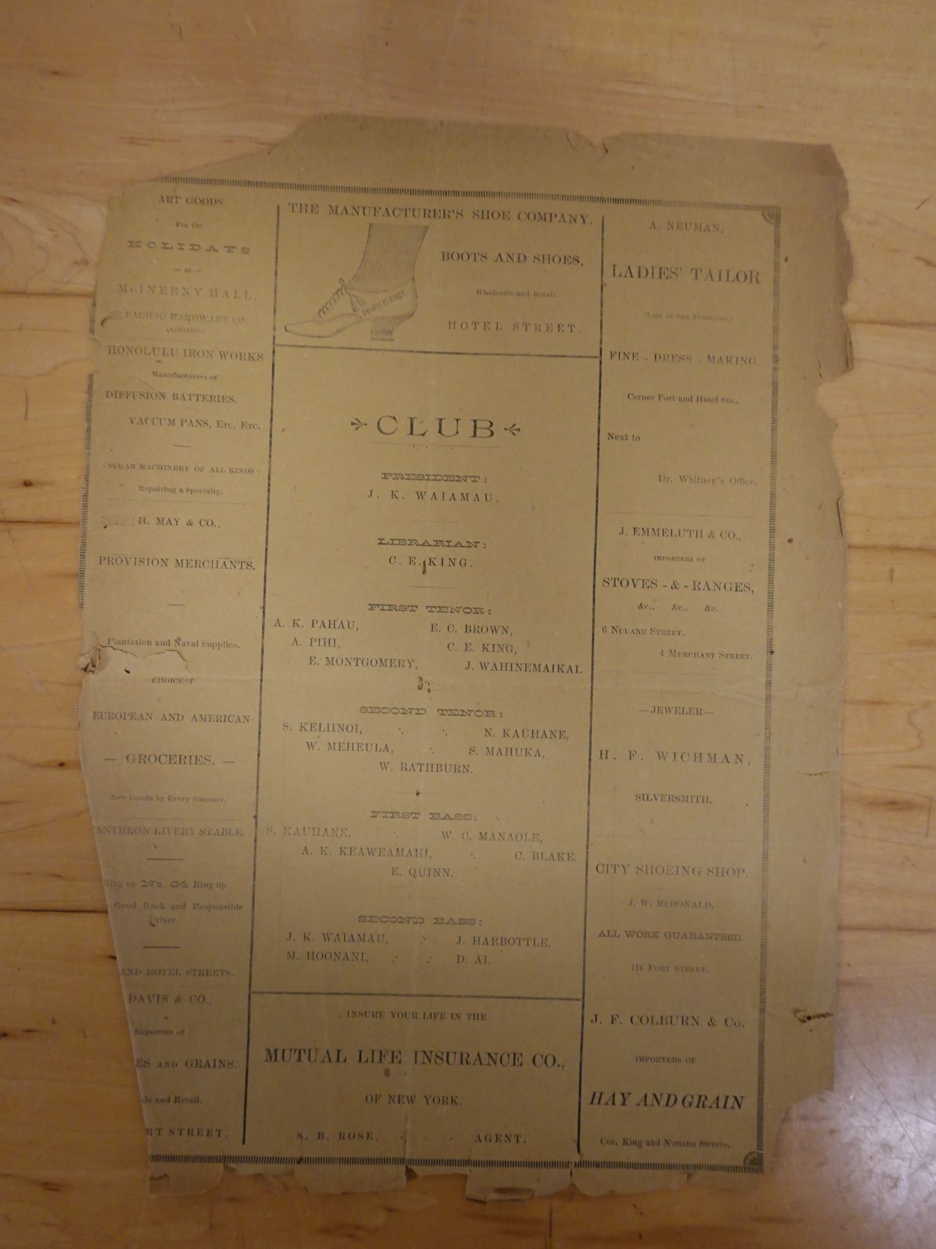First Concert by the Glee Club of Kamehameha Schools Newsletter 12/15/1890, 9" x 13"