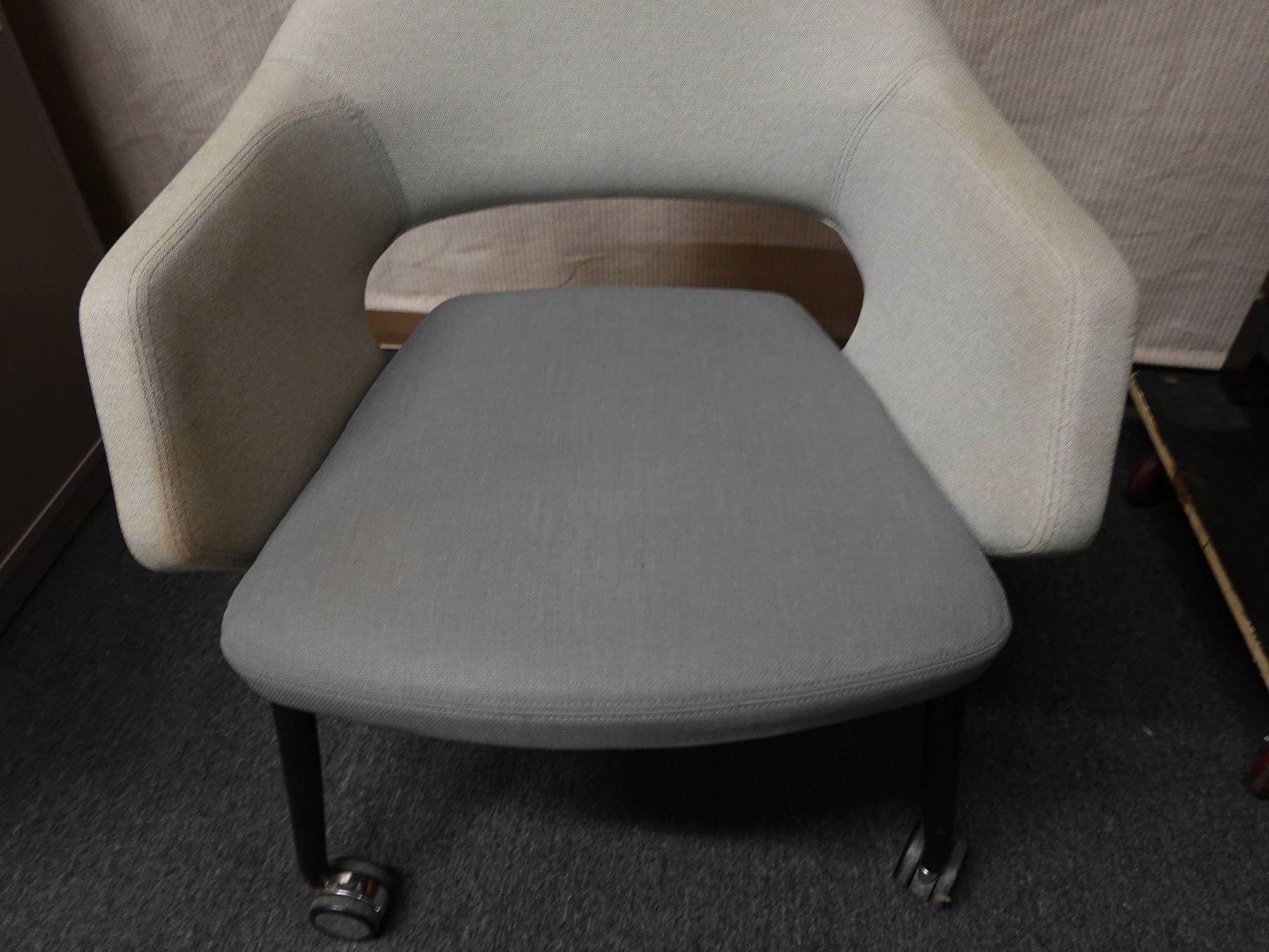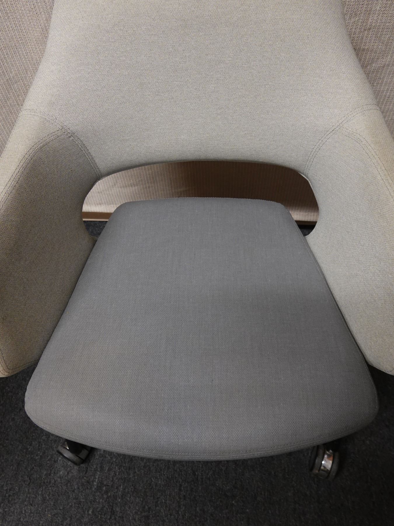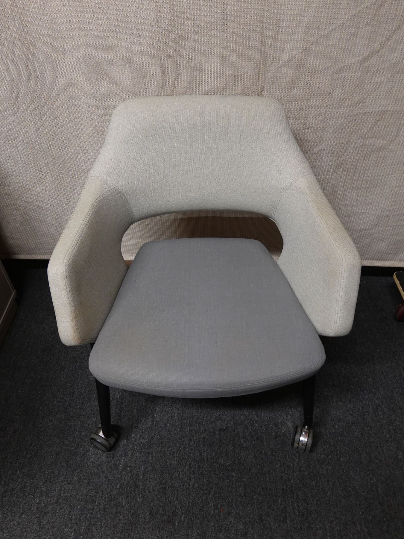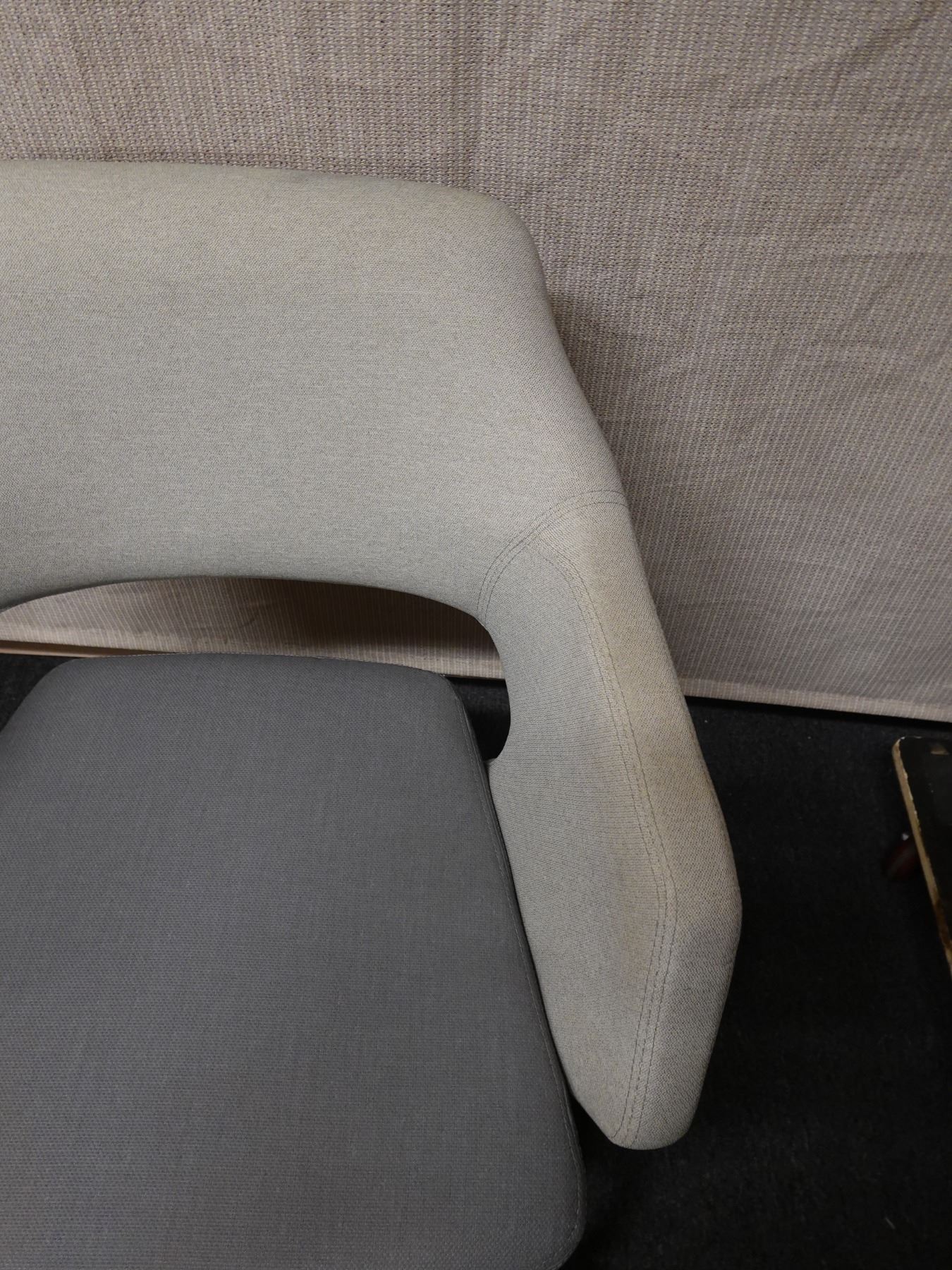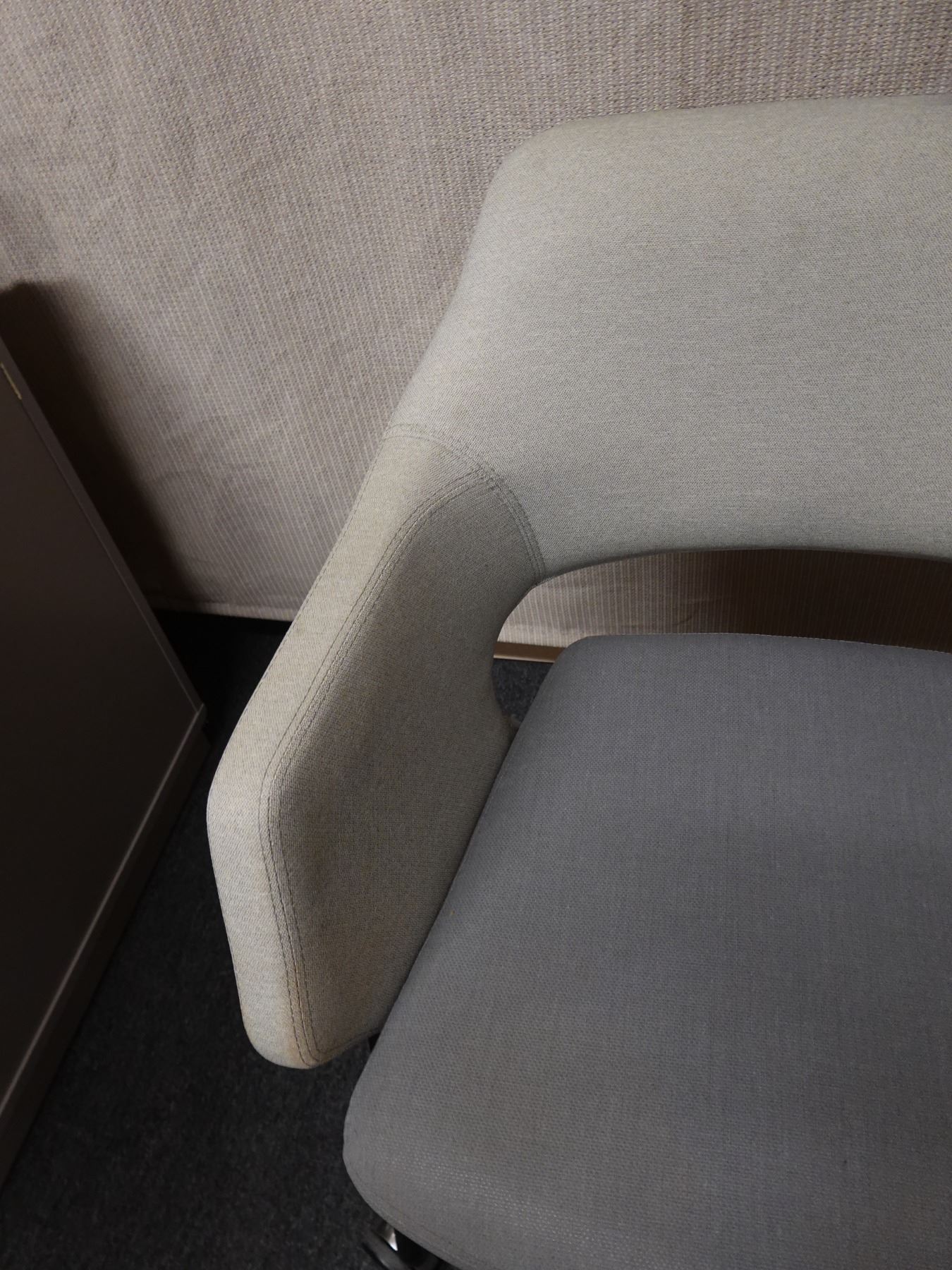 This is a stock photo that is representative of this item. Varying degrees of light surface wear. The armrest has some surface dirt that seems to come off easily with a damp cloth and mild soap.