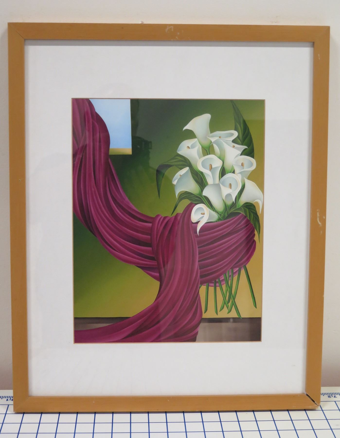 Floral Art Print, Framed 22" x 17" (frame damaged)
