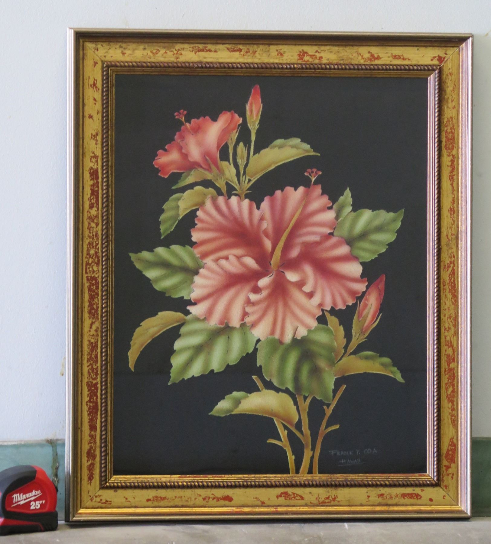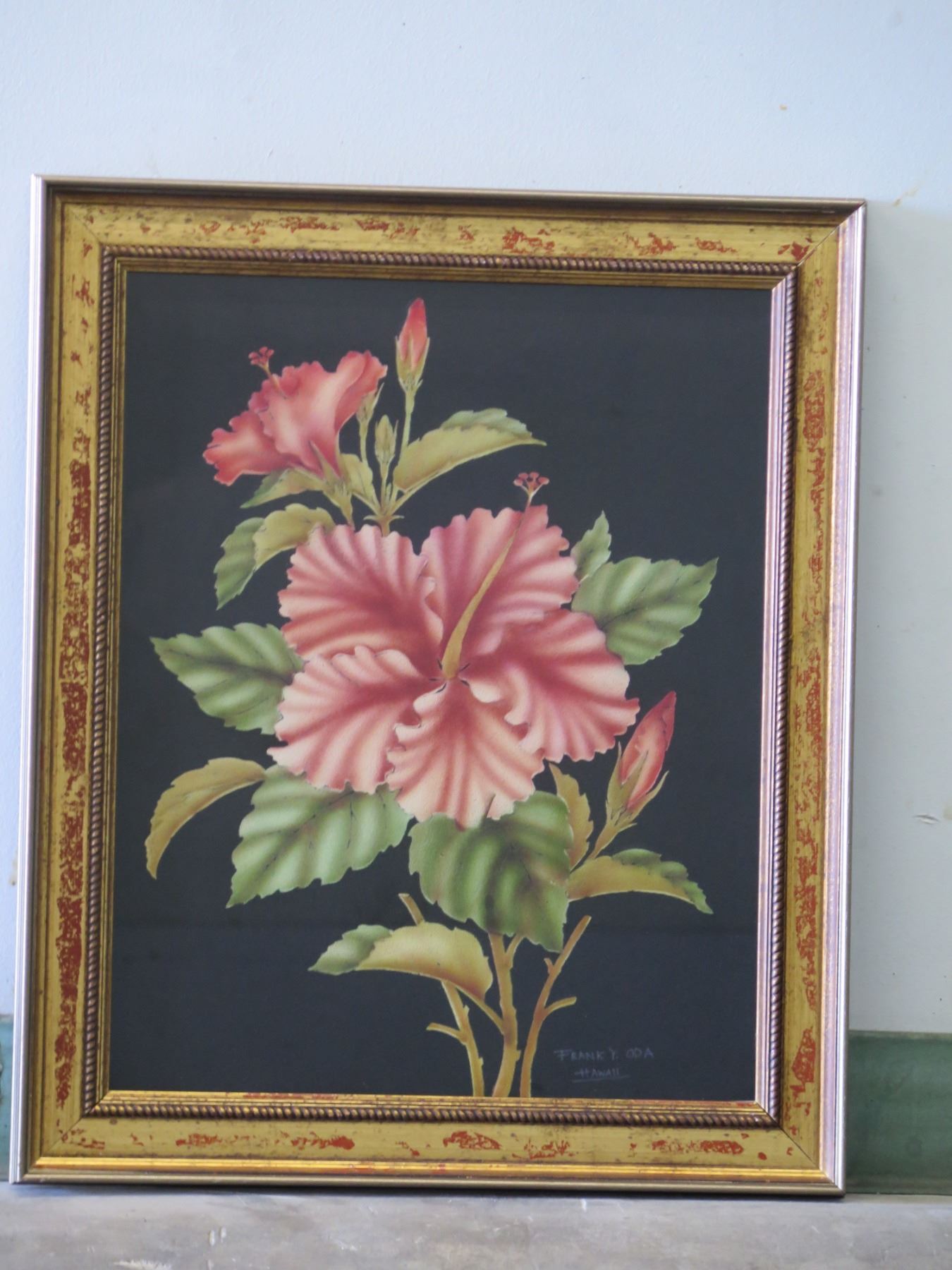 Floral Artwork Signed by Frank Y. Oda, Hawaii, Framed 20"x24"
