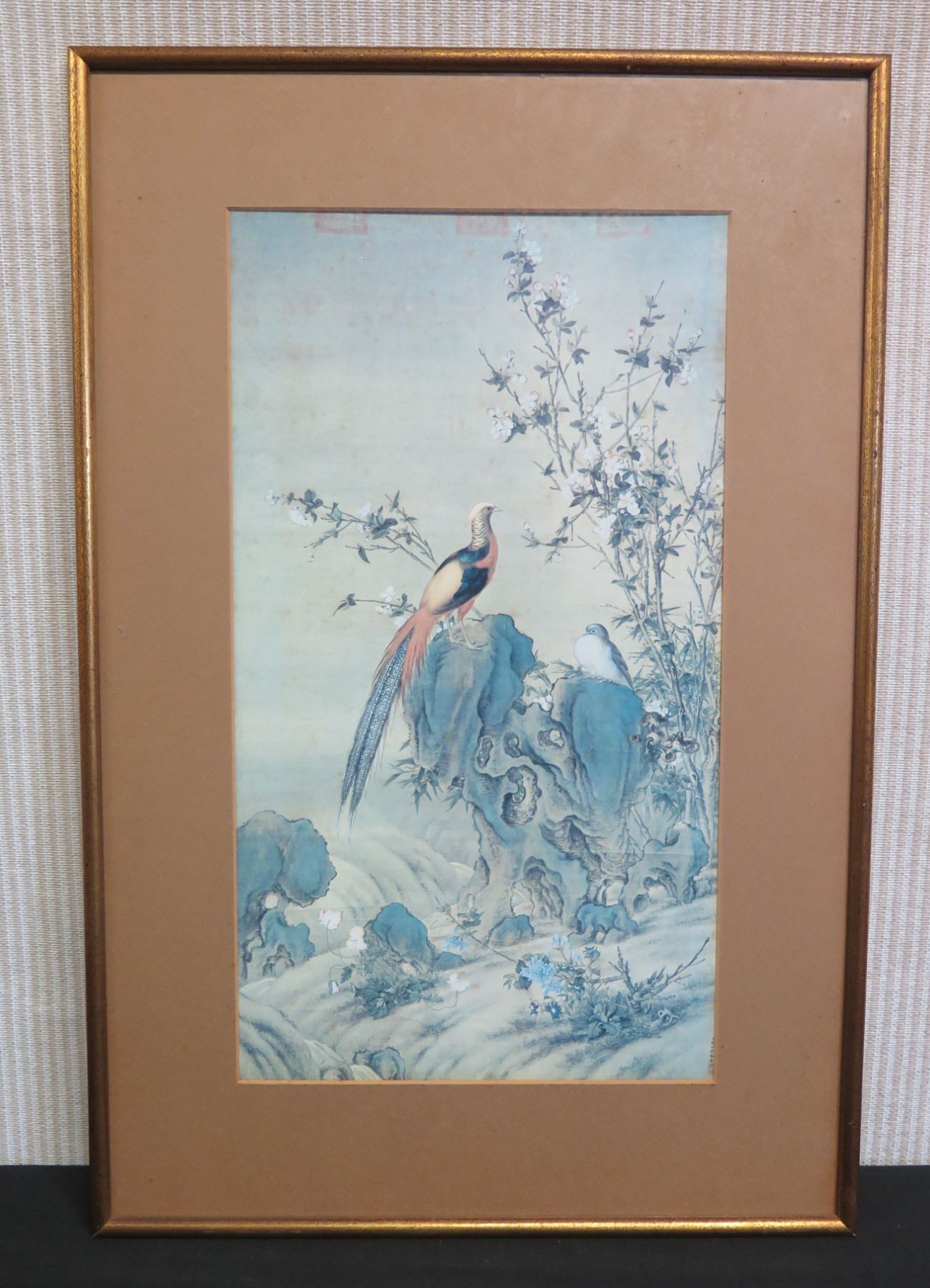 Flowers and Birds Hanging Scroll by Hsiao Yung, Framed & Matted 16" x 23"