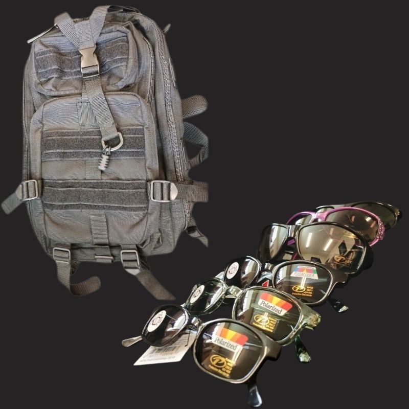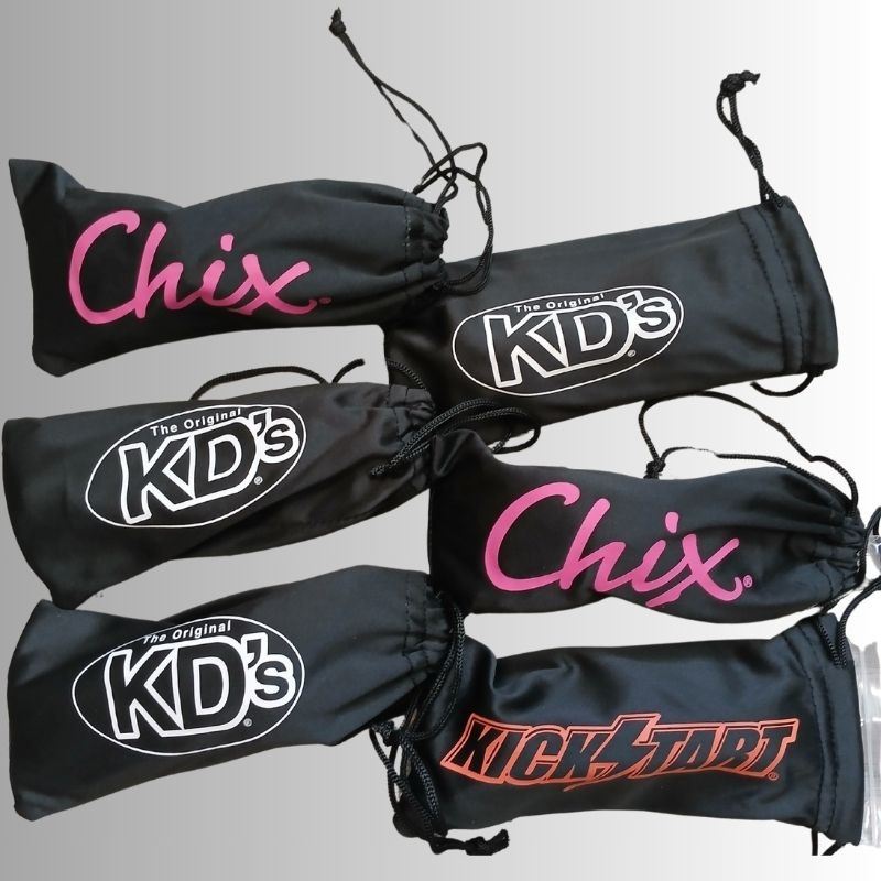 Chix Panther Black Frame with Polarized Smoke Lens, Chix Forever Purple Frame with Grey Gradient Lens and Rhinestones, Dirty Harry Black Frame with Grey and Green Lens, KD Black Frame with Grey Polarized Lens, X-KD Black Frame with Grey Polarized Lens, X-KD Clear Green Frame with Green Polarized Lens.