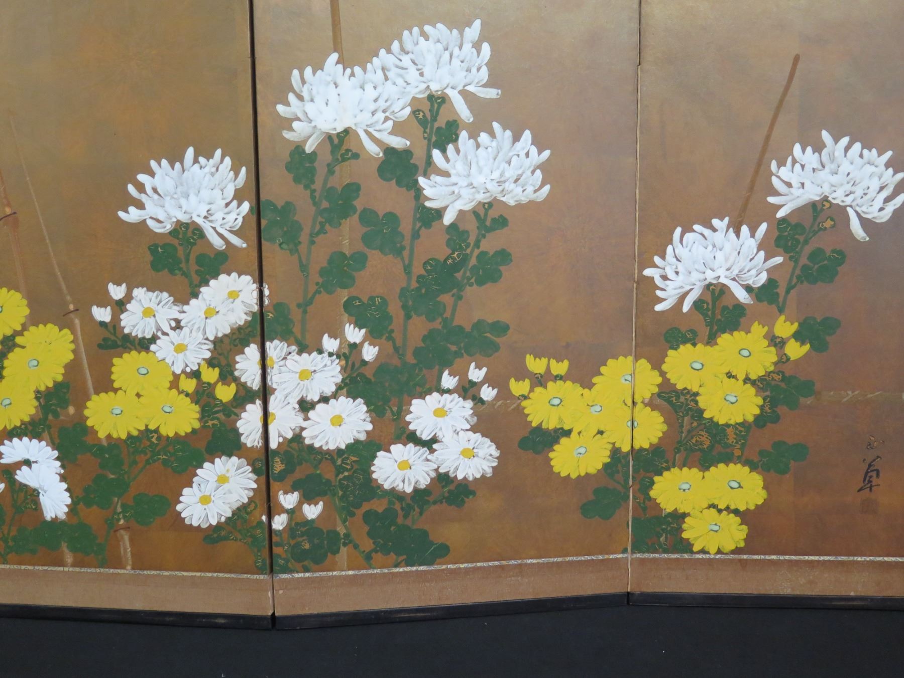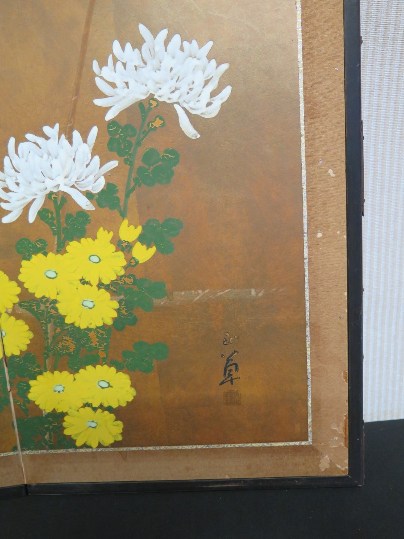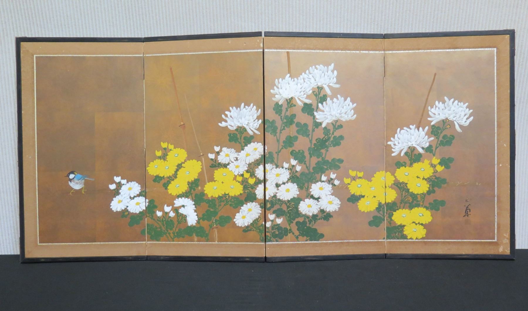 Folding 4-Panel Floral Artwork w/ Maker's Mark 46" x 21"