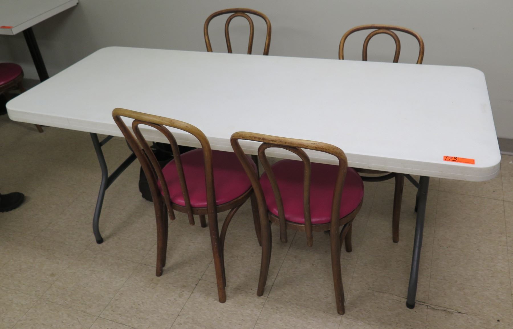 Folding Table 72"x30"x29"H w/ 4 Wooden Chairs