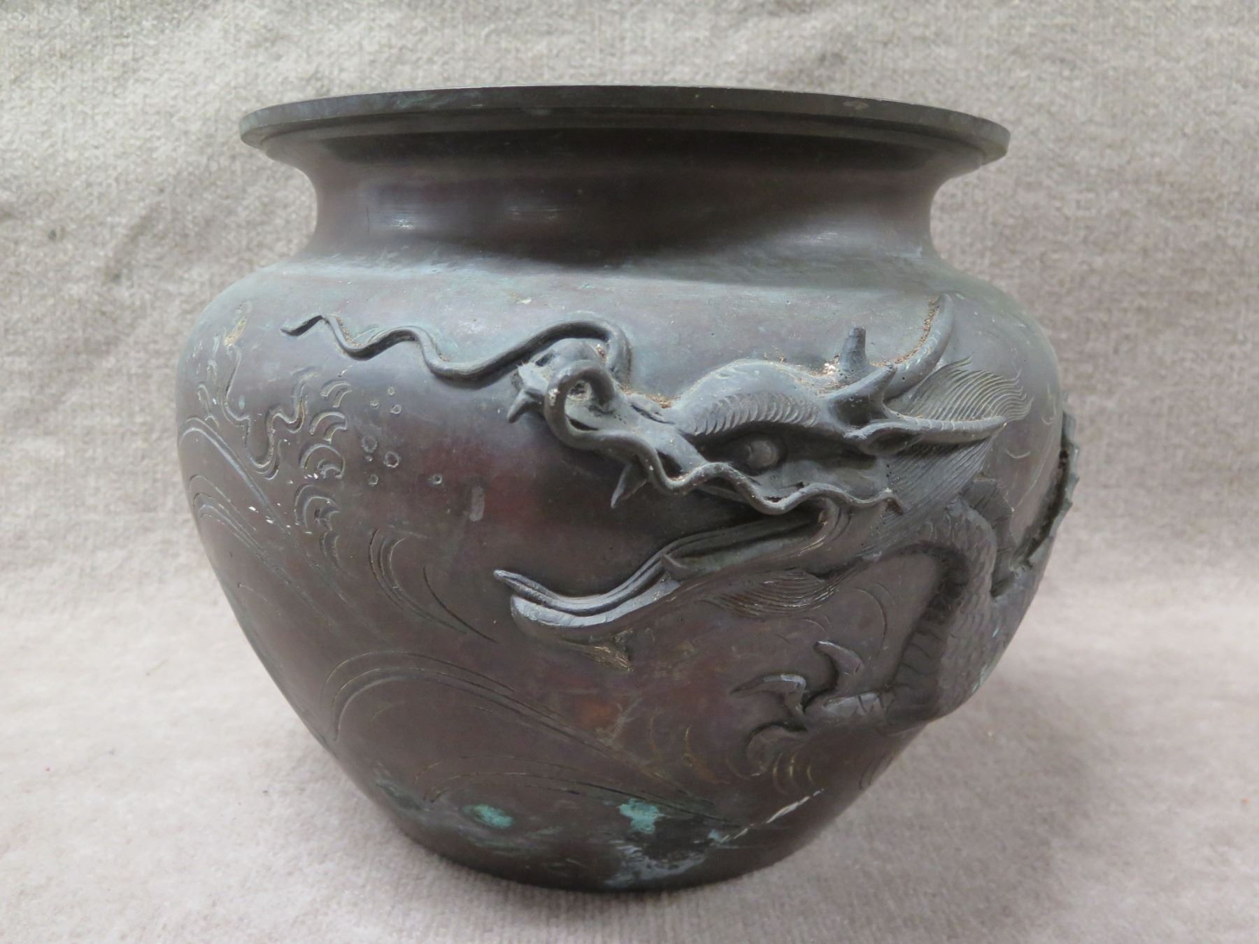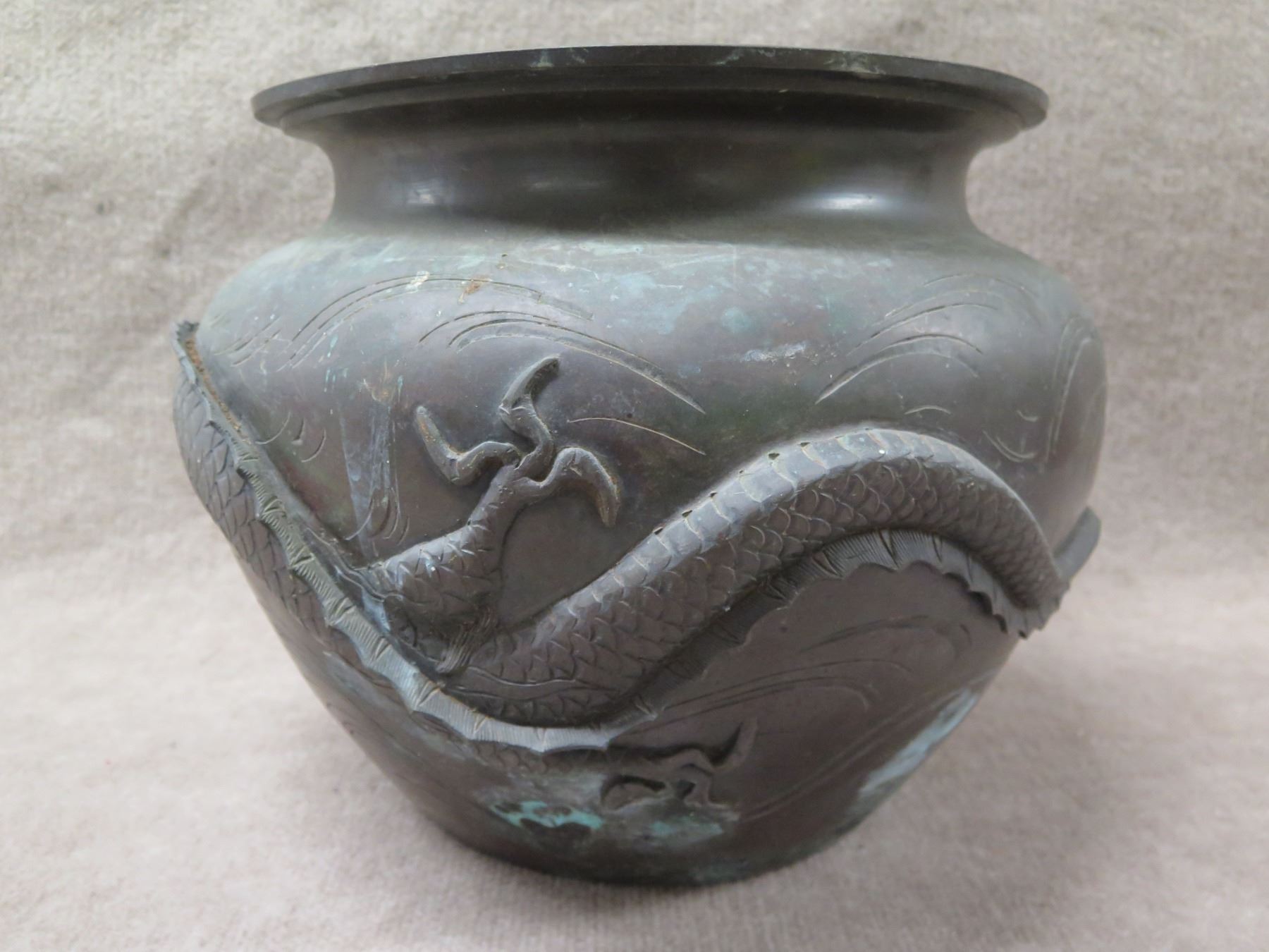 Footed Blue Raised Design Planter Pot w/ Maker's Mark 13" dia, 12"H