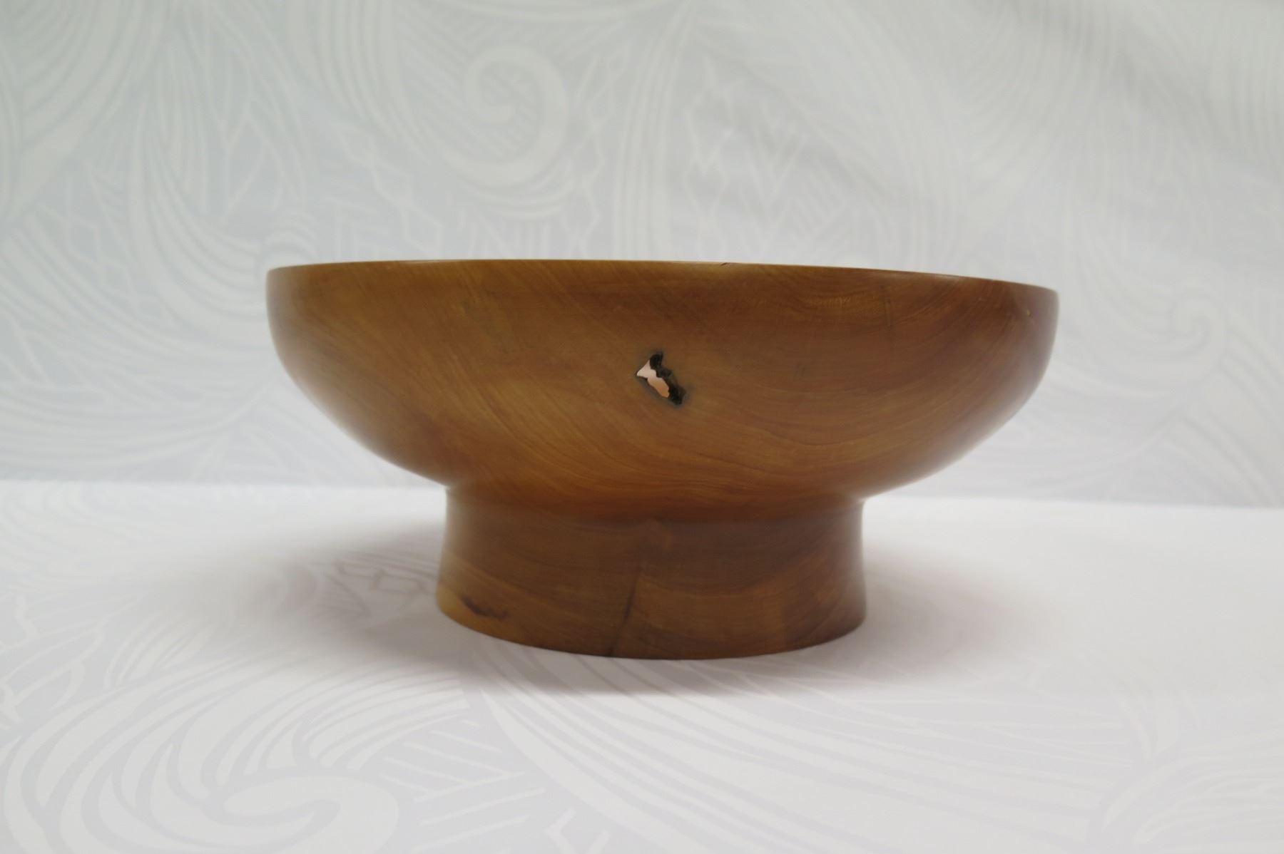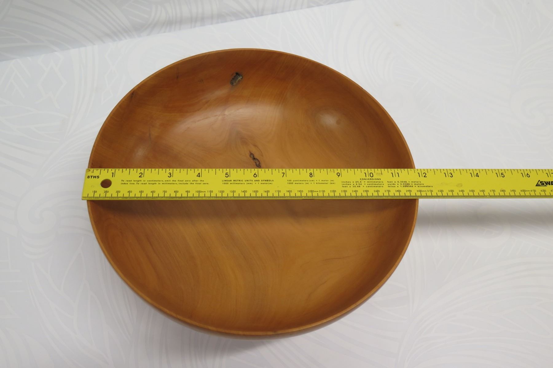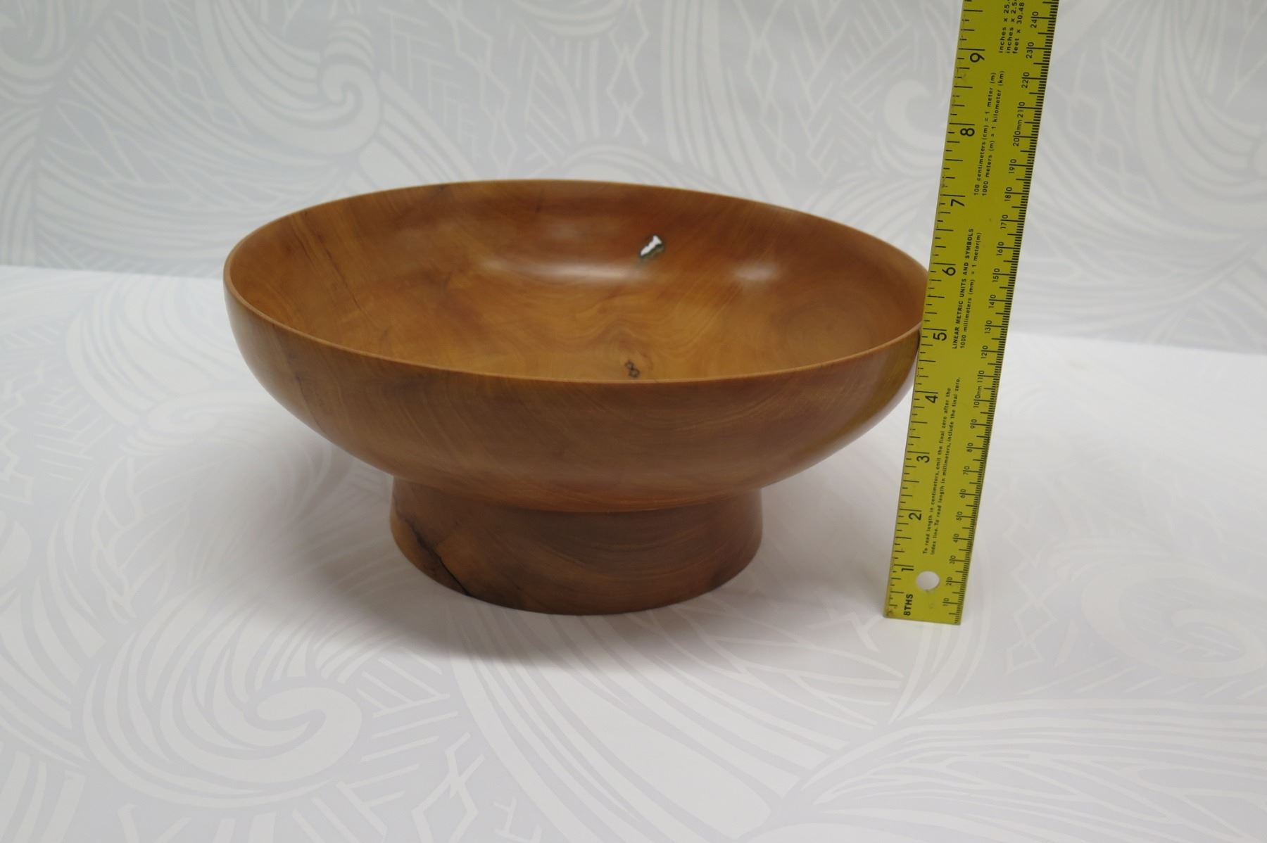 Footed Italian Cypress Wood Bowl, Artist-Signed, Approx. 12" Dia (top), 5" Tall