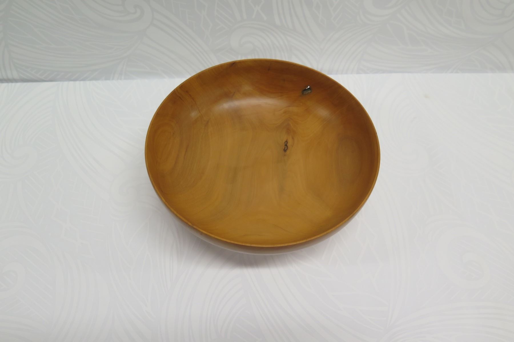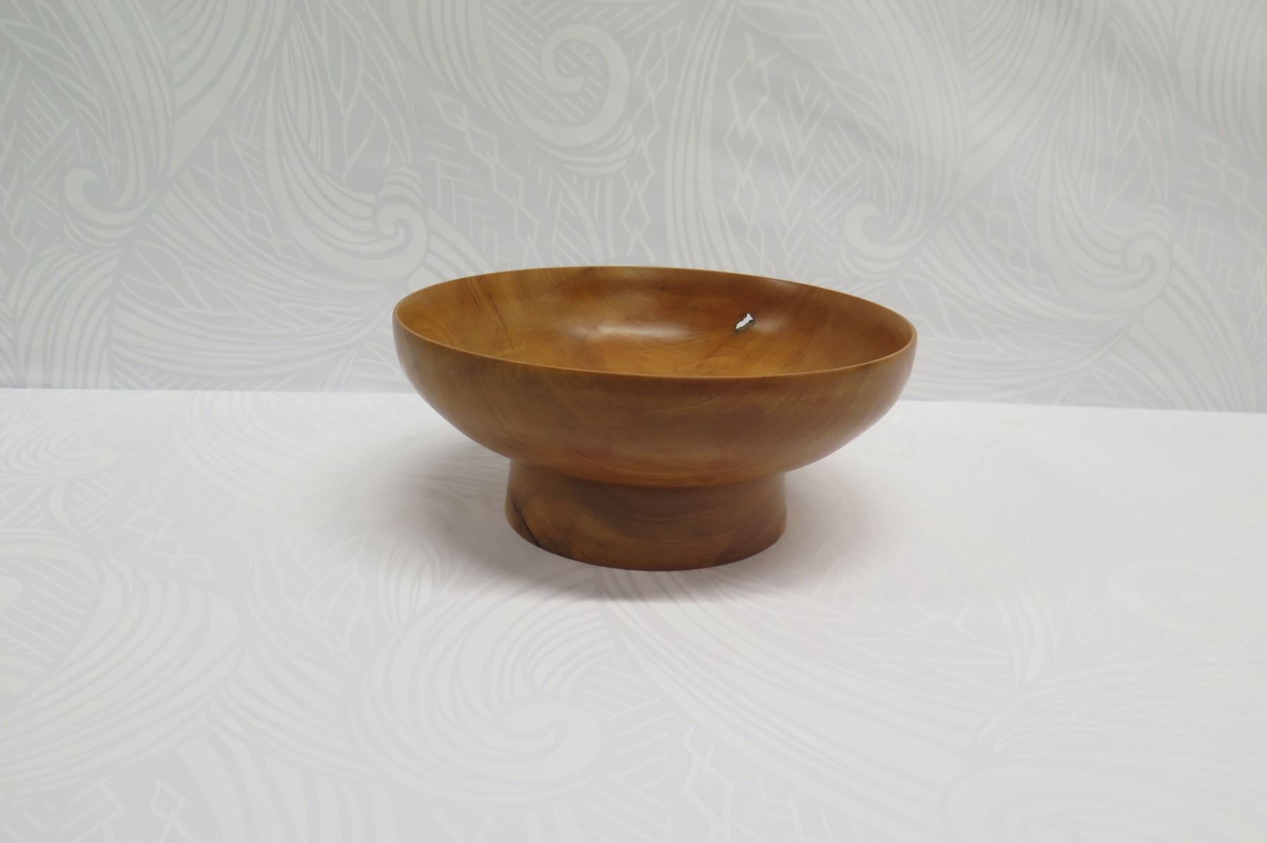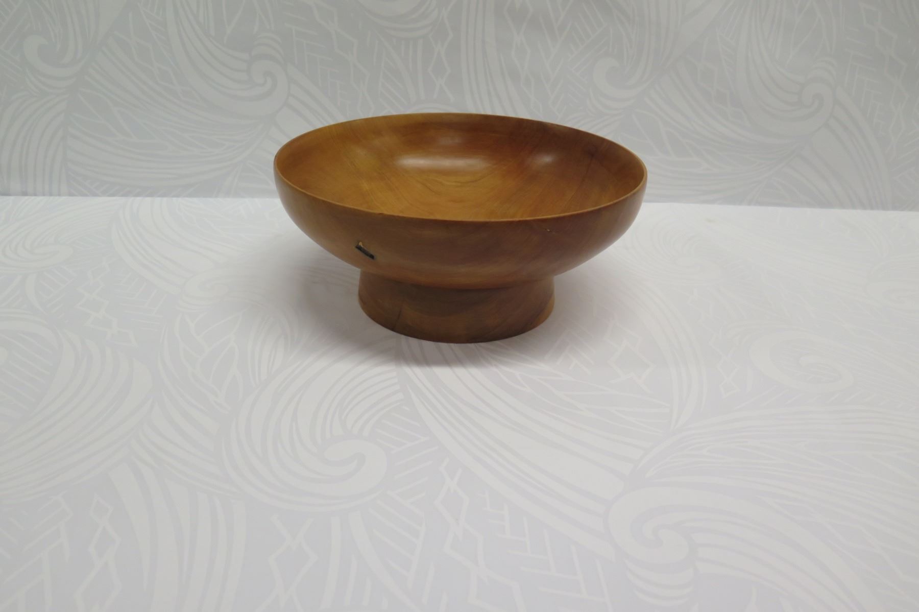 Footed Italian Cypress Wood Bowl, Artist-Signed, Approx. 12" Dia (top), 5" Tall