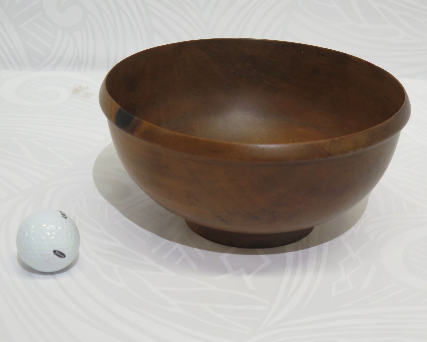 For reference there are ample photos of each object in the online auction catalog. In the photos, we show a golf ball next to each bowl or object for scale and sizing perspective. We also provide dimensions of each item.